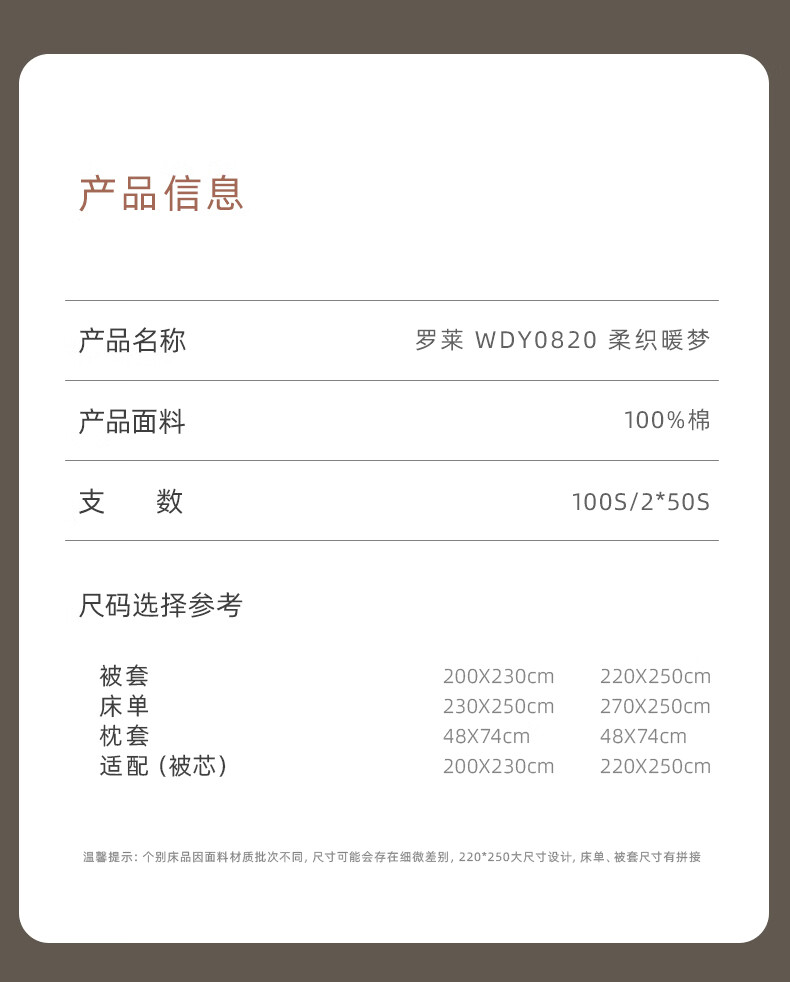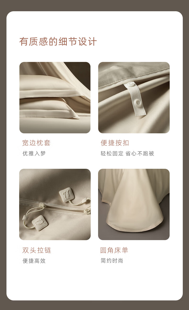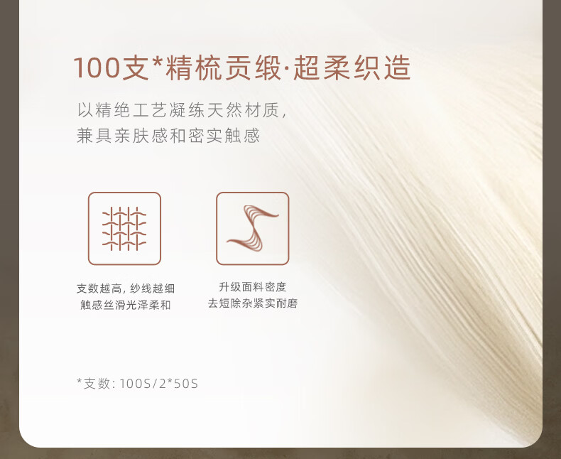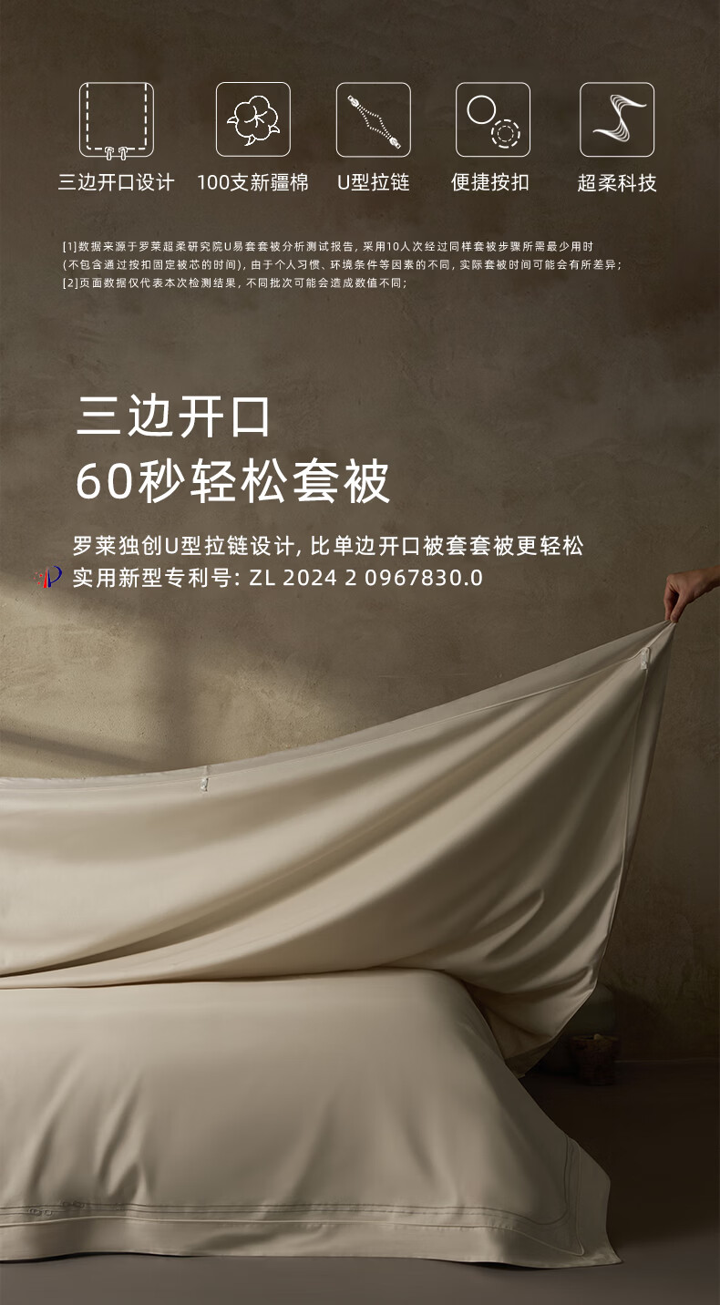 罗莱家纺100支新疆棉全棉四件套超柔贡缎U易套设计 柔织暖梦-金色 1.5米床 床单款 (被套200*230cm)