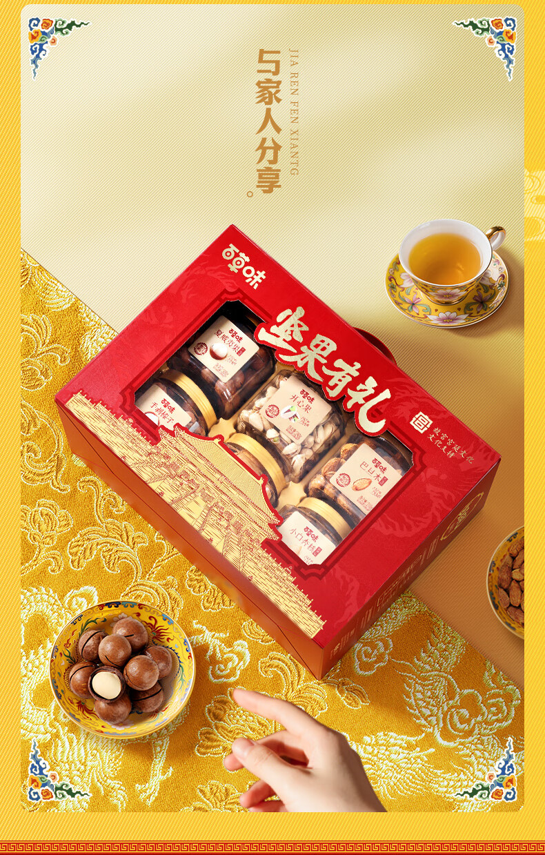 百草味坚果零食礼盒1730g 罐装坚果春节年货节开心果松子干果零食礼包
