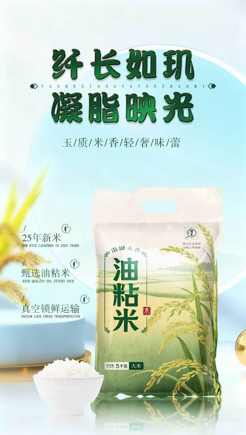 探禾油粘米 2025新品 新米上市 岭南原产 香软油润 冷饭不回生 长粒米 探禾·暹贡油粘米 5KG/十斤装