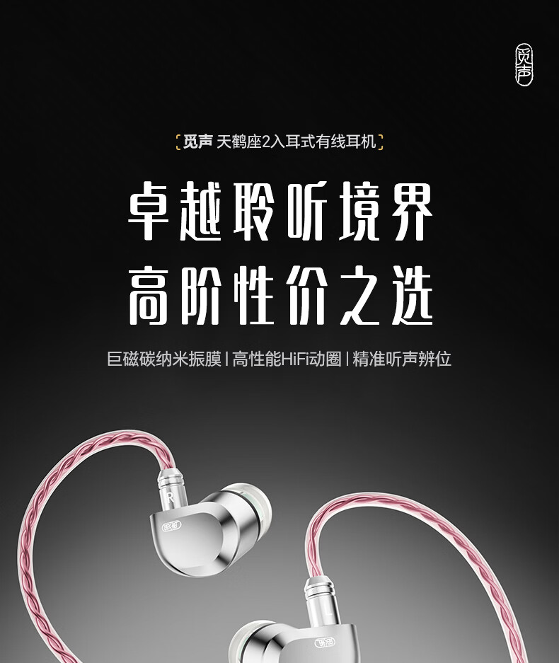觅声天鹤座2入耳式HiFi有线音乐耳机高音质专业听声辨位fps电脑游戏电竞专用三角洲吃鸡耳麦可换线 3.5mm带麦-入会赠迷你声卡
