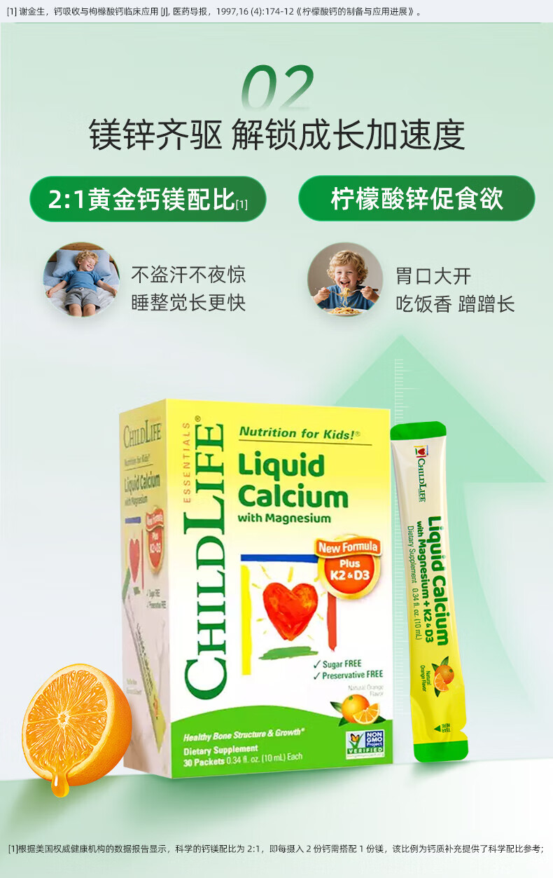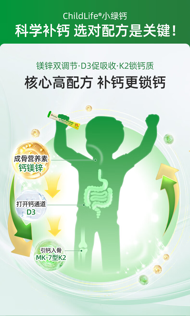 童年时光Childlife钙镁锌含K2维生素d3小绿钙液体钙婴幼儿童钙补钙6个月+ 【有效期26年6月】K2钙镁锌 300ml*1盒