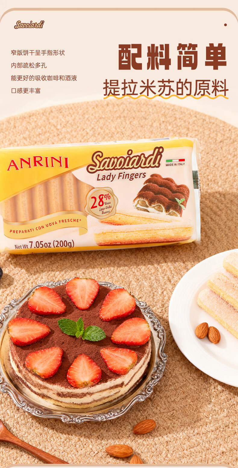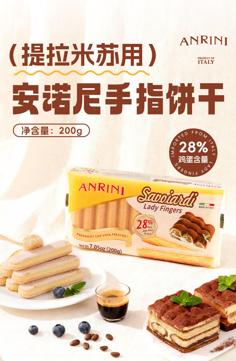 安诺尼手指饼干200g升级28%鸡蛋含量 原装进口 提拉米苏蛋糕烘焙原料