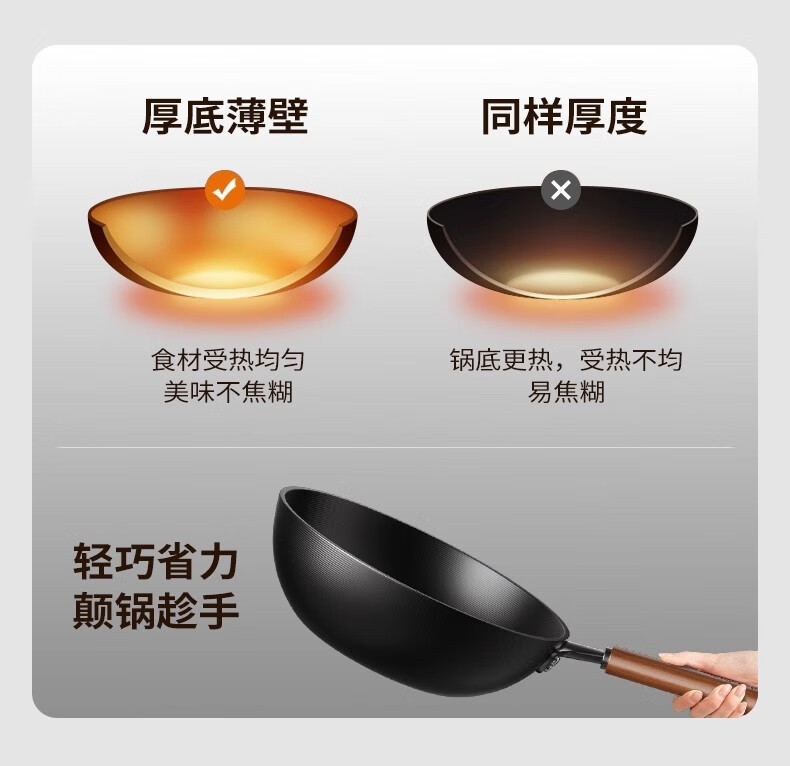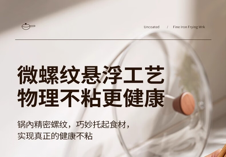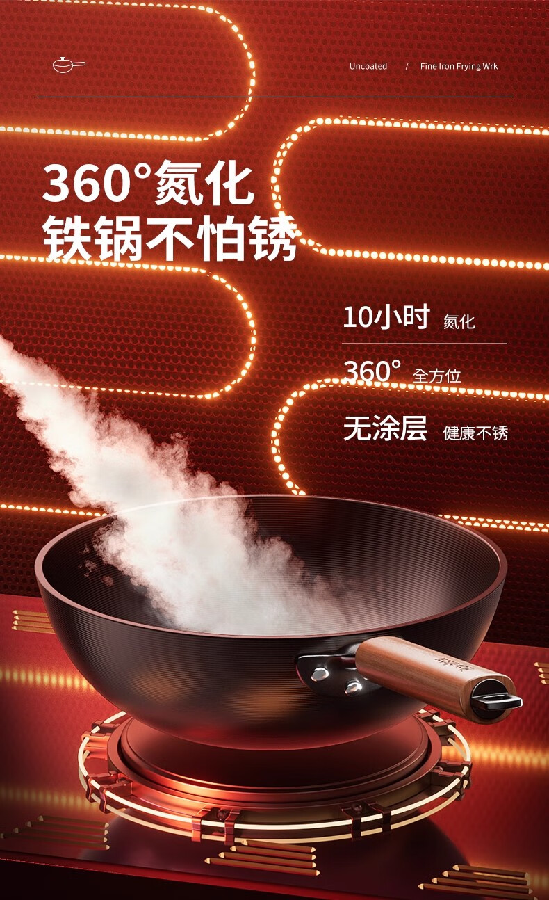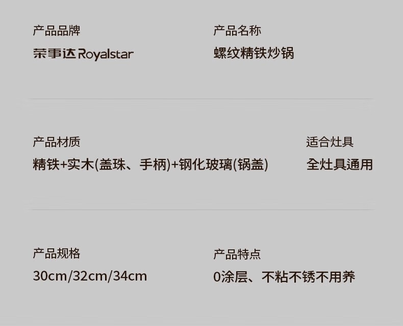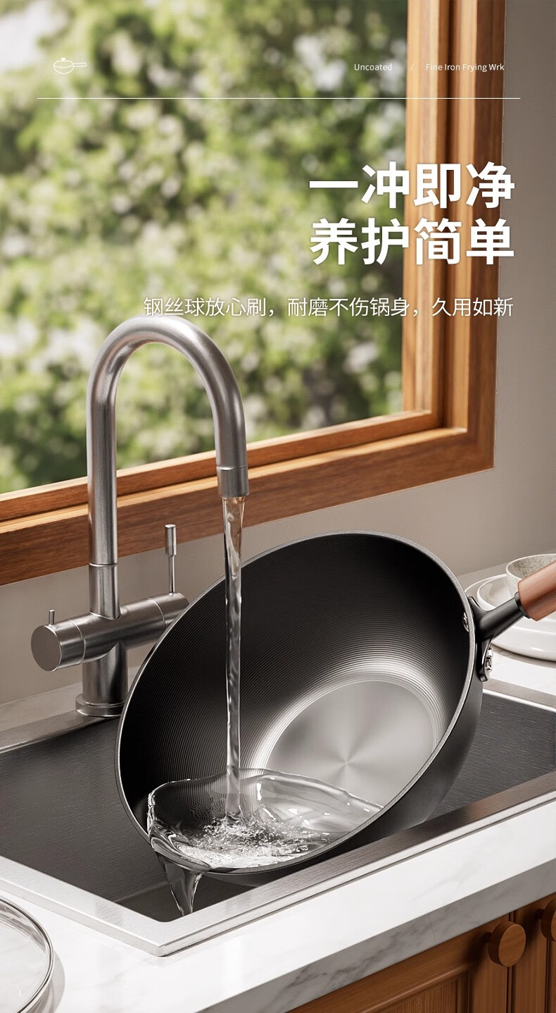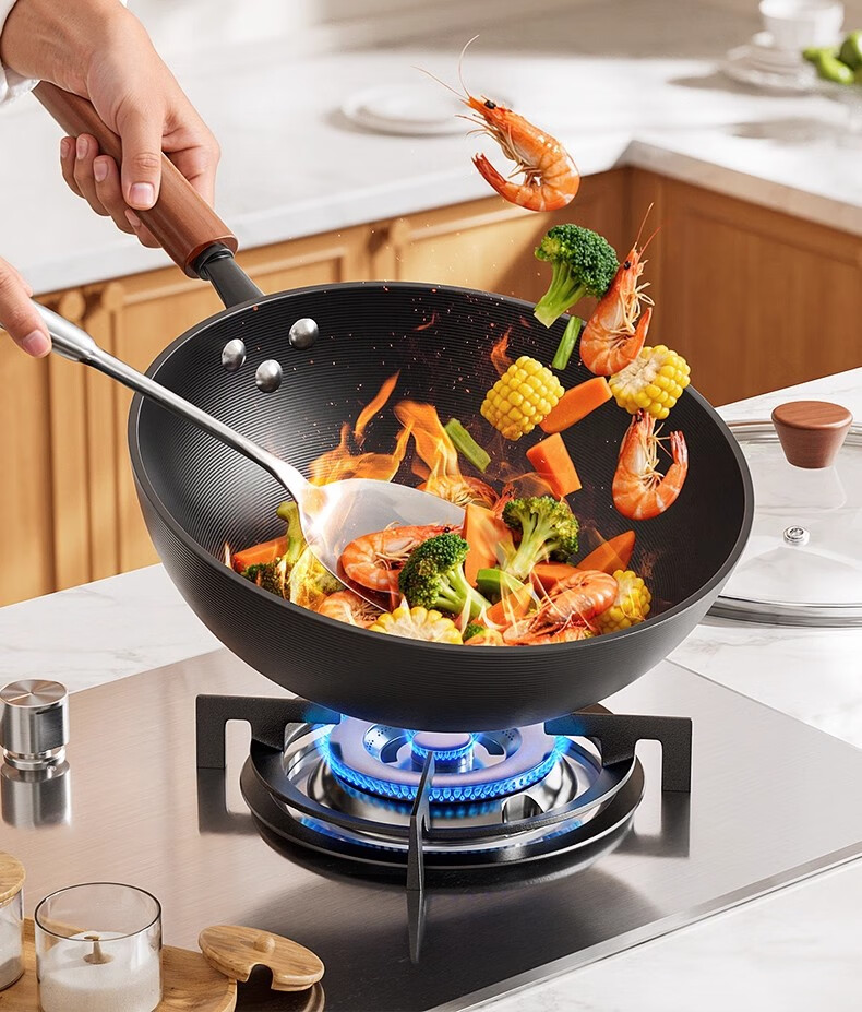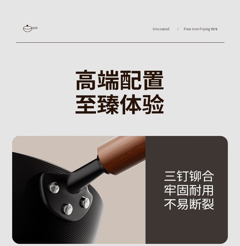 荣事达999精铁锅炒锅家用不锈无涂层免开锅电磁炉燃气通用炒菜锅 平底款丨带盖】不粘不锈免开锅 粘锅包退 34cm
