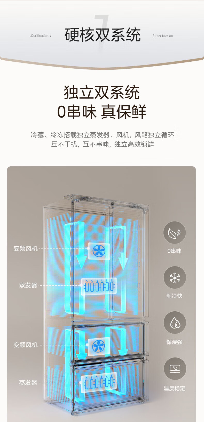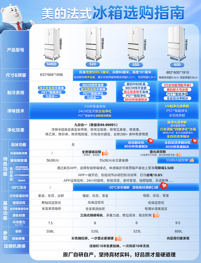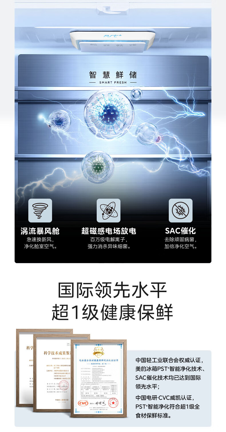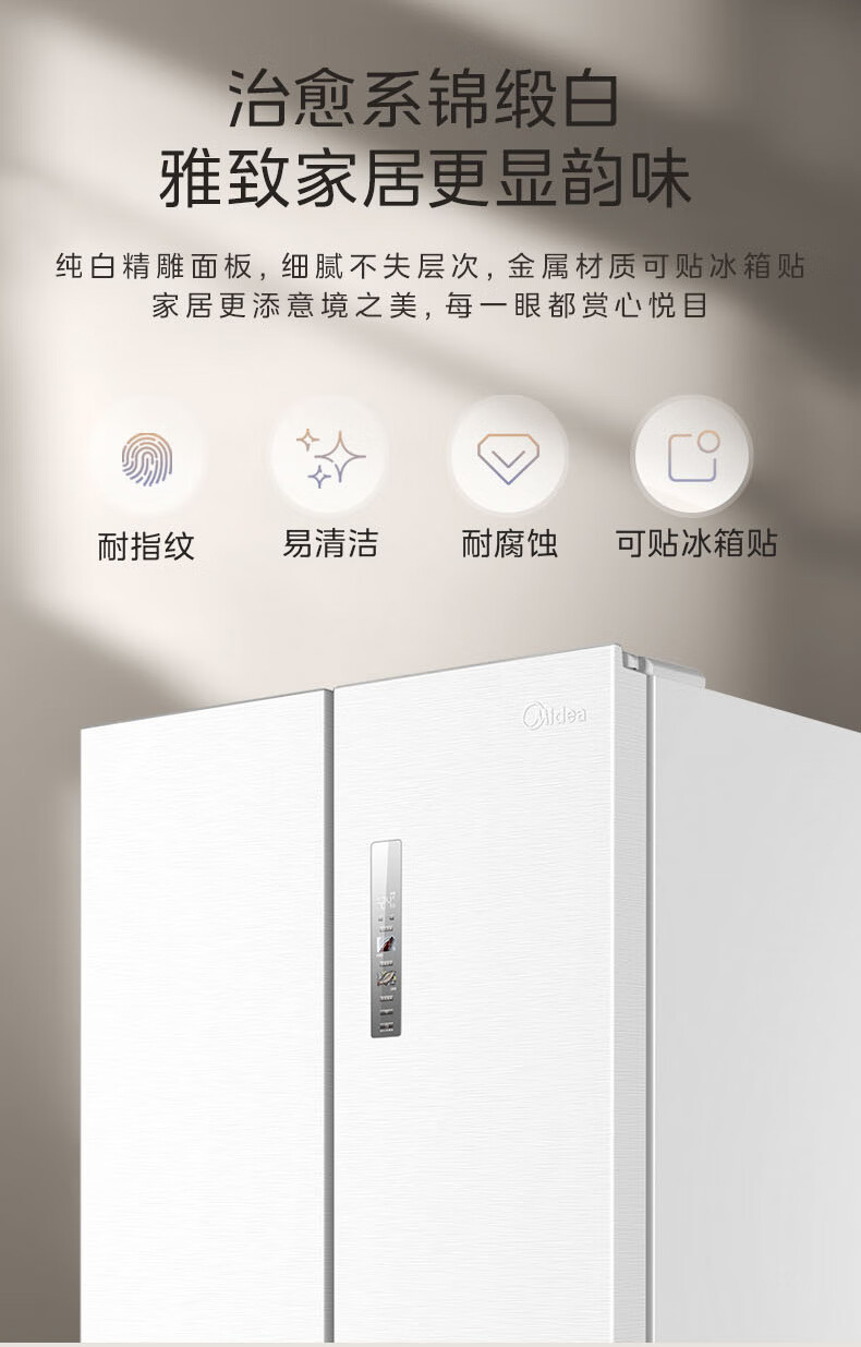 美的(Midea)508L法式四开门冰箱双系统循环一级能效除菌净味风冷大容量以旧换新白色BCD-508WTPZM(E) 国家补贴