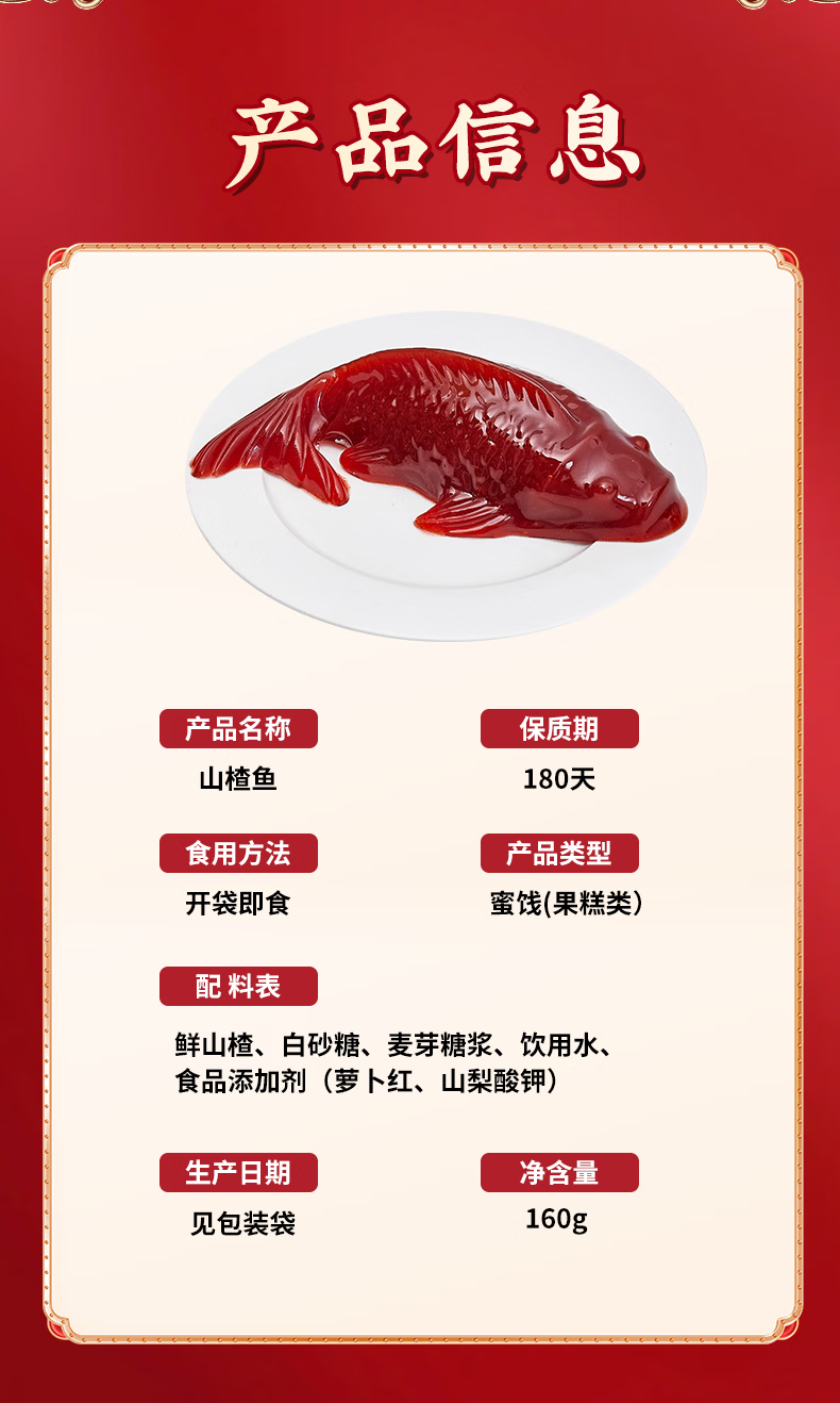 山楂鱼山楂糕鱼型无添加年年有鱼开袋即食年夜饭除夕春节摆盘 160g*2条