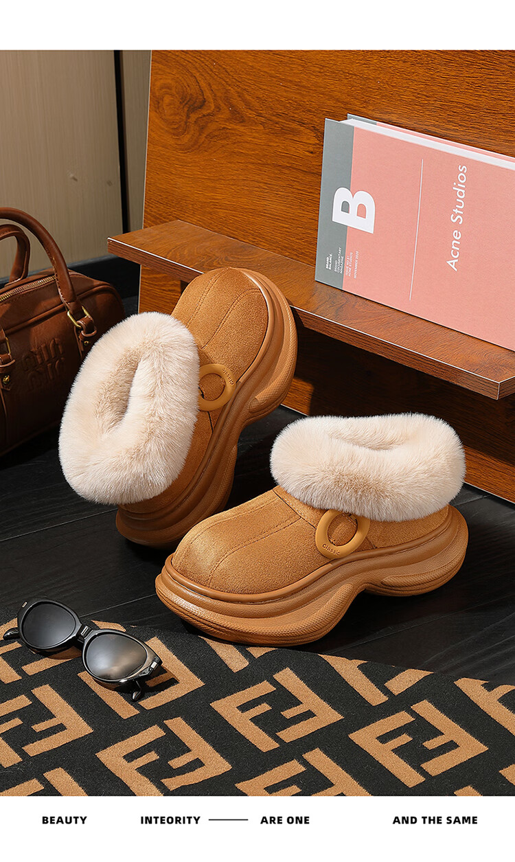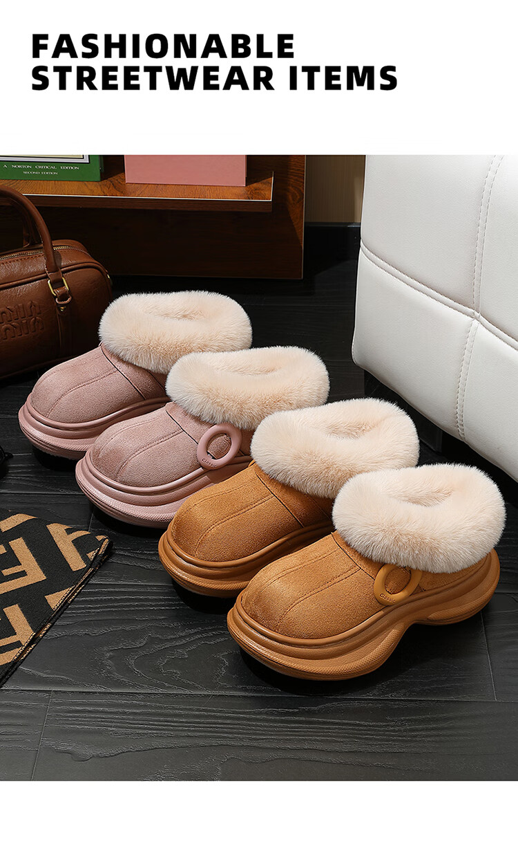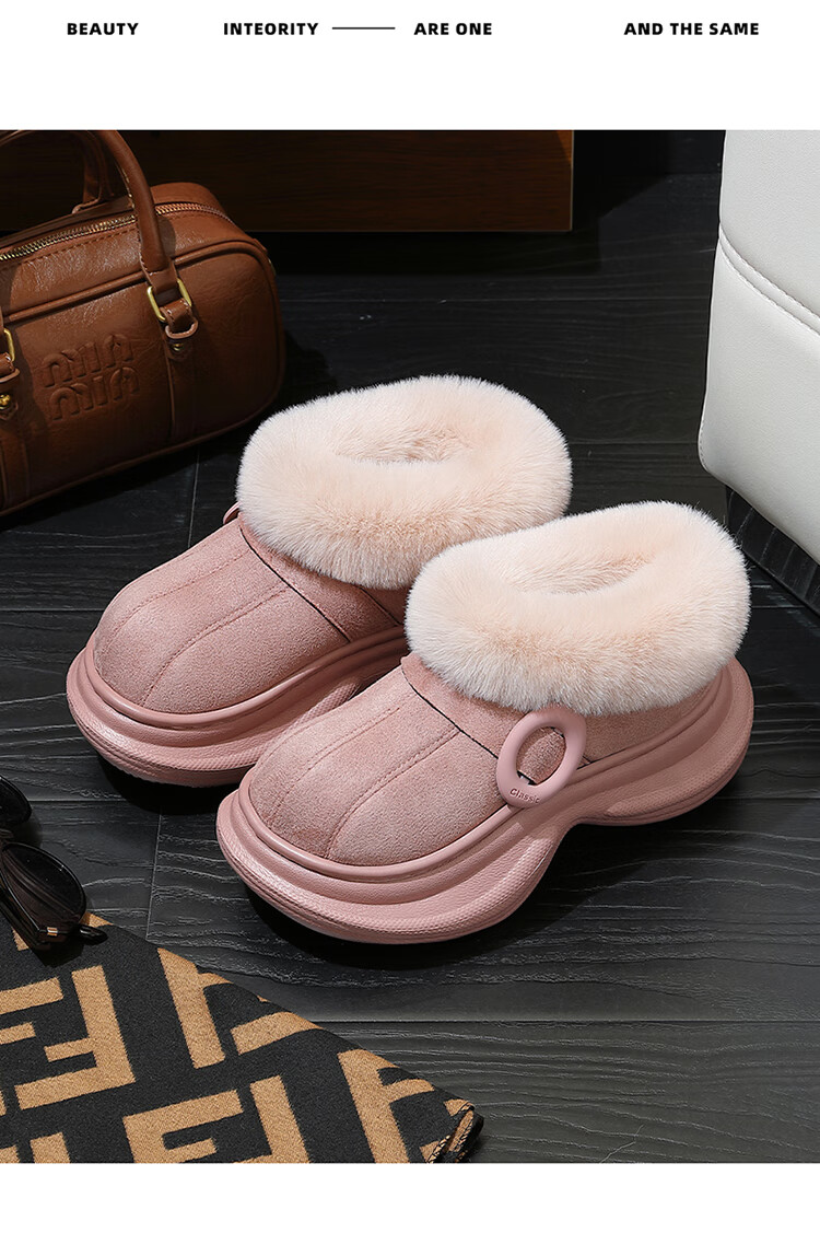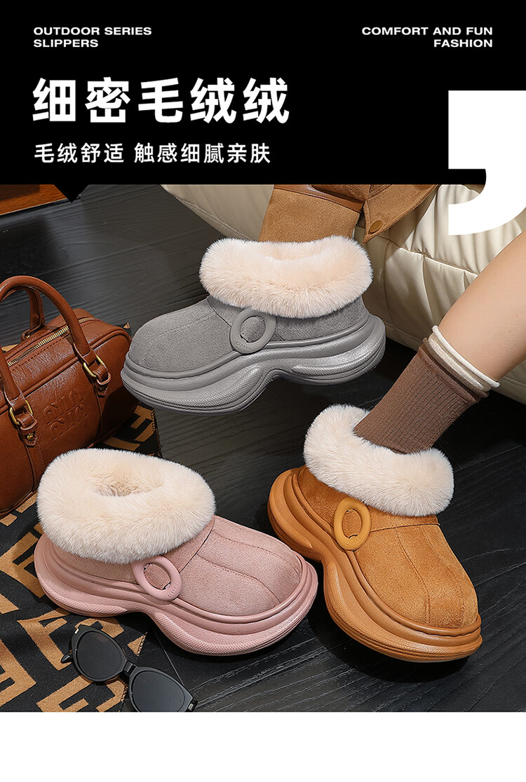 FZT厚底棉鞋女款2025新款包跟冬季居家室内保暖加绒防滑外穿女士外穿 粉色 36 -37 【标准码】