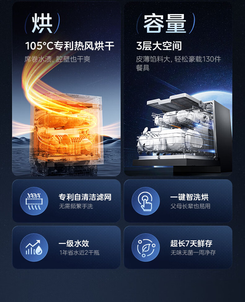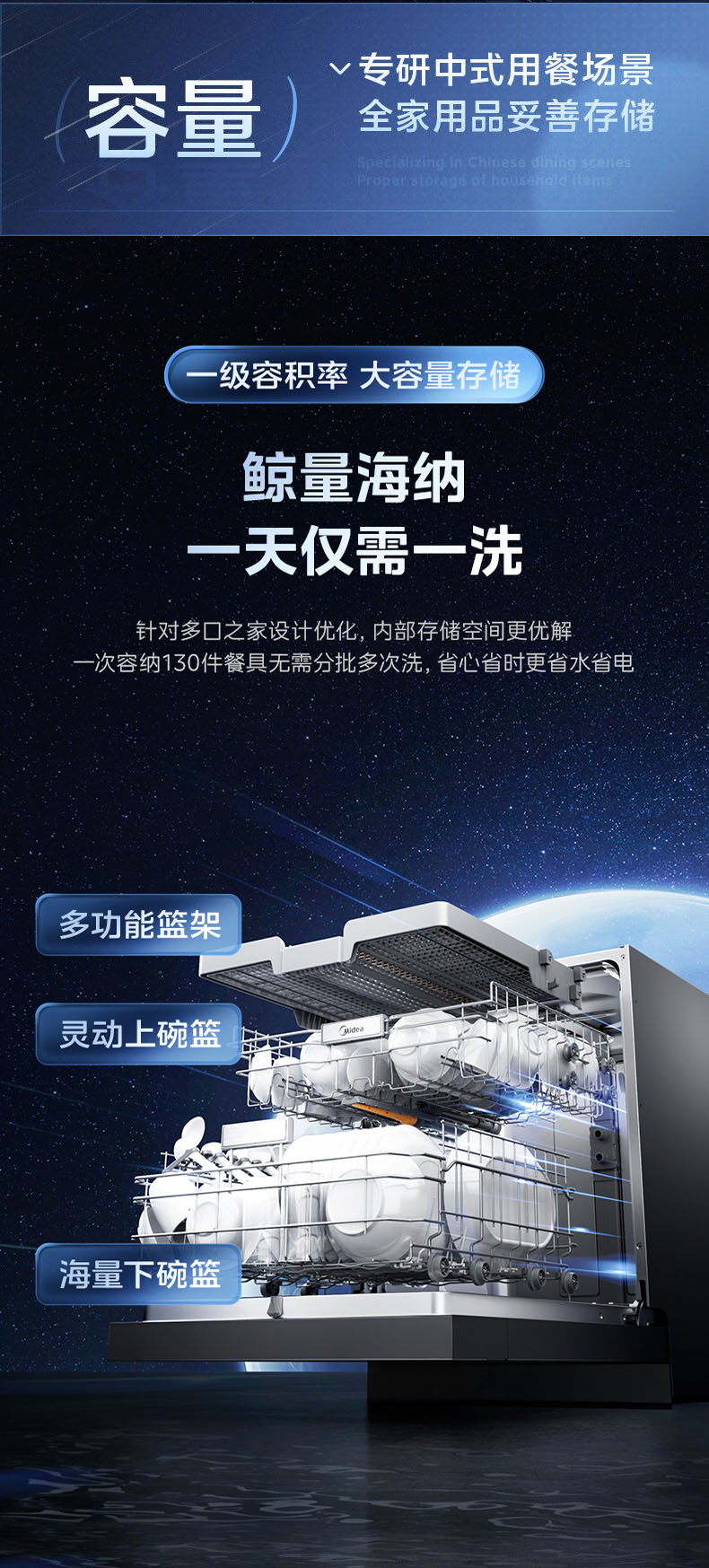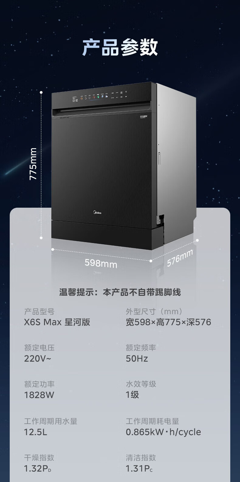 美的(Midea)【万向X6S Max星河版】洗碗机嵌入式150L以上105℃热风烘干母婴消毒一键洗烘蒸汽单消毒UV杀菌