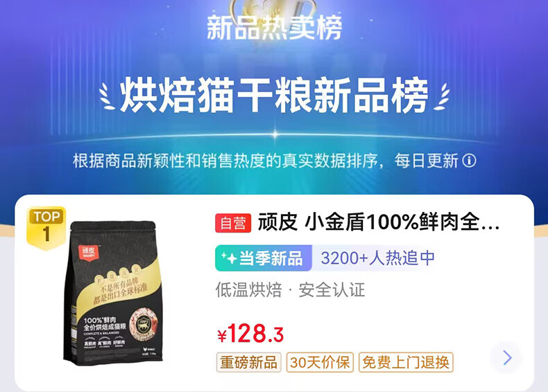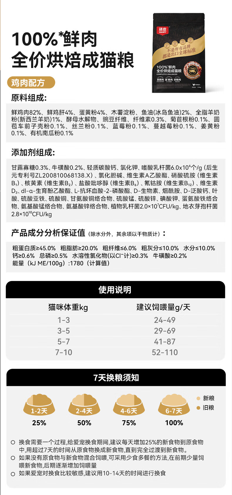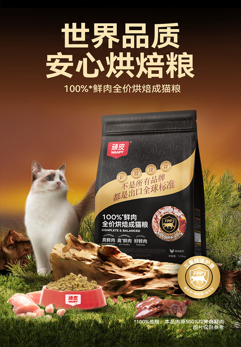 顽皮小金盾100%鲜肉全价烘焙猫粮1.35kg*4 成猫鸡肉配方 三重呵护肠胃