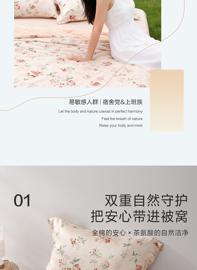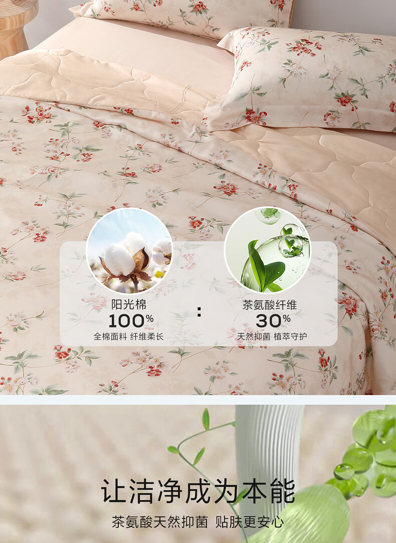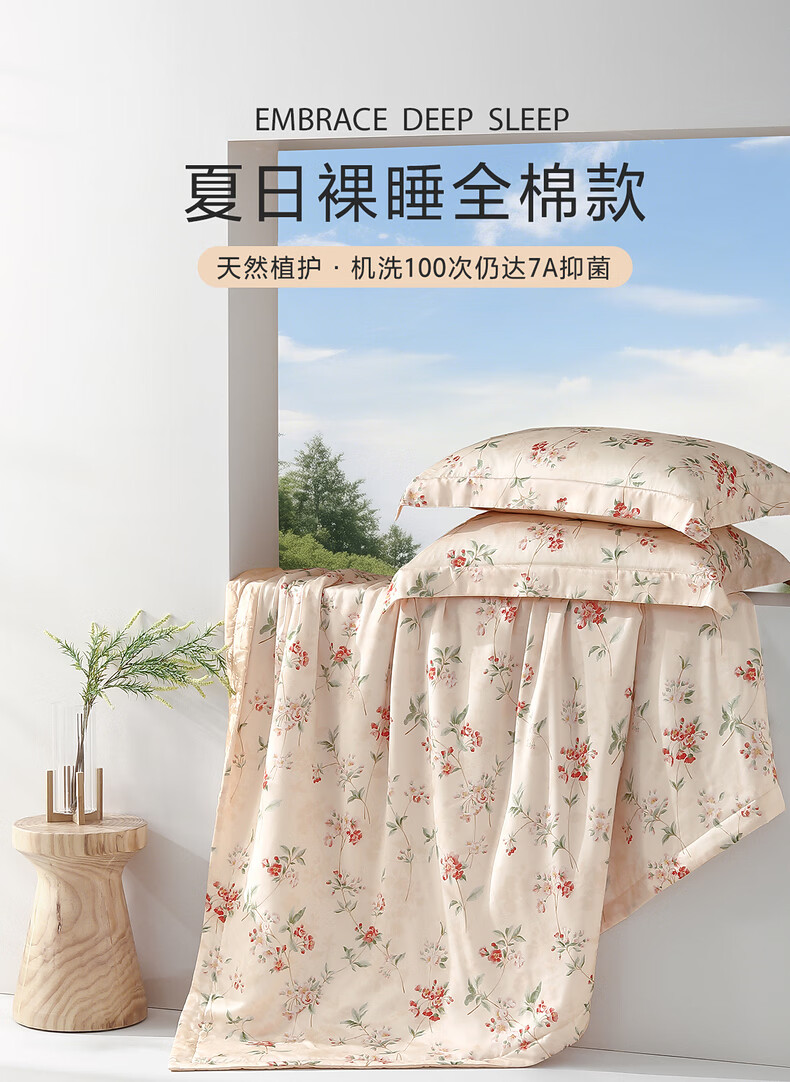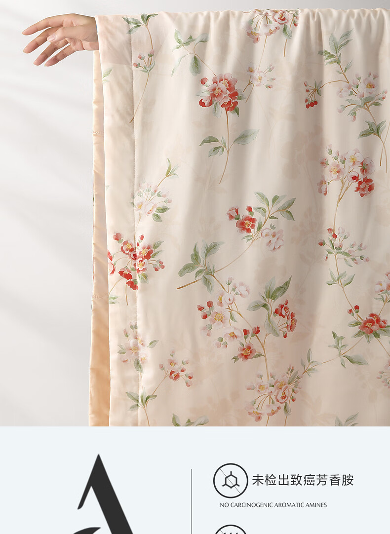 水星家纺夏被空调被A类茶氨酸抗菌居家宿舍空调被26新款 繁花·花染全棉夏被 150cm*200cm