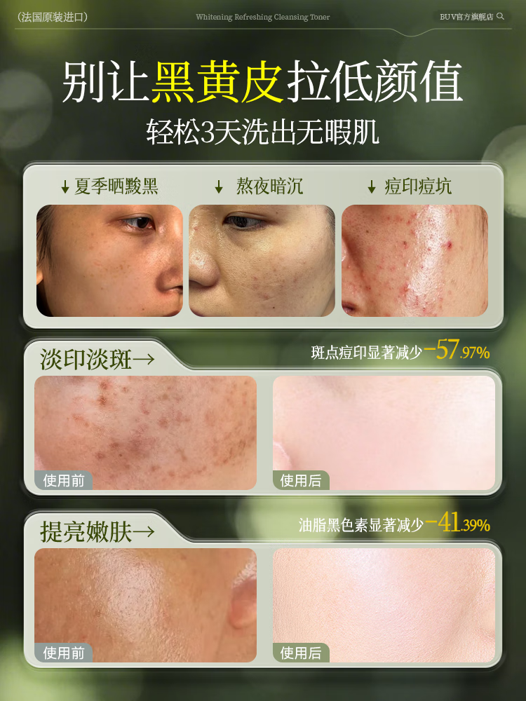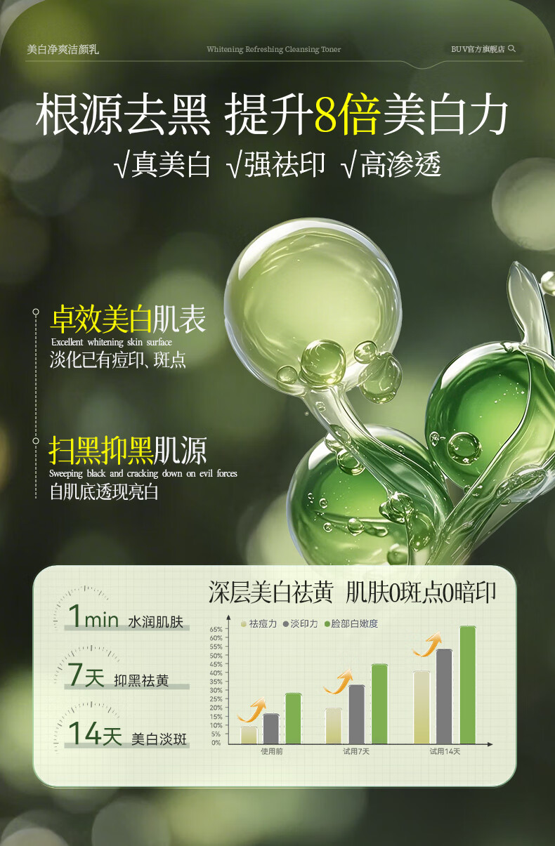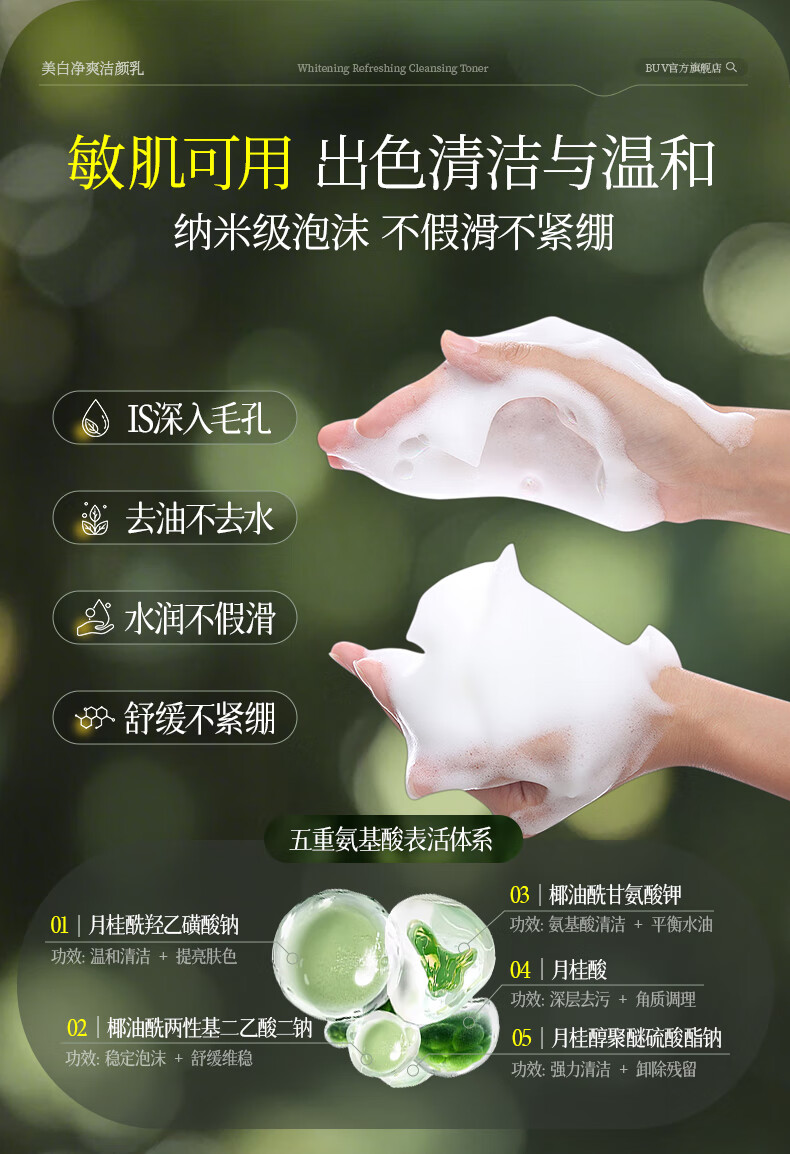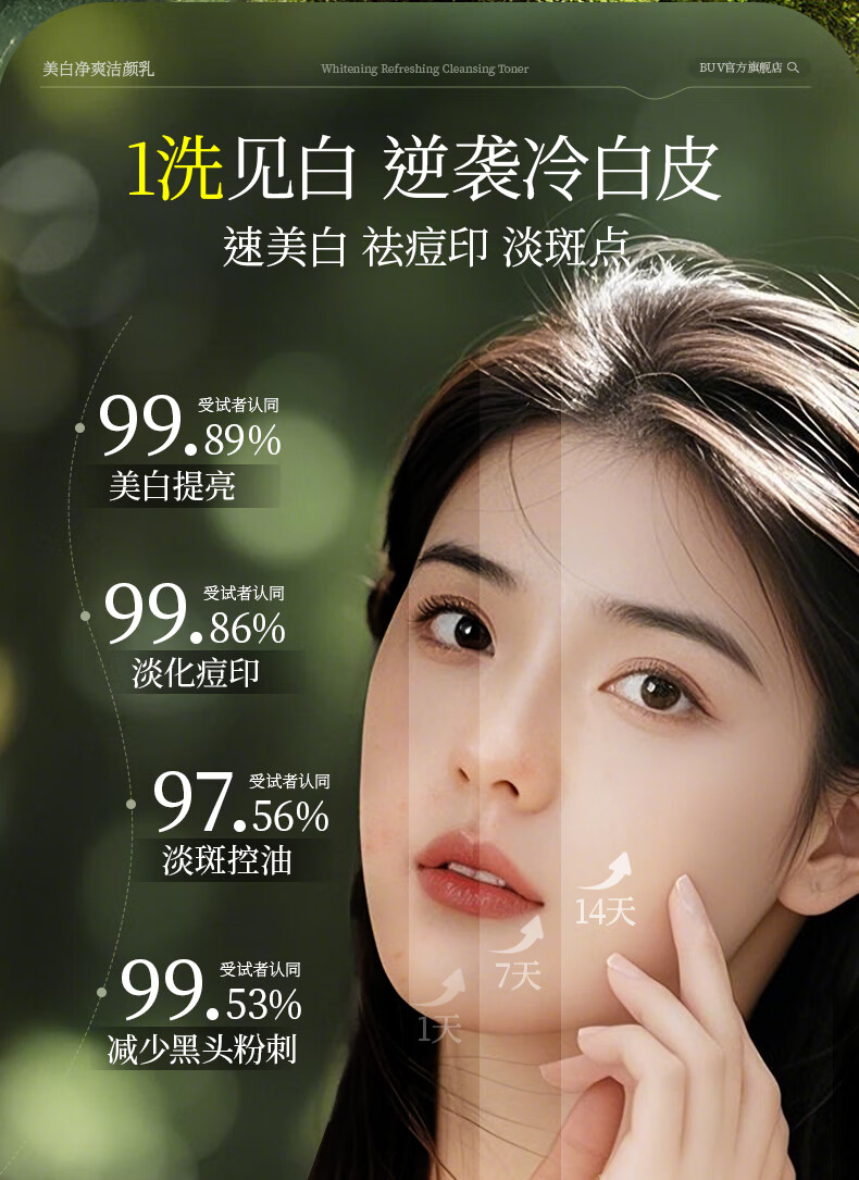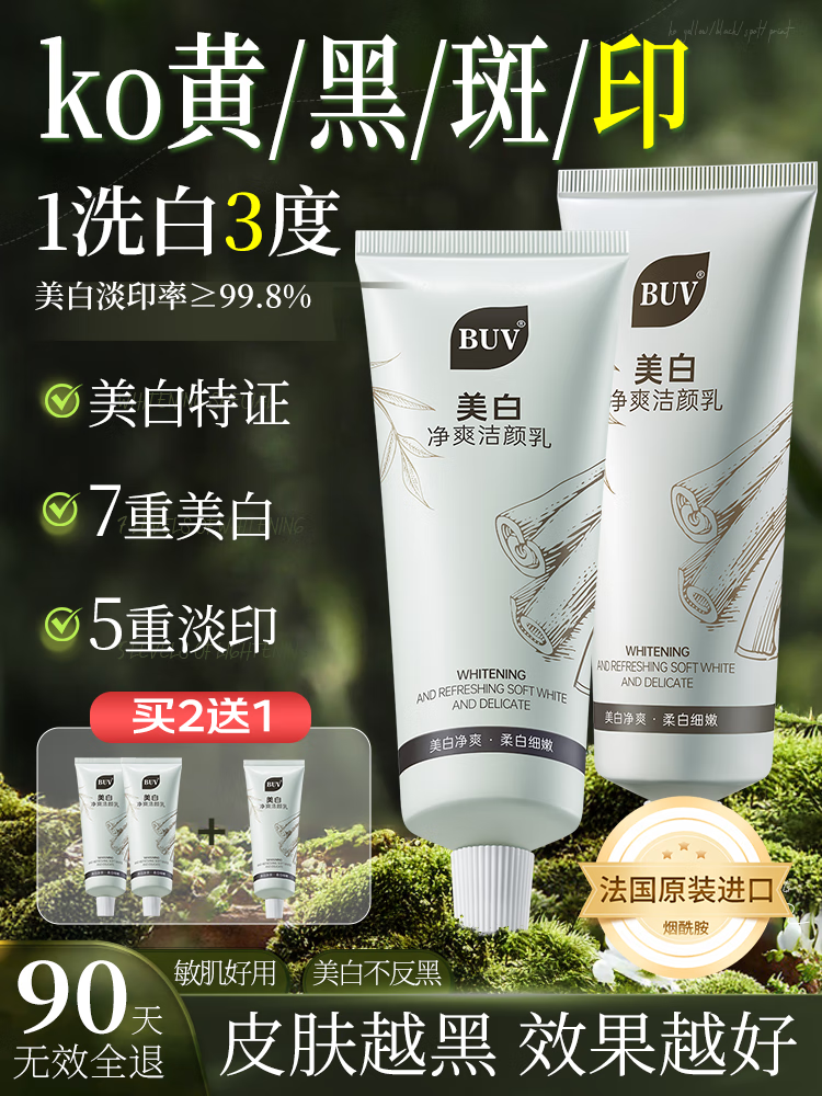 BUV美白洗面奶淡斑提亮肤色男女士专用烟酰胺去黄痘印氨基酸法国进口