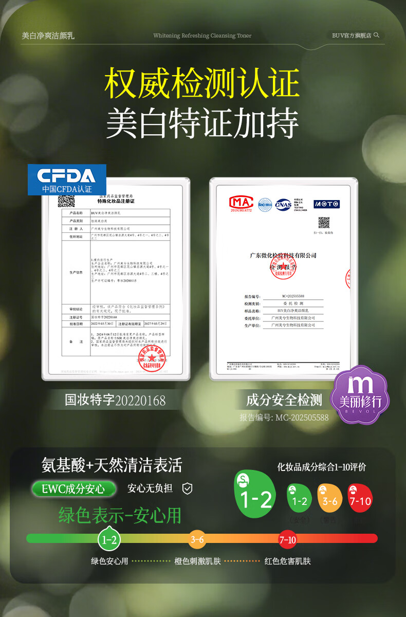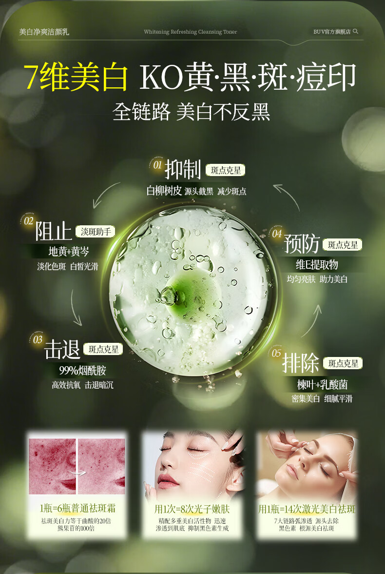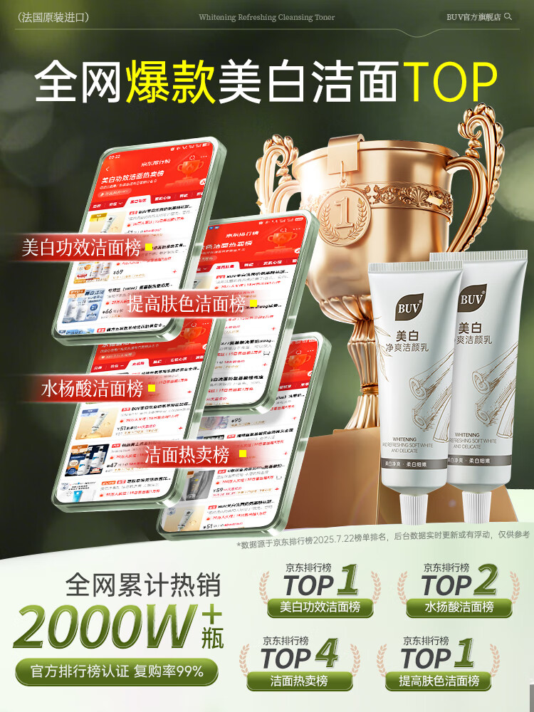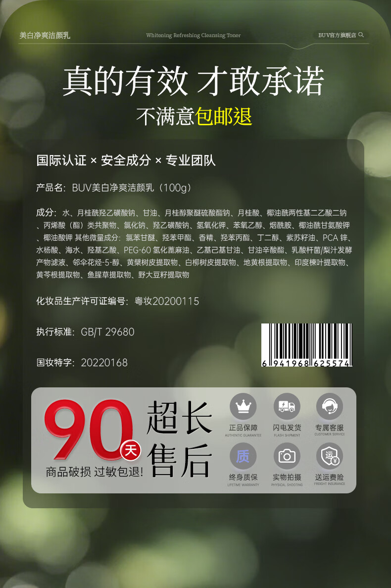 BUV美白洗面奶淡斑提亮肤色男女士专用烟酰胺去黄痘印氨基酸法国进口