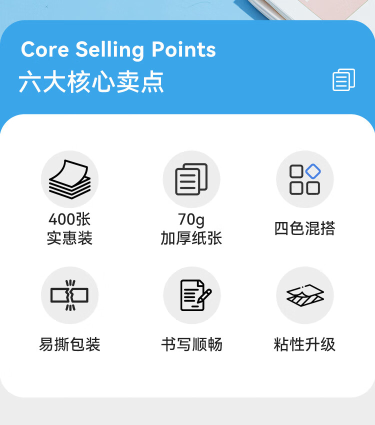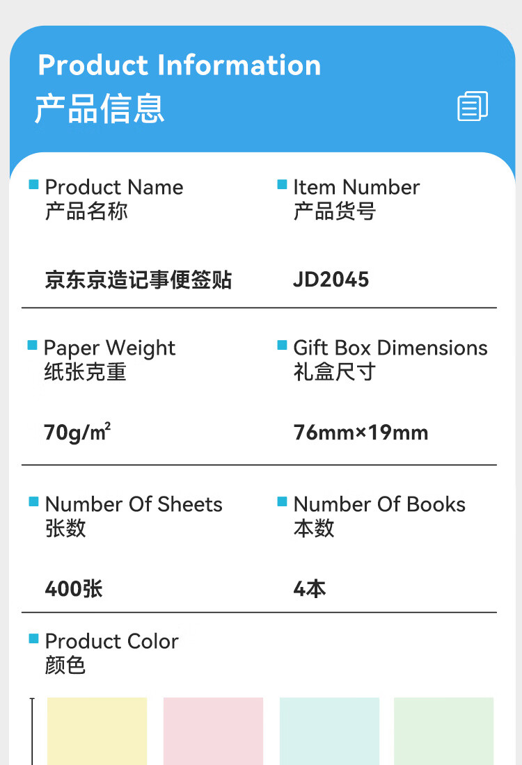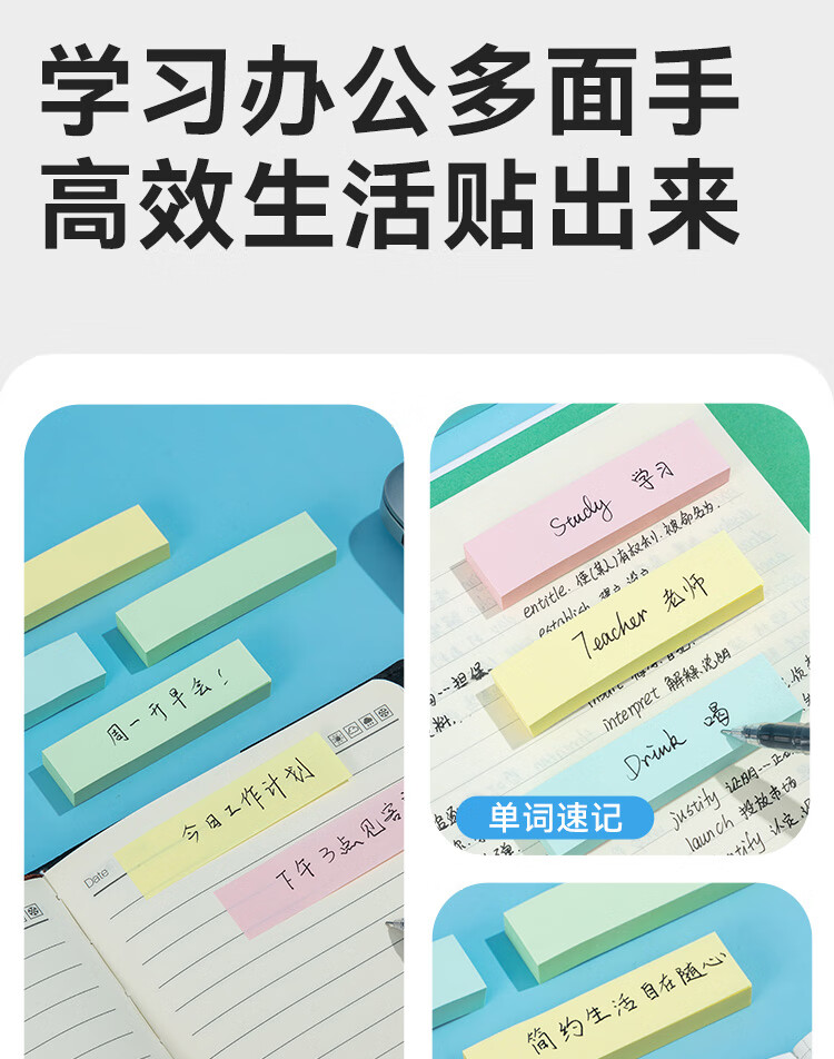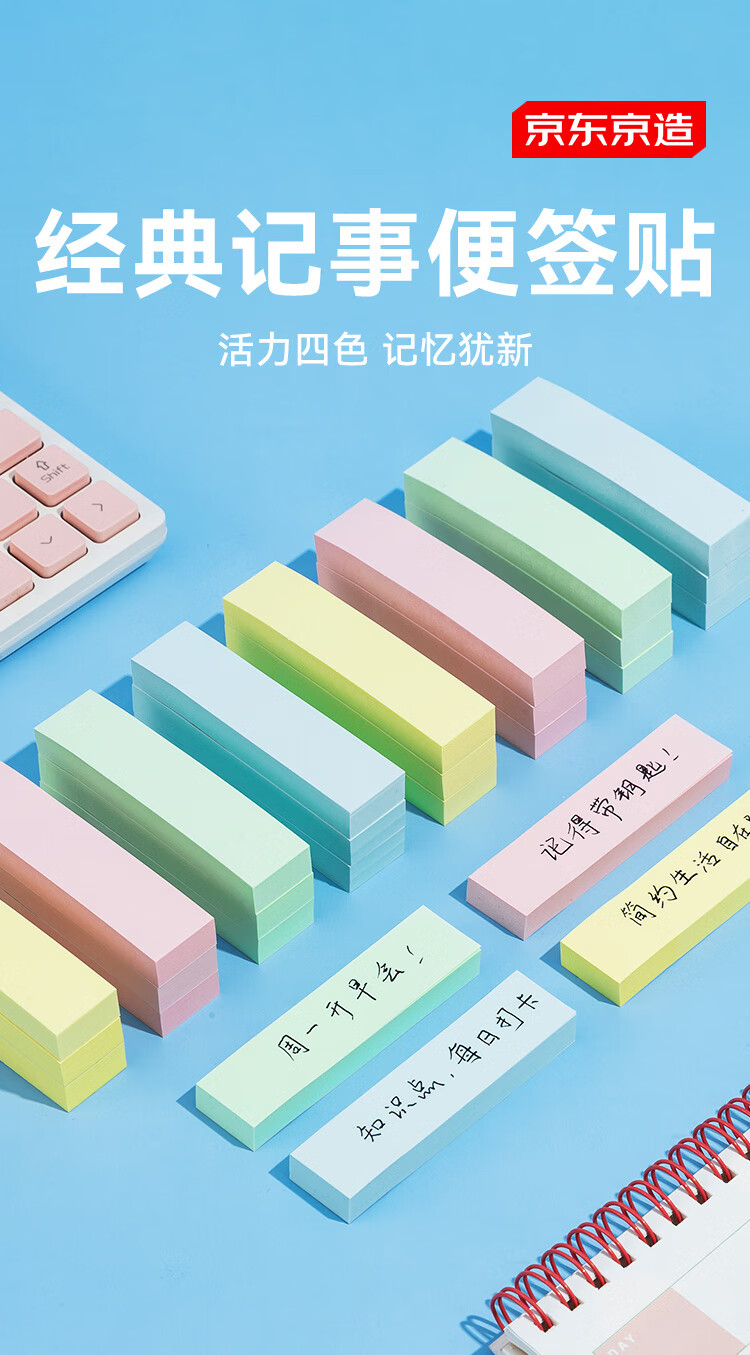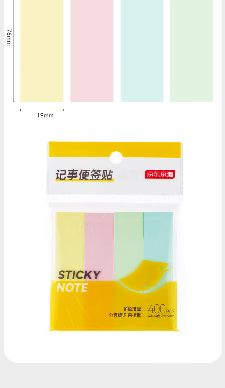 京东京造 记事便签贴76×19mm 400张(4本×4色)自粘记事贴便利贴