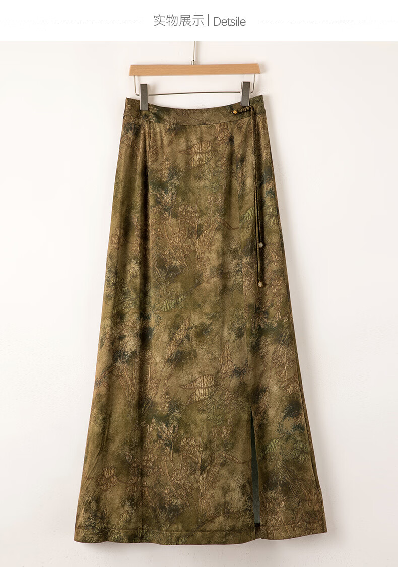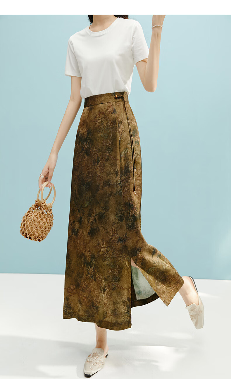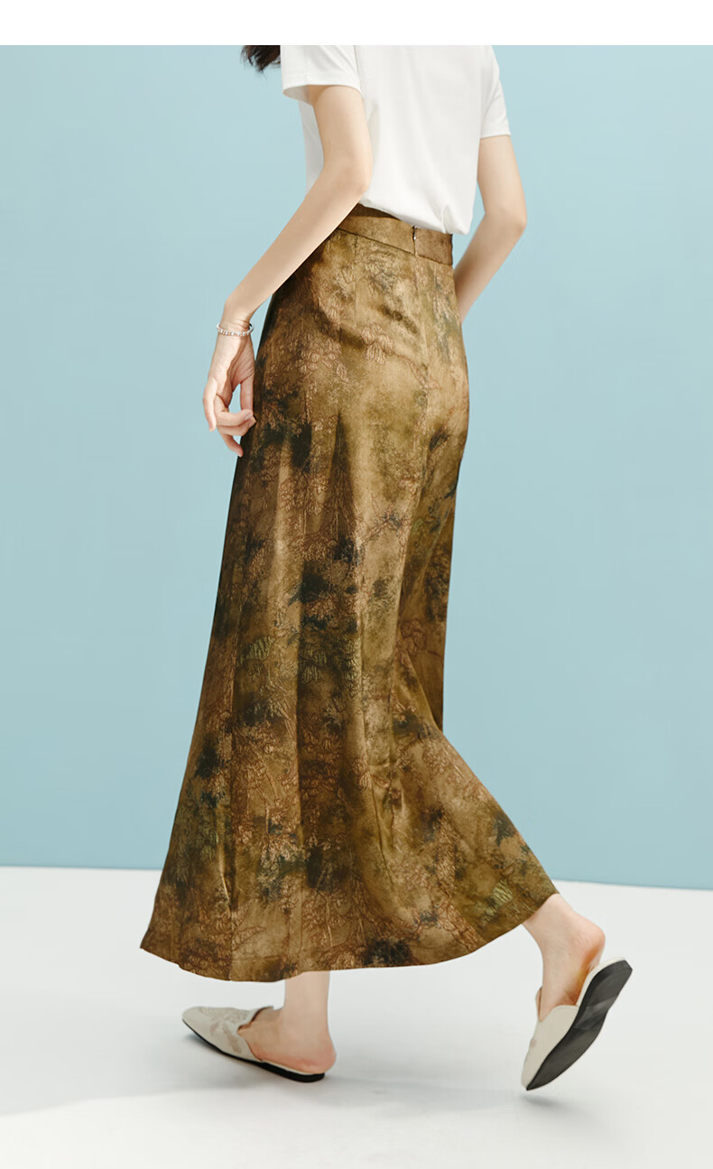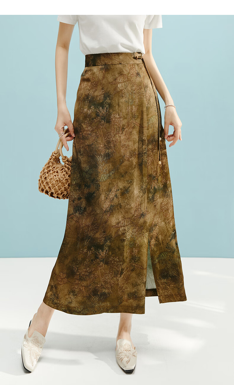 晚白【断码清仓】2026年春款时尚气质半裙休闲高腰印花直筒半身裙 棕色 S