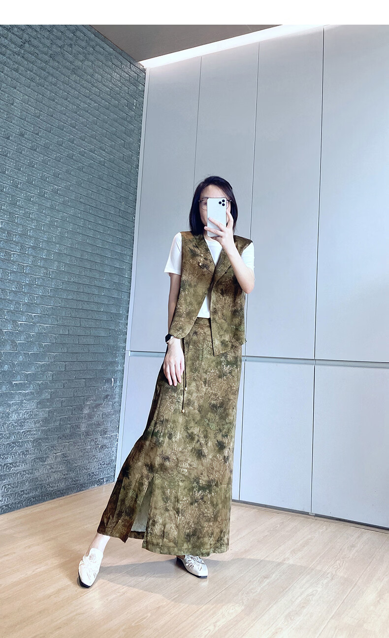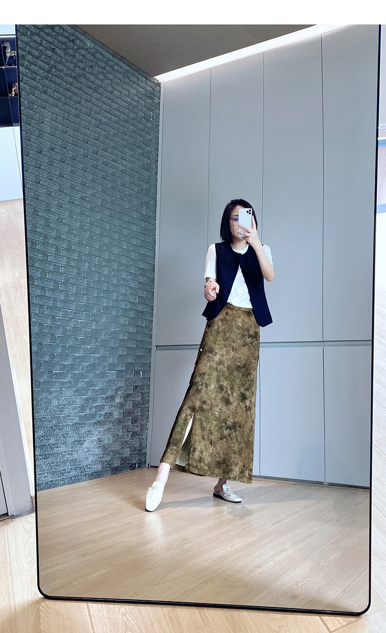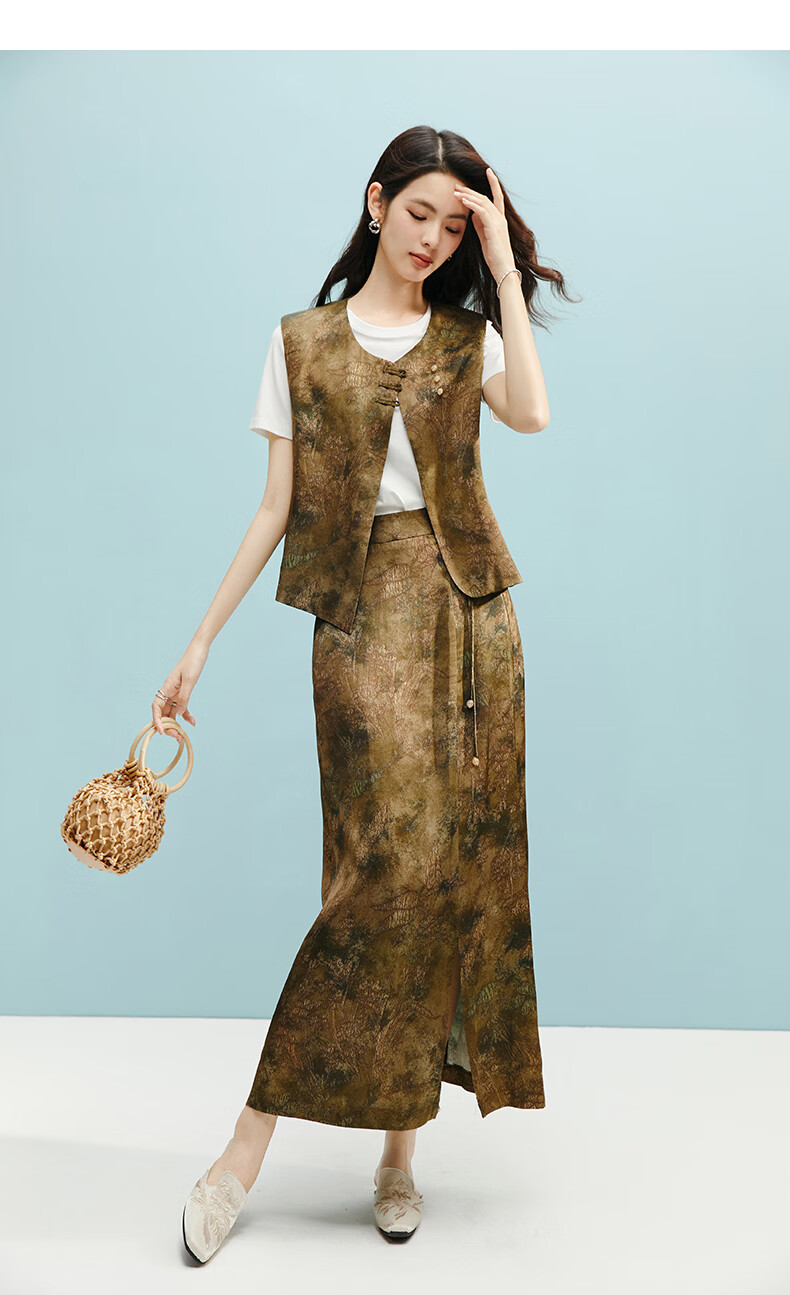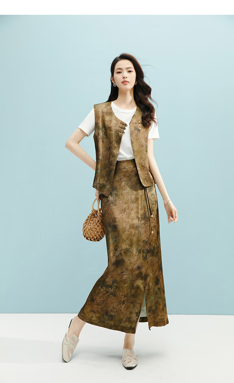 晚白【断码清仓】2026年春款时尚气质半裙休闲高腰印花直筒半身裙 棕色 S