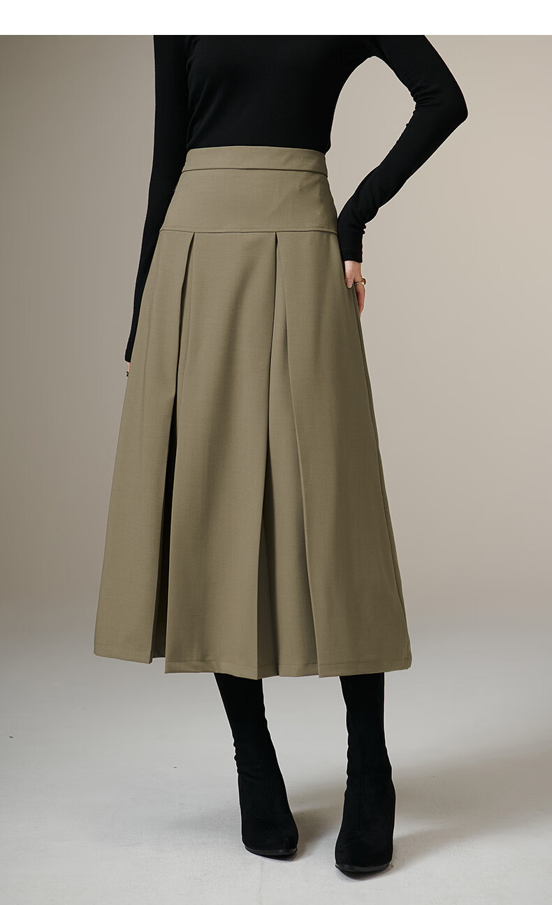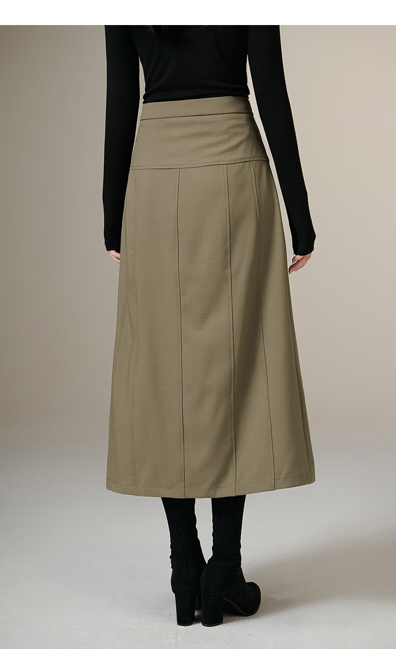 晚白【新品】2026年春款经典高腰半裙利落显瘦气质通勤A字半身裙 军绿色 S