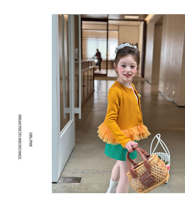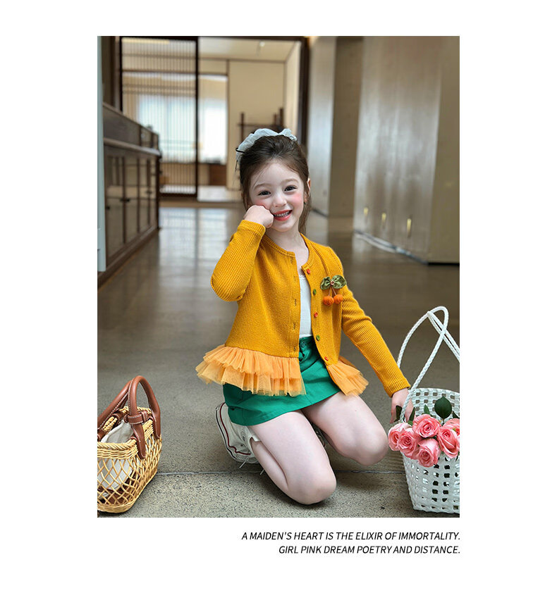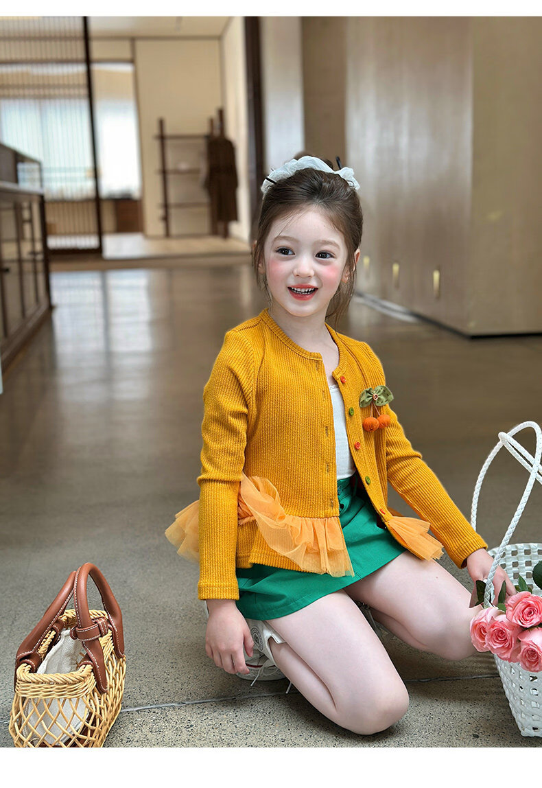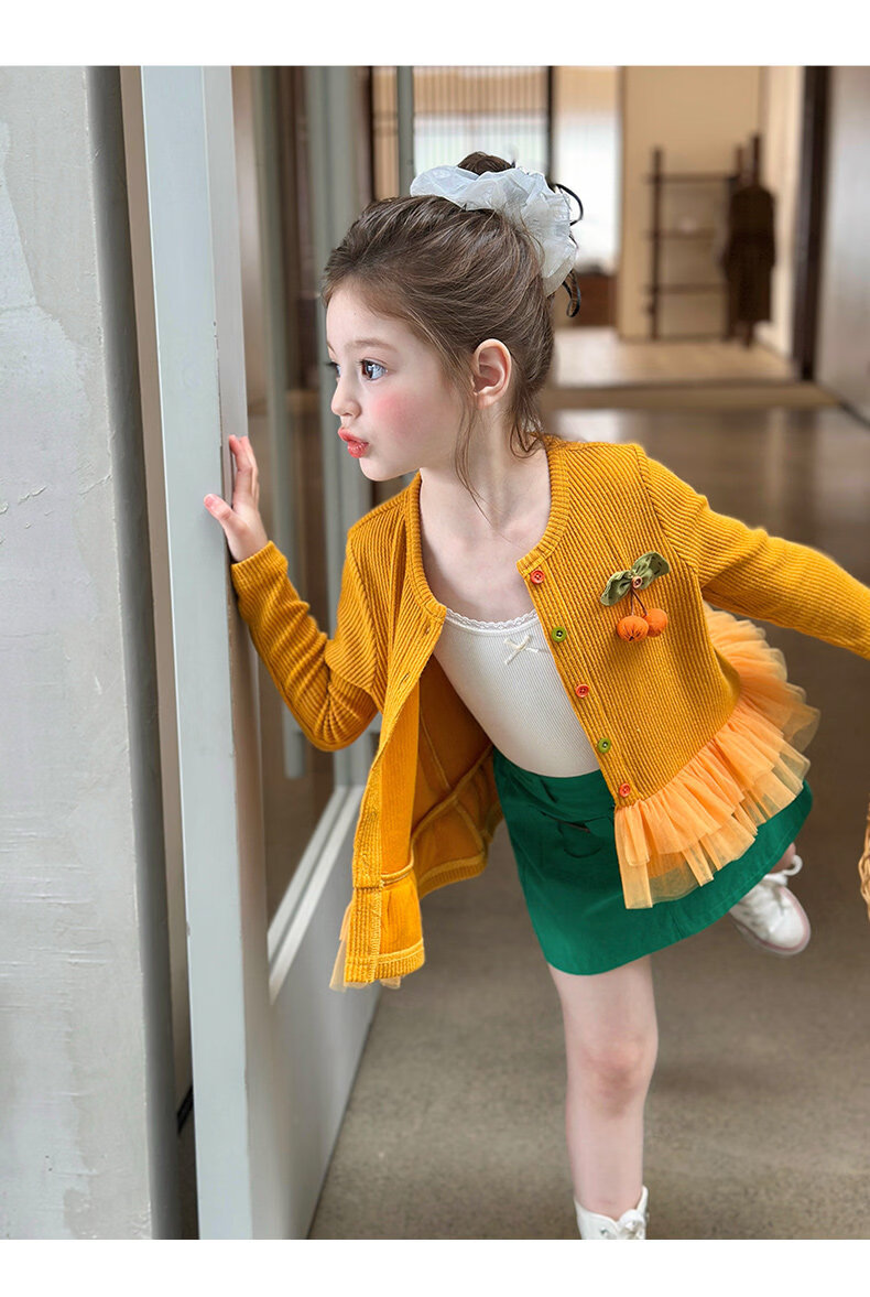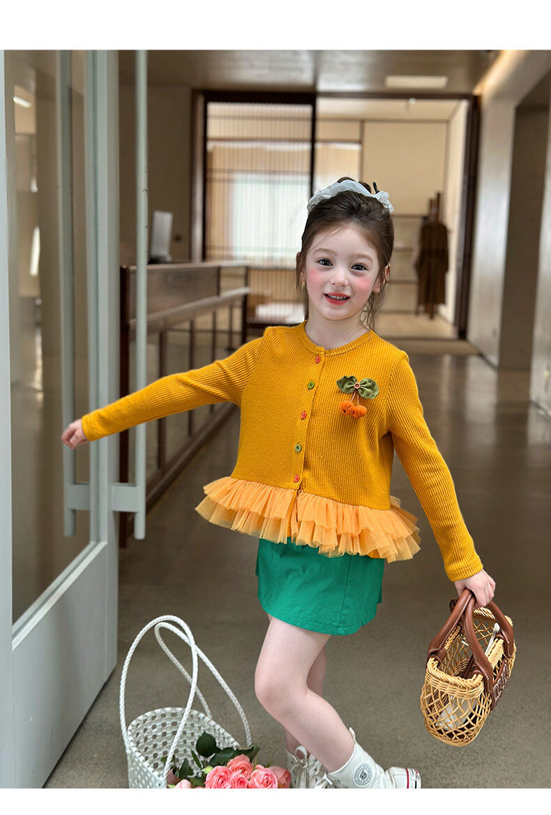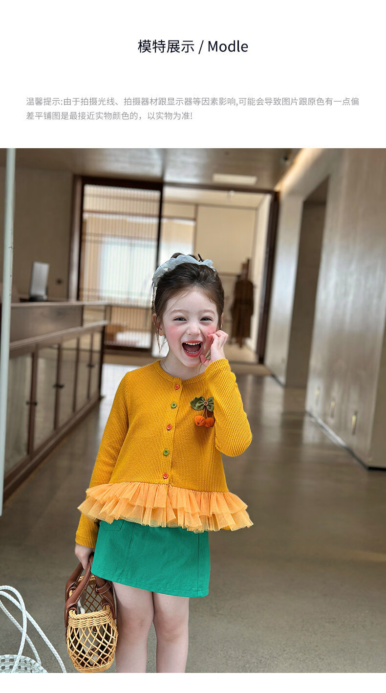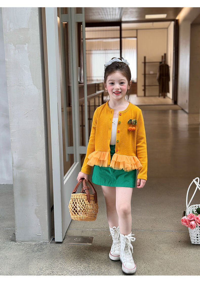 栀了成长记女童装百搭网纱拼接毛衣2026春季儿童新款休闲针织开衫 绿色 半身裙 140 cm