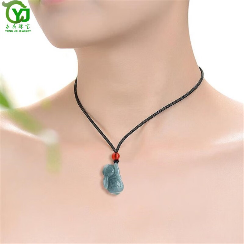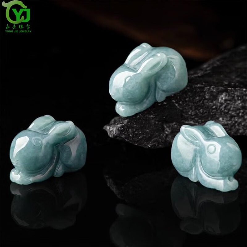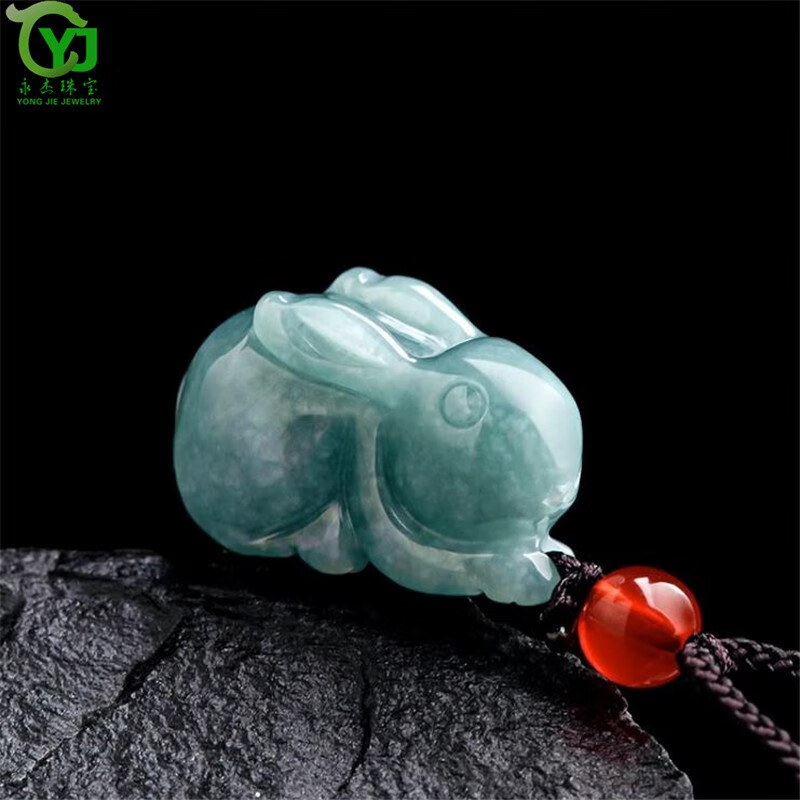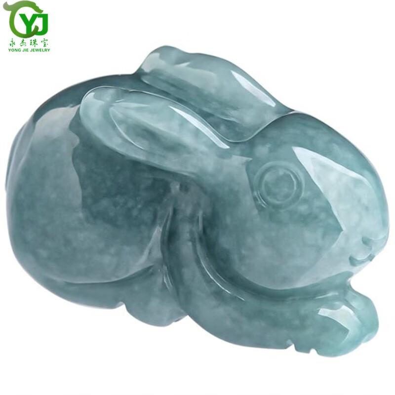永杰原创新款【前兔似锦】A货翡翠蓝水玉兔立体兔生肖兔玉石吊坠女男