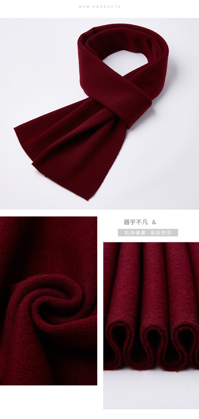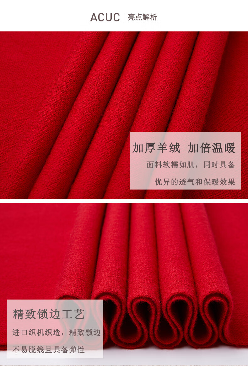 EMZ鄂尔多斯市纯色羊毛围巾男女士冬季蛇年本命年会中国红色定制礼物 年年有鱼