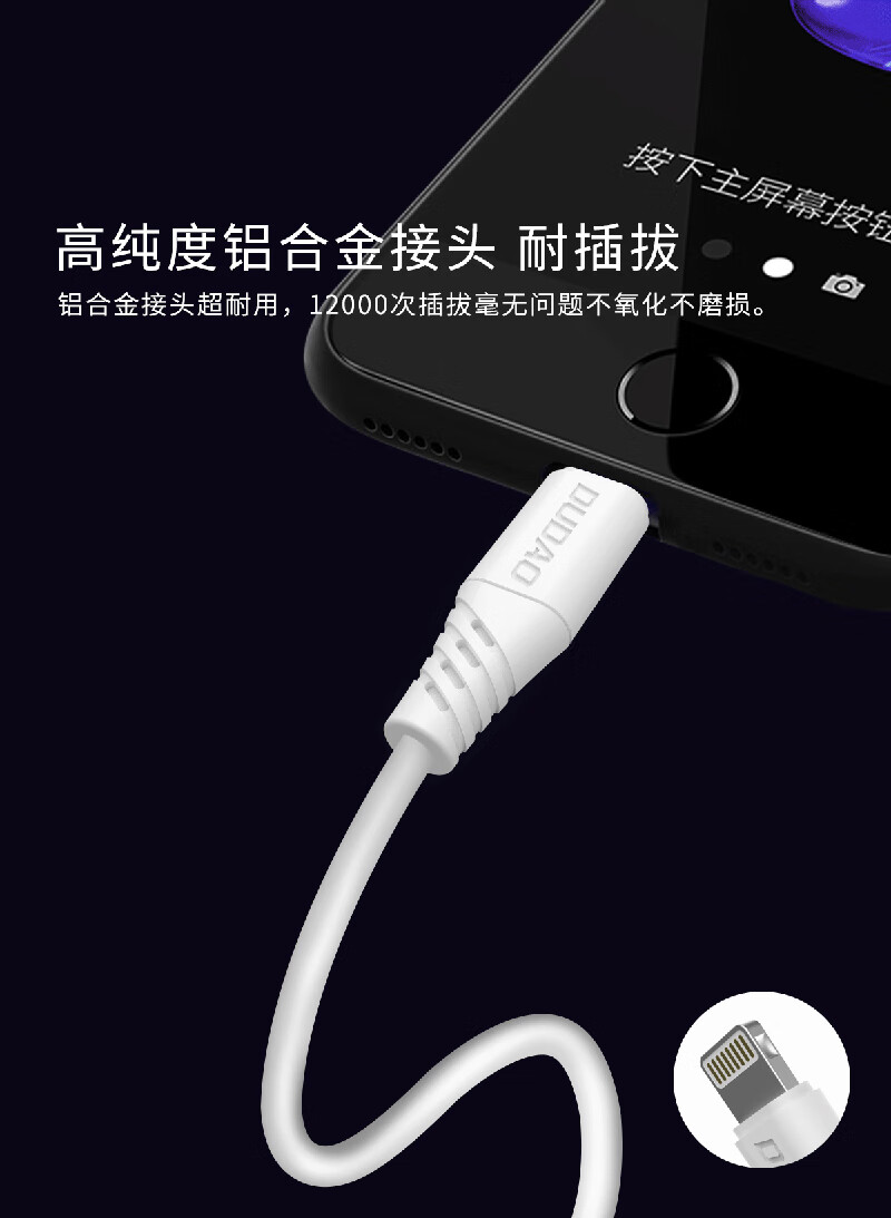 DUDAO适用全兼容安卓华为VIVO小米OPPO 数据线type-c快充手机充电线 L4L-苹果接口【到手2条】