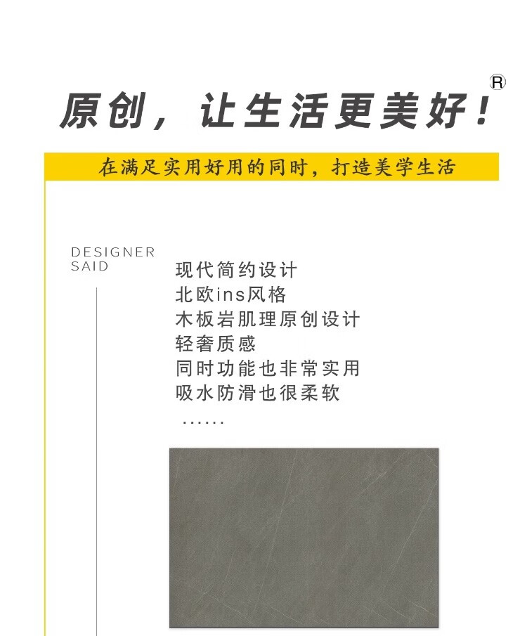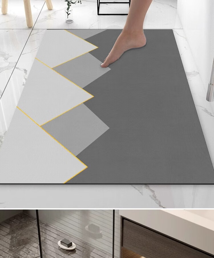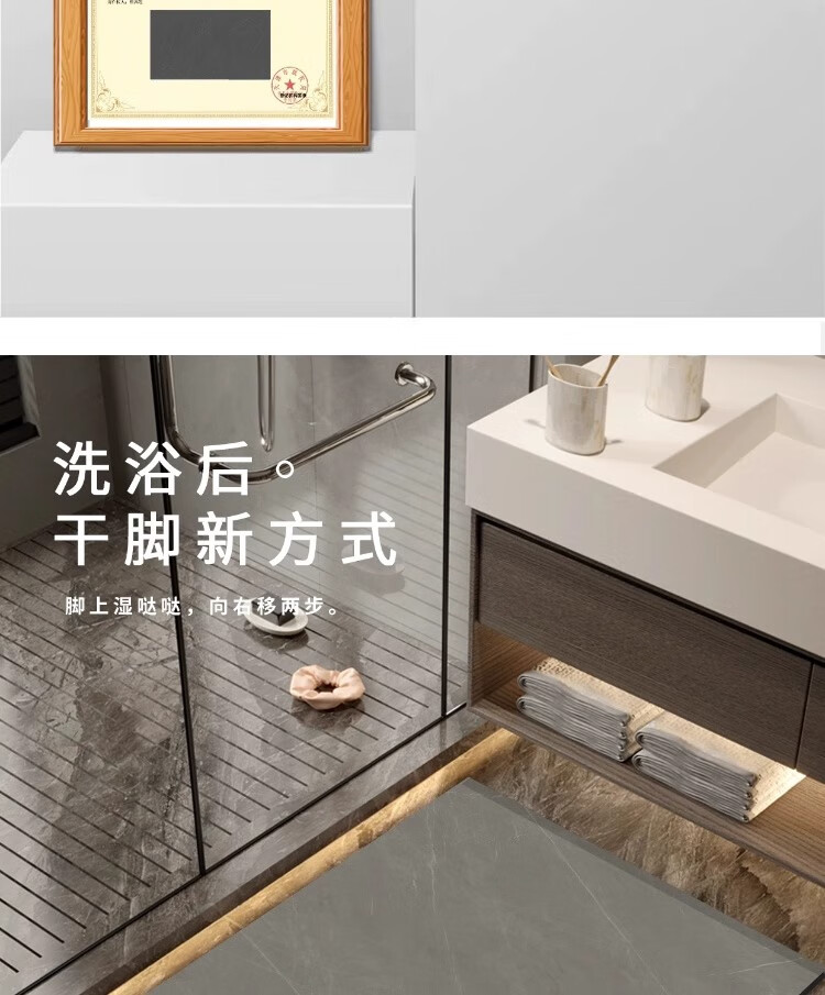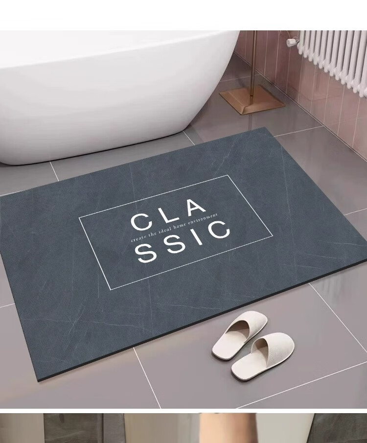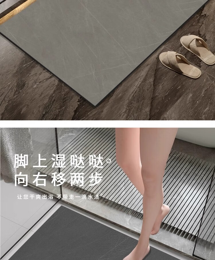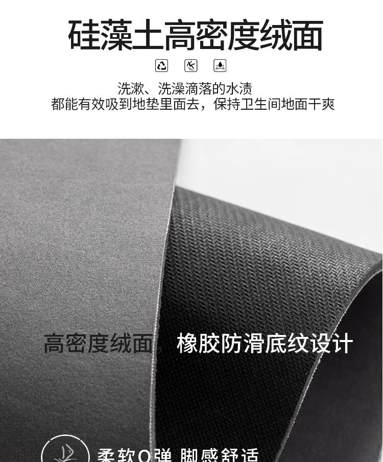 著忆浴室地垫软硅藻泥卫生间吸水垫子脚垫厕所洗手间门口防滑速干地毯 经典浅灰 60cm*90cm 【原创专利产品】