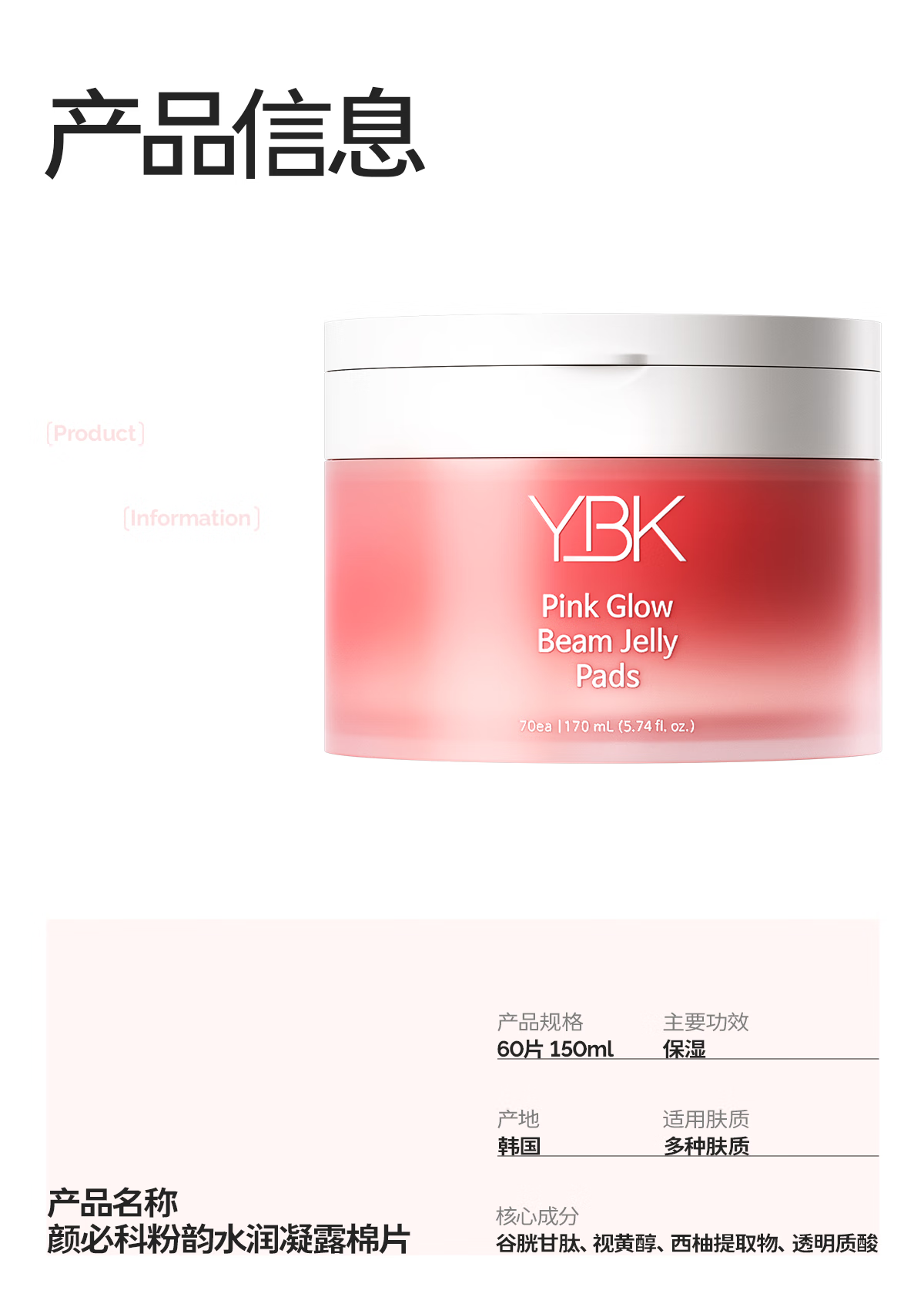 颜必科(YBK)粉韵谷胱甘肽焕亮棉片补水保湿秋冬季温和焕亮急救精华湿敷面膜女