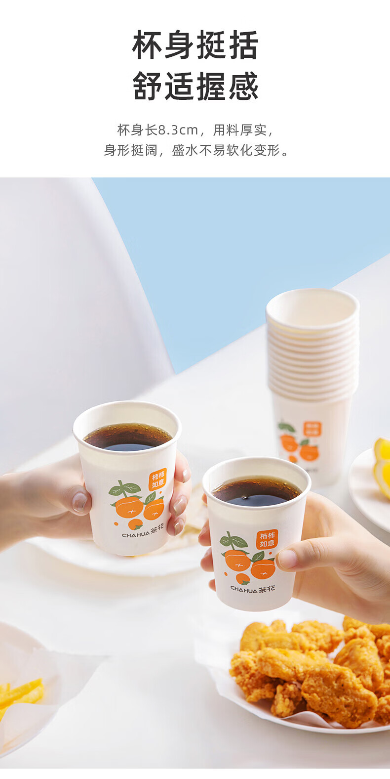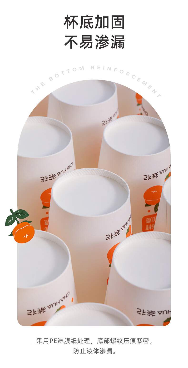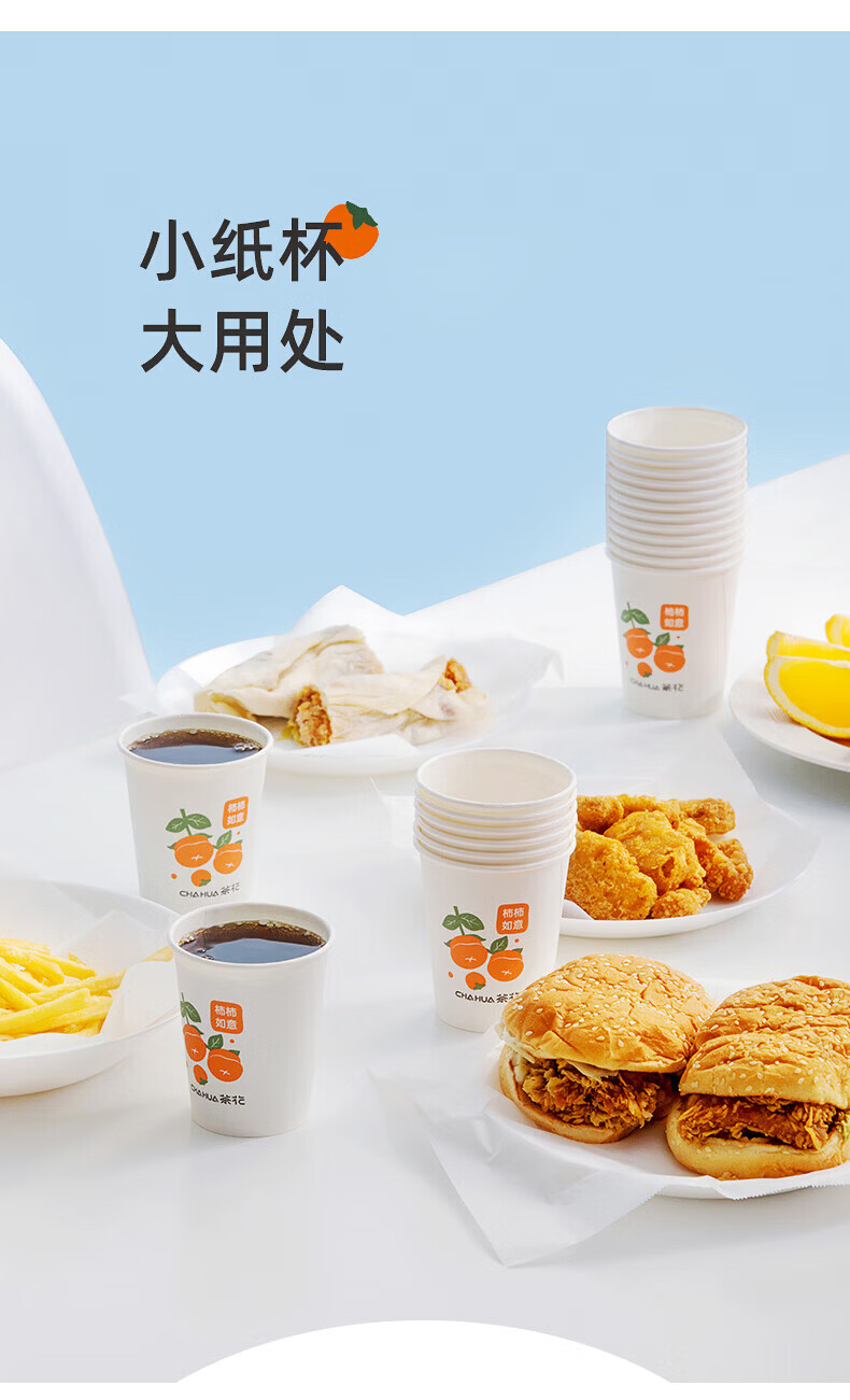 茶花(CHAHUA)一次性加厚纸杯柿柿如意咖啡杯奶茶杯饮料杯新年过年节庆包装 柿柿如意 100只 单只218ML