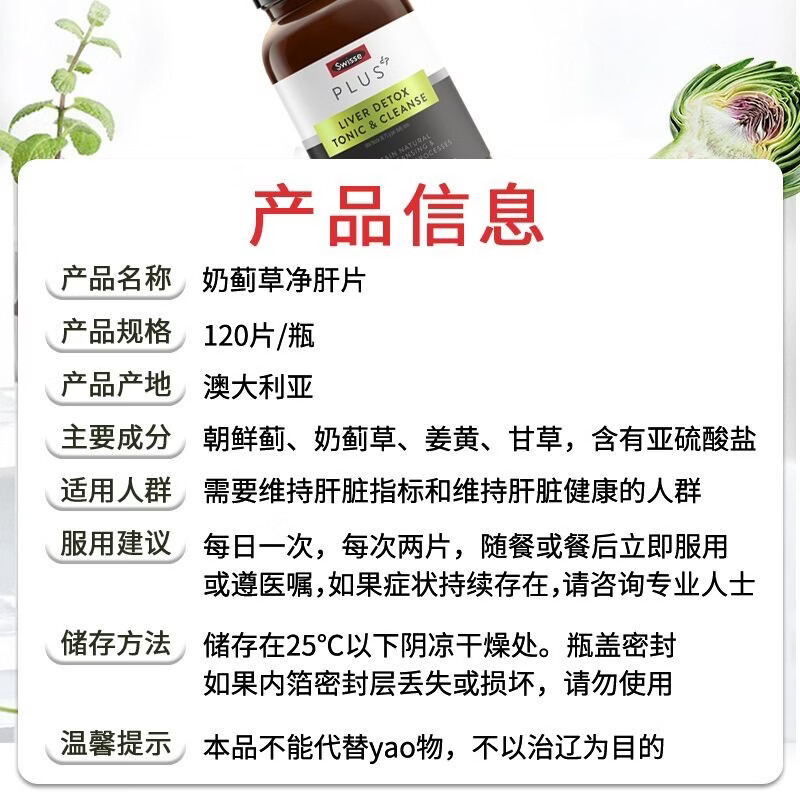 Swisse澳洲净肝片高浓度70倍加强奶蓟草熬夜护肝片120粒 70倍护肝 120粒*1瓶