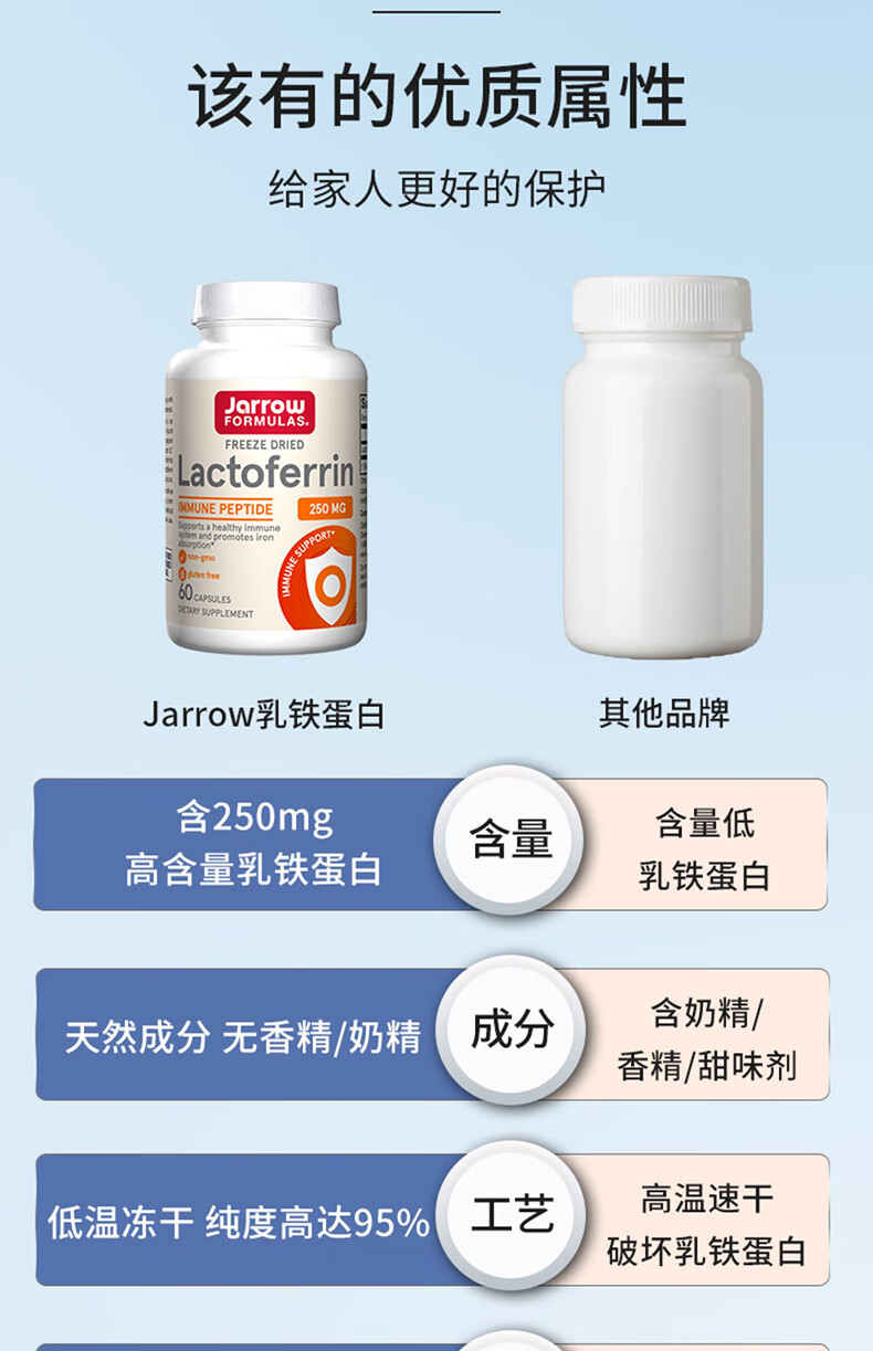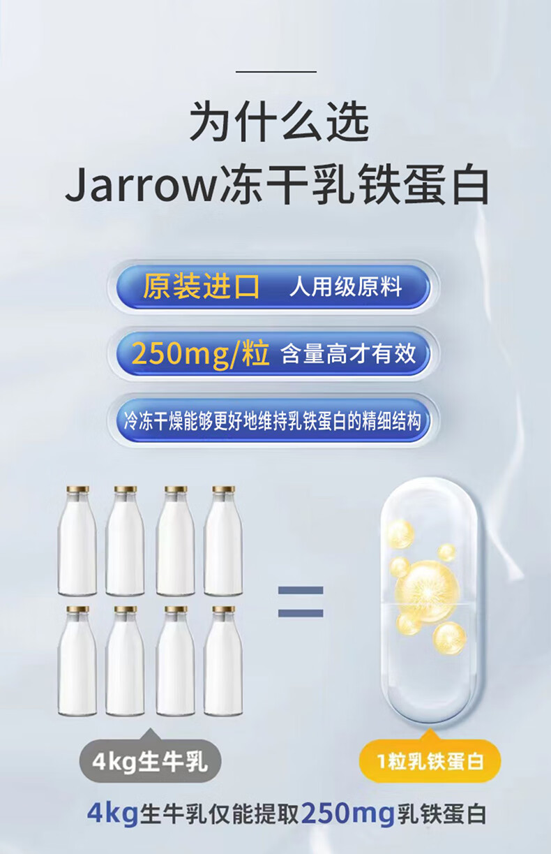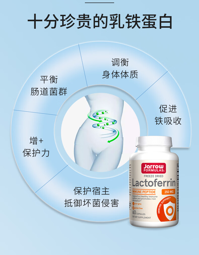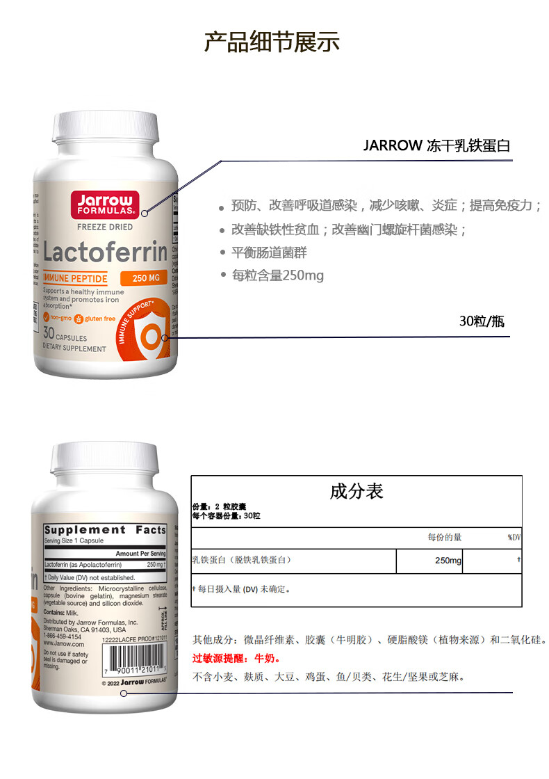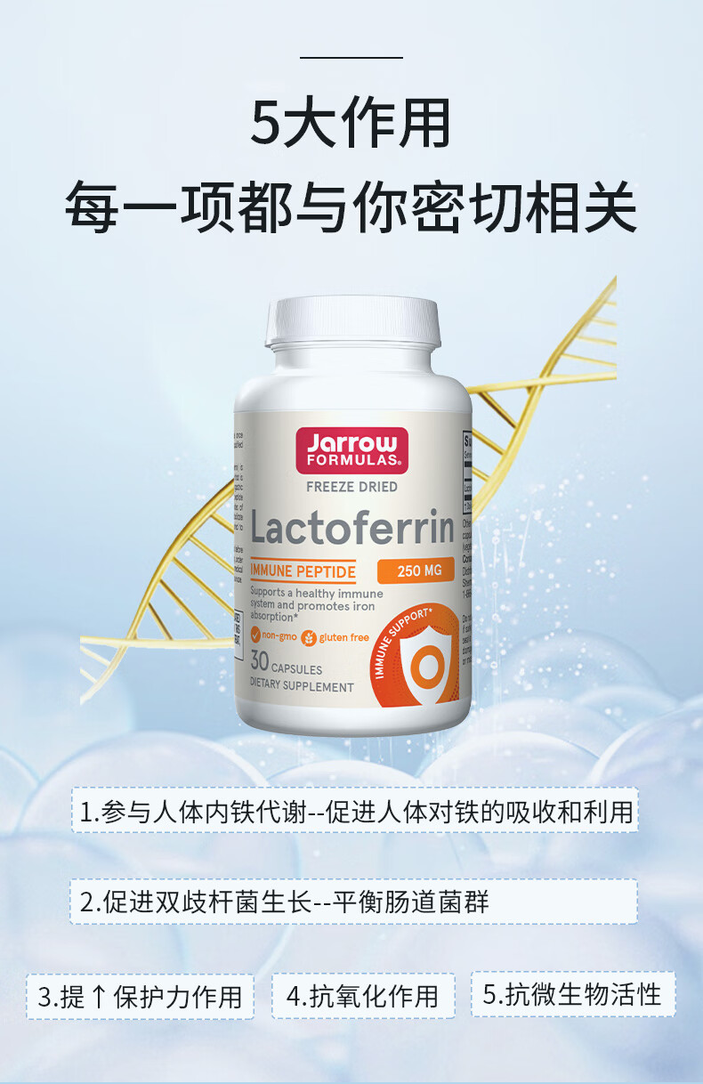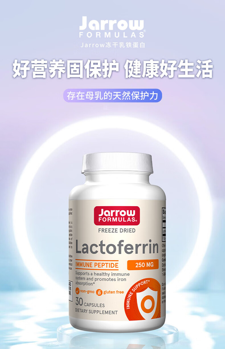 Jarrow杰诺乳铁蛋白胶囊 提升免疫力和抵抗力 牛初乳 美国进口 冻干乳铁蛋白 30粒/瓶