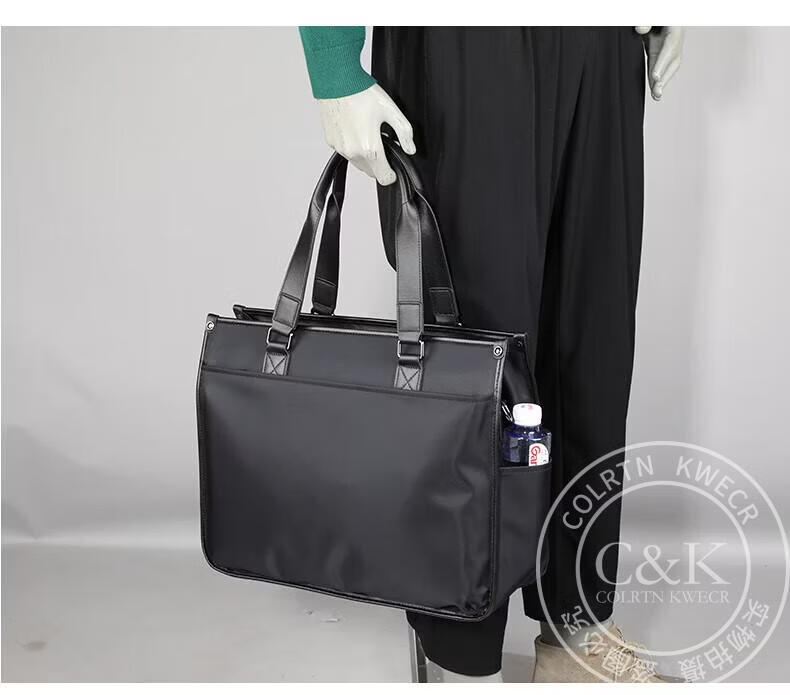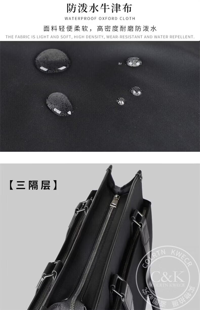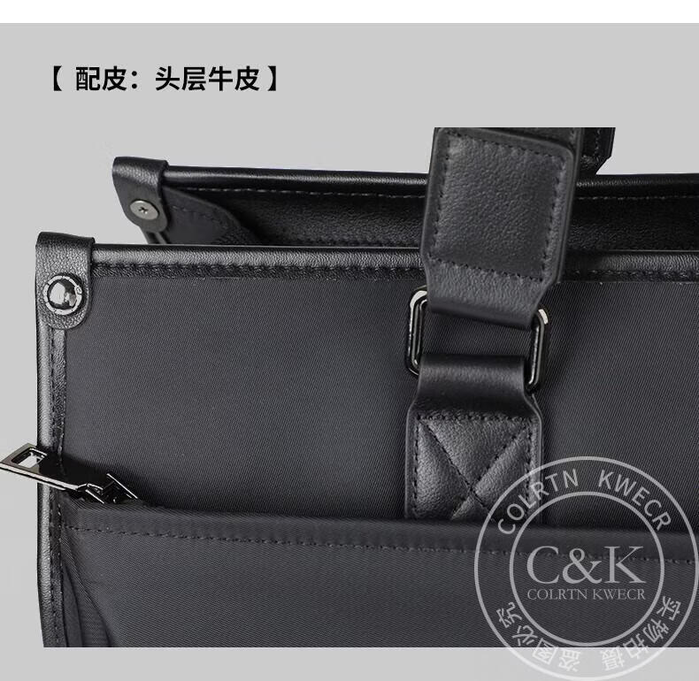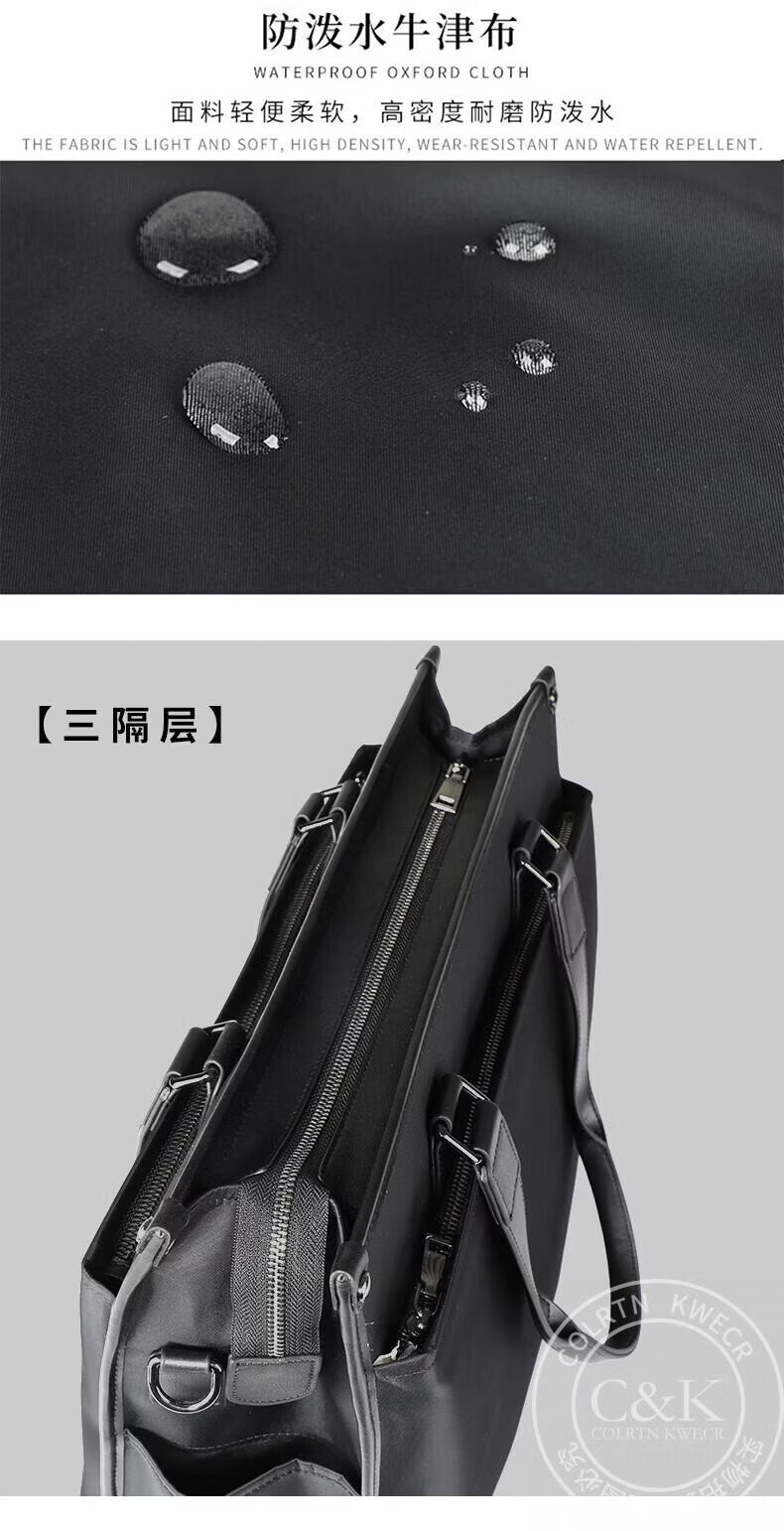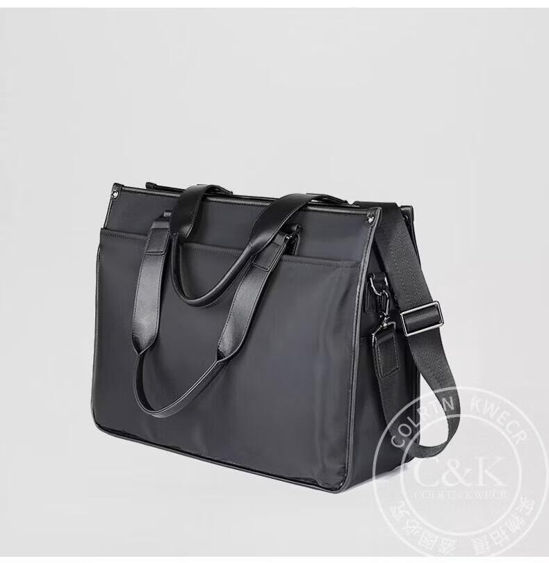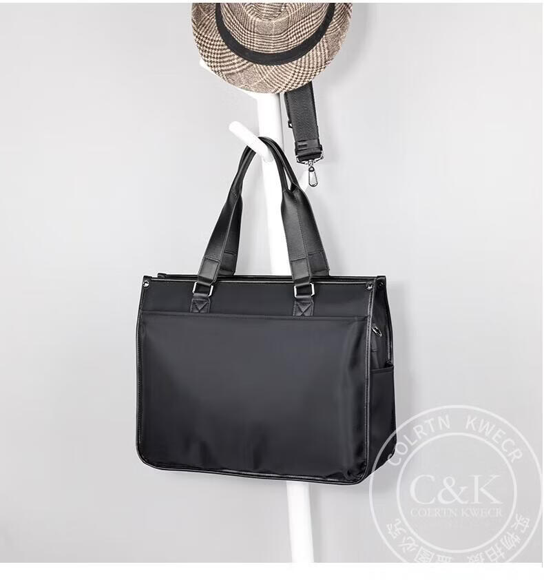 Colrtn Kwecr轻奢C K男士公文包商务出差手提包防水电脑包横款文件包奢侈品男 CK黑色(40*33*13cm) 16英寸
