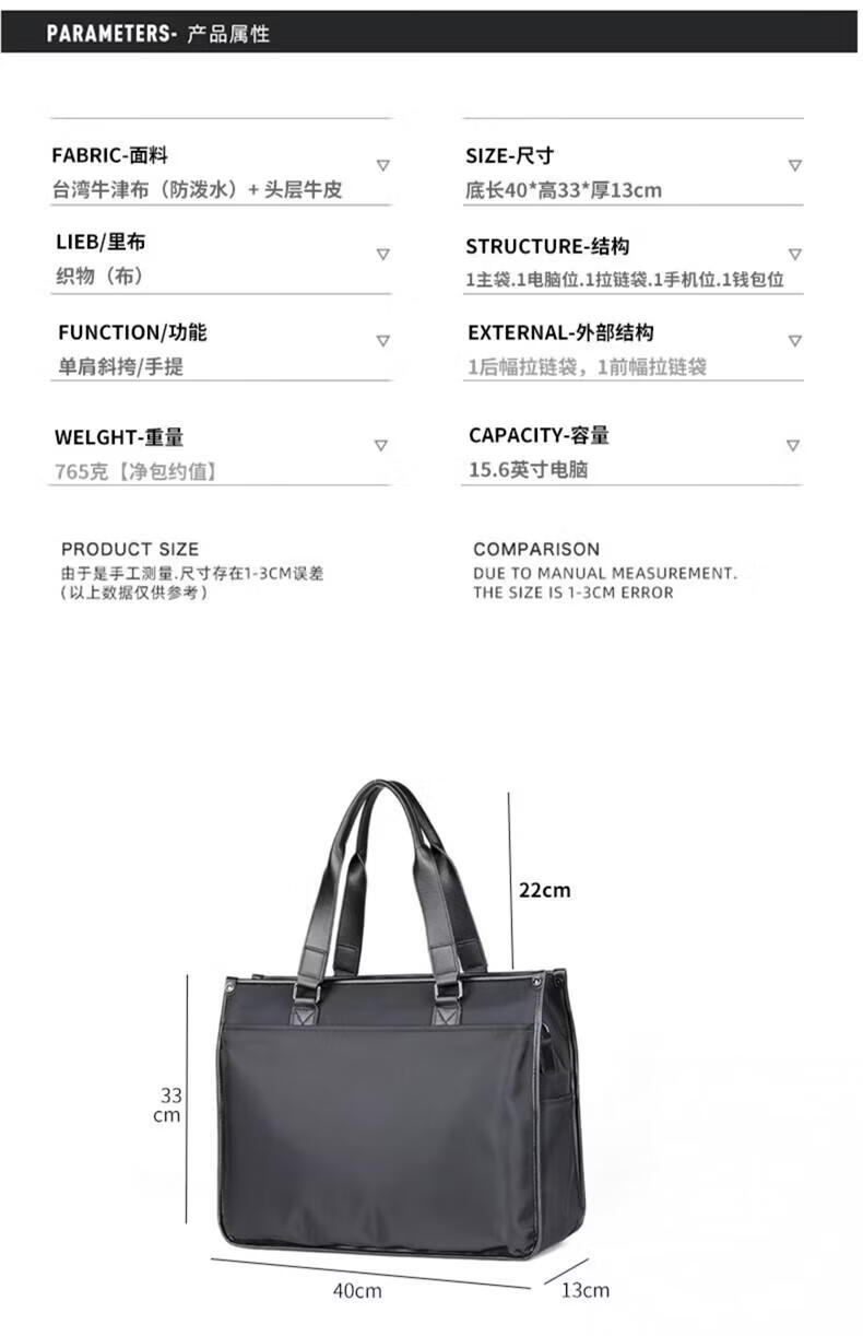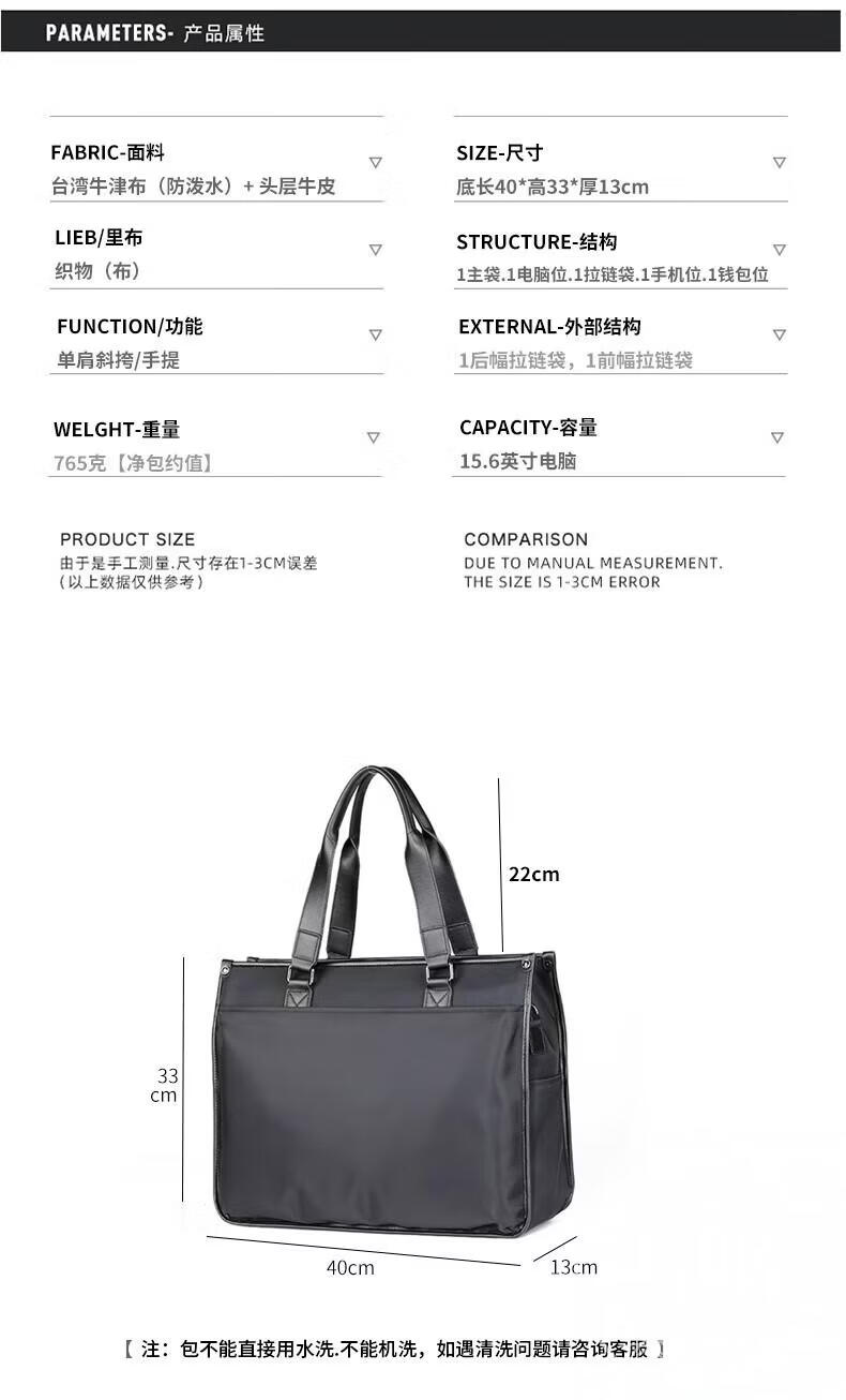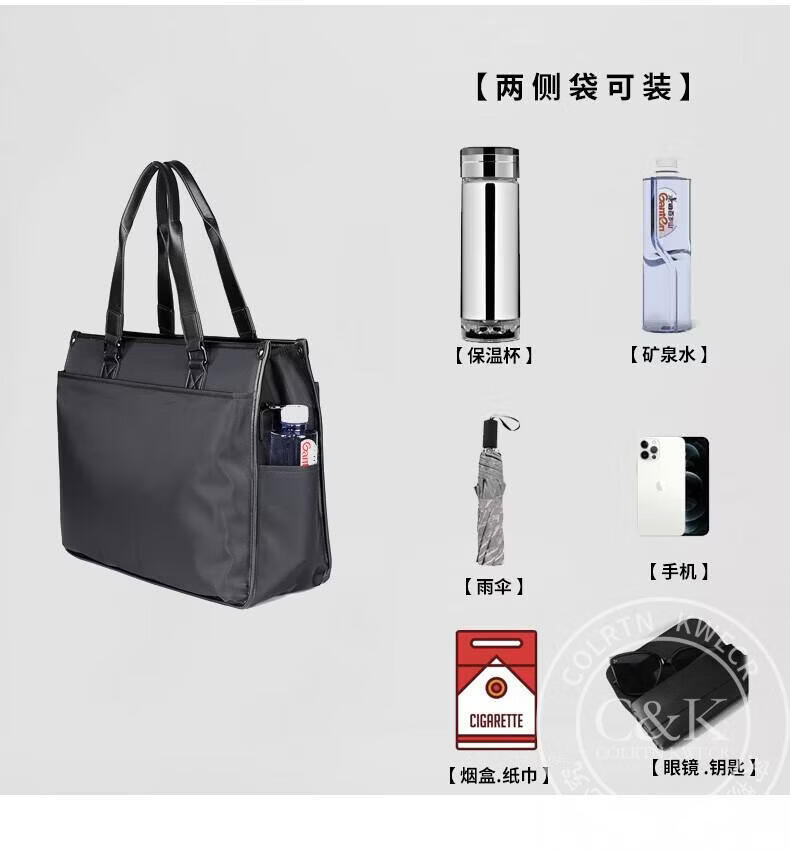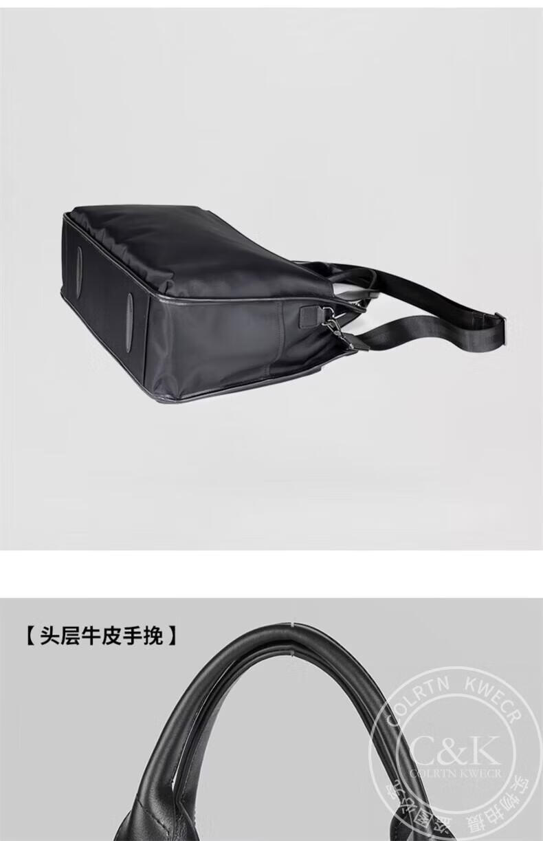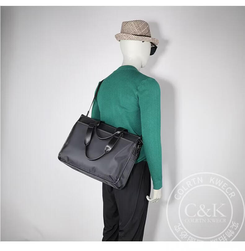 Colrtn Kwecr轻奢C K男士公文包商务出差手提包防水电脑包横款文件包奢侈品男 CK黑色(40*33*13cm) 16英寸