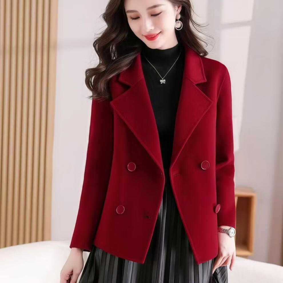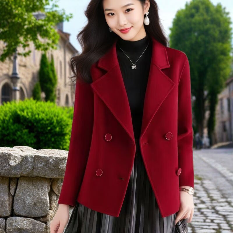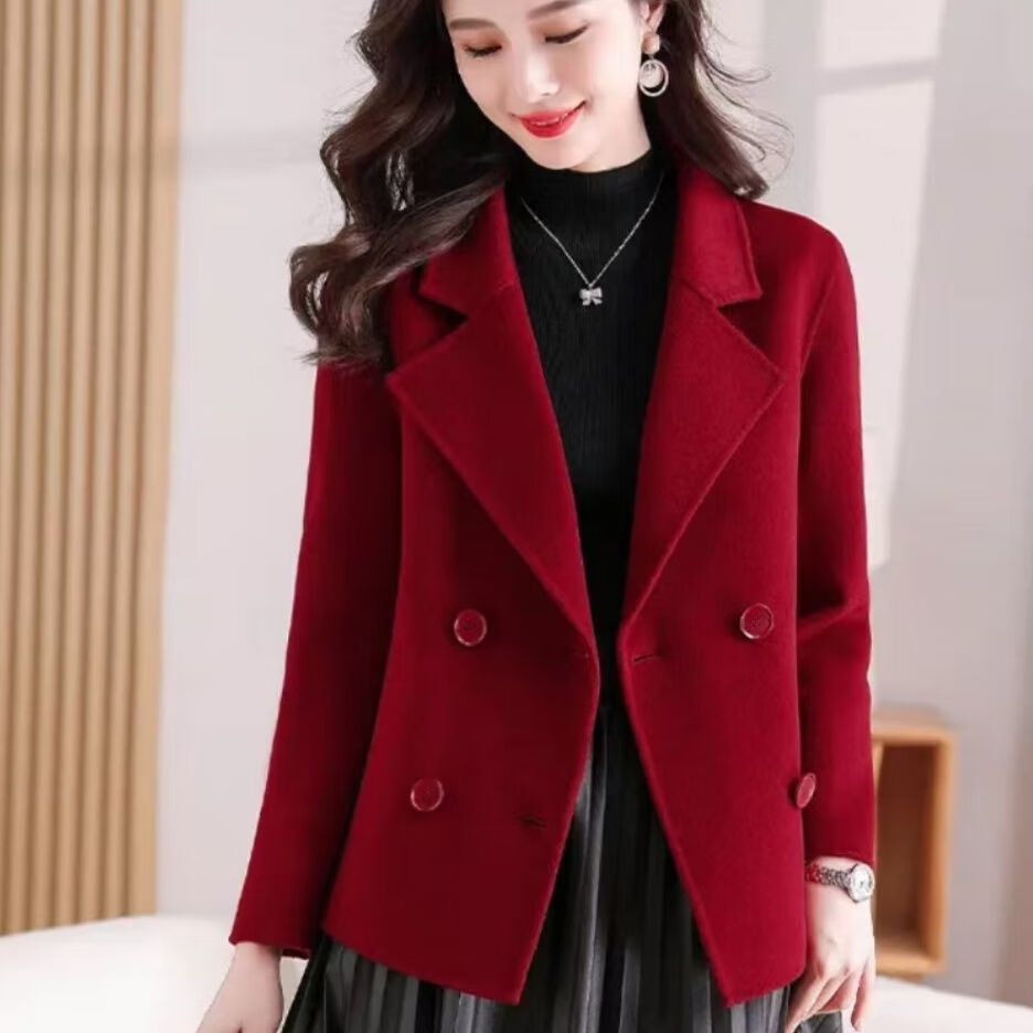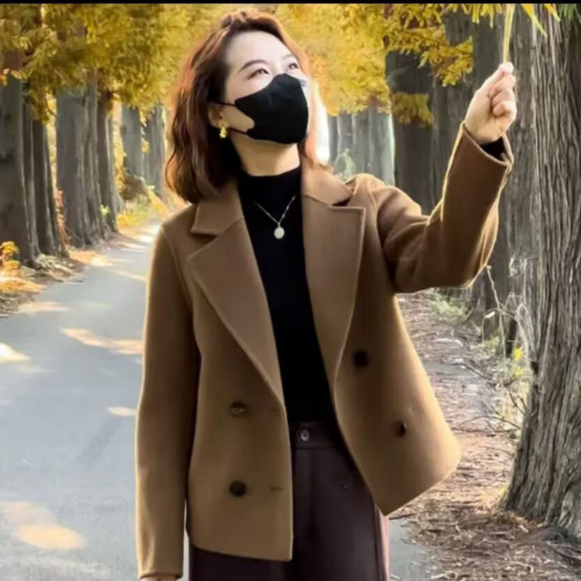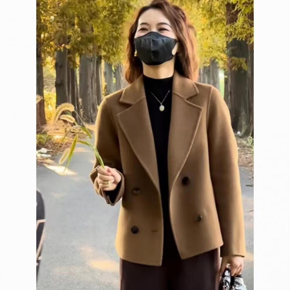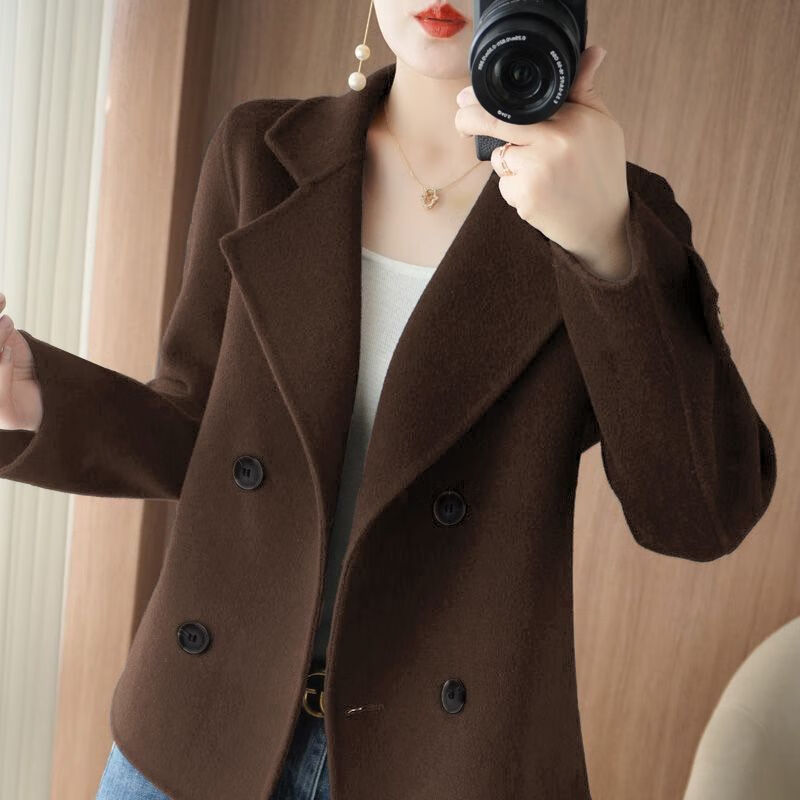 啄木鸟(TUCANO)短款毛呢大衣2025小个子秋季外套呢料双排扣女士秋冬外套毛呢大衣 咖色【没有口袋】 2XL 120-135斤