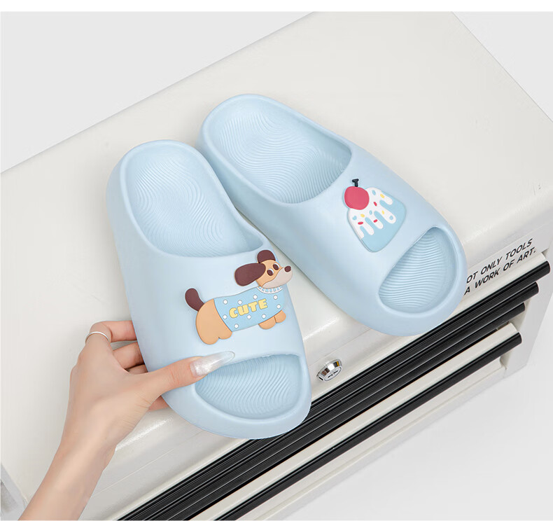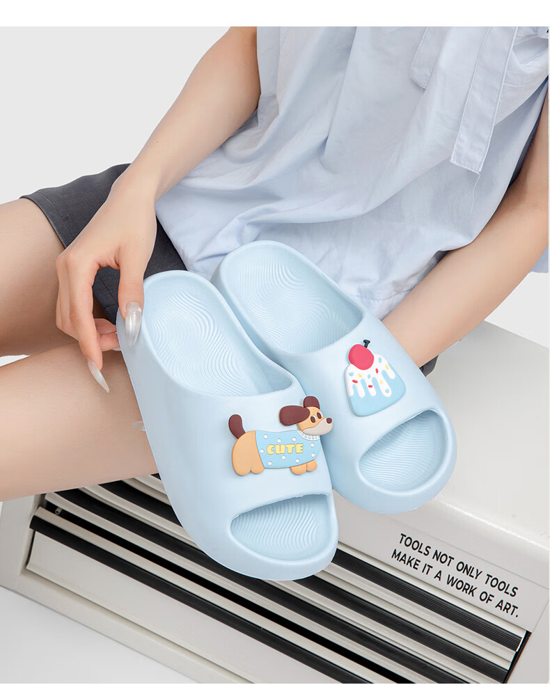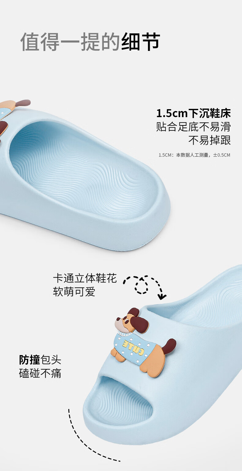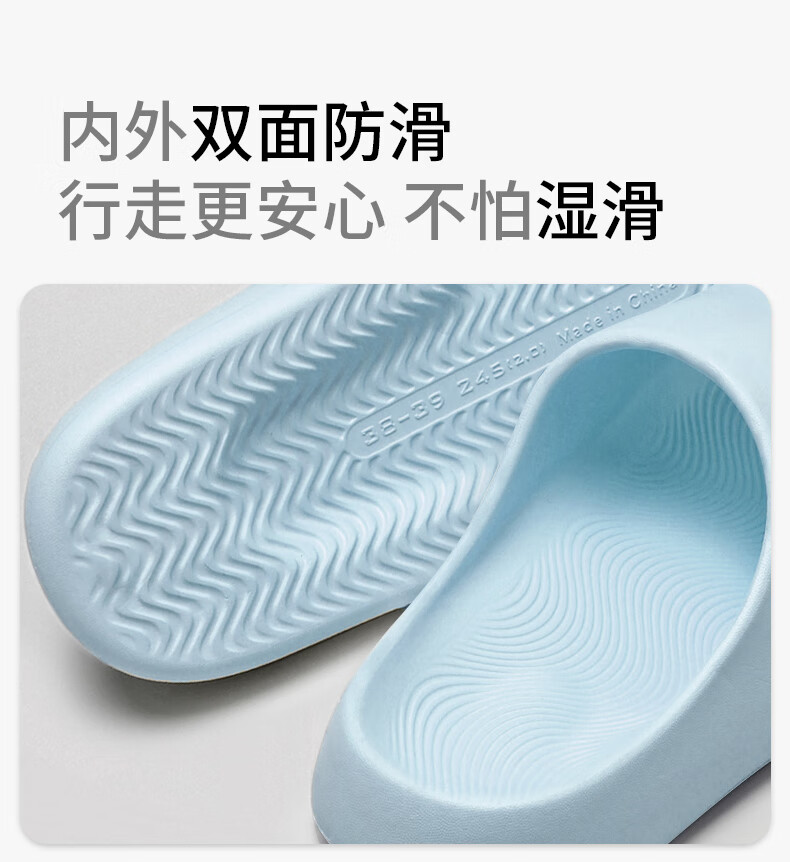 名创优品(MINISO)拖鞋女士夏季居家用踩屎感eva厚底浴室内洗澡防滑软弹情侣凉拖鞋 baby蓝 36-37 【适合35-36脚穿】