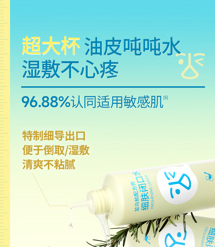 菜鸟和配方师细肤闭口水保湿祛痘去闭口控油舒缓爽肤水湿敷水 268ml*2瓶【囤货推荐更优惠】