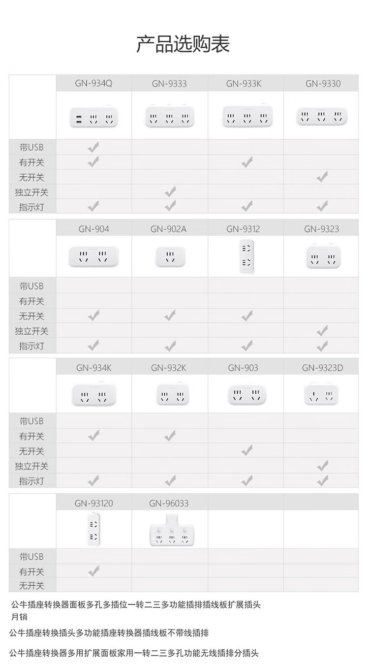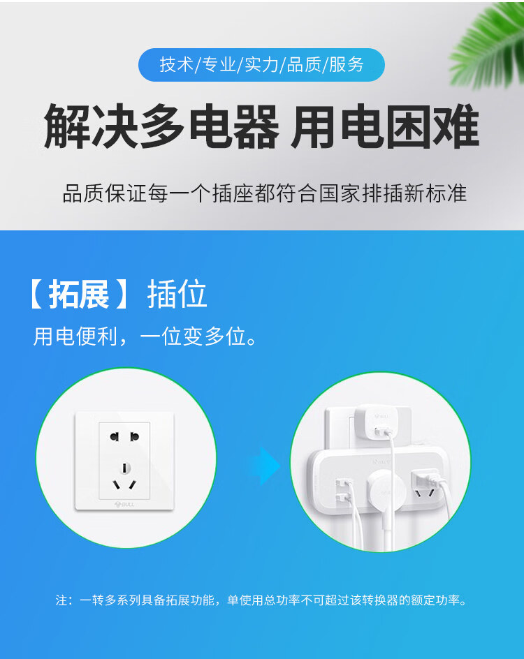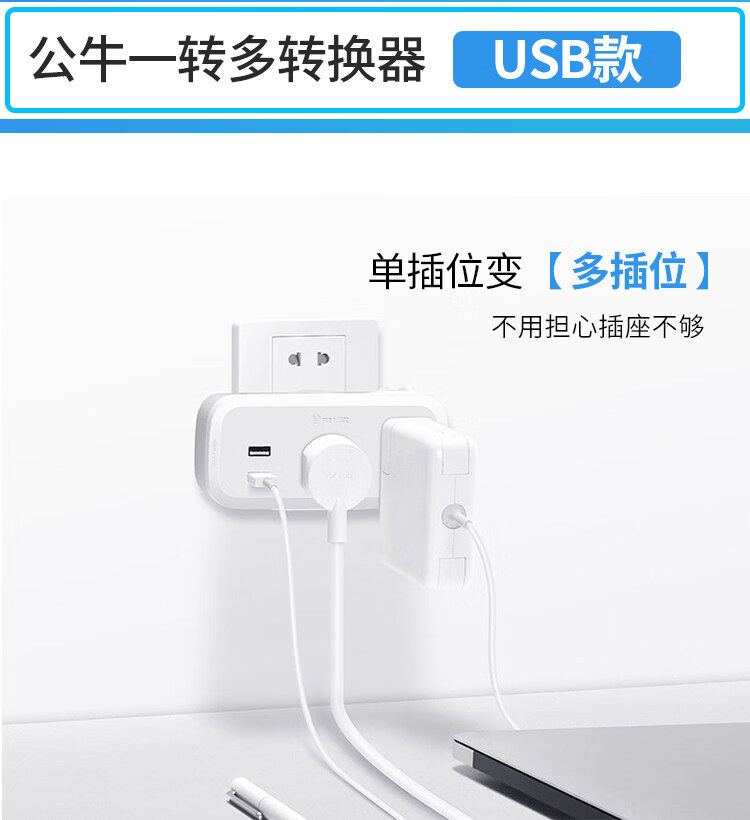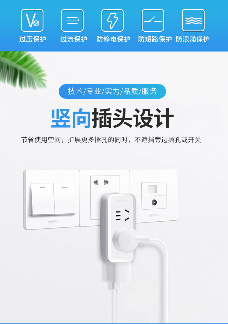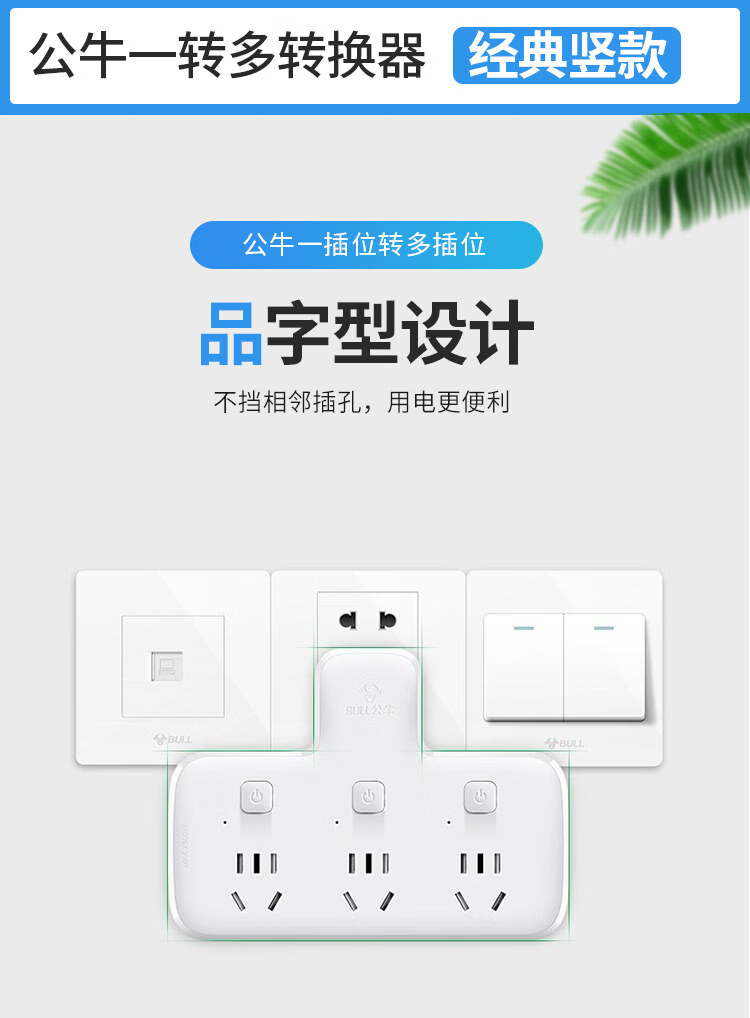 公牛(BULL)公牛插座转换器多功能插座面板电源插头转换器插线板多孔无线插排 公牛97333Y-夜灯一转六