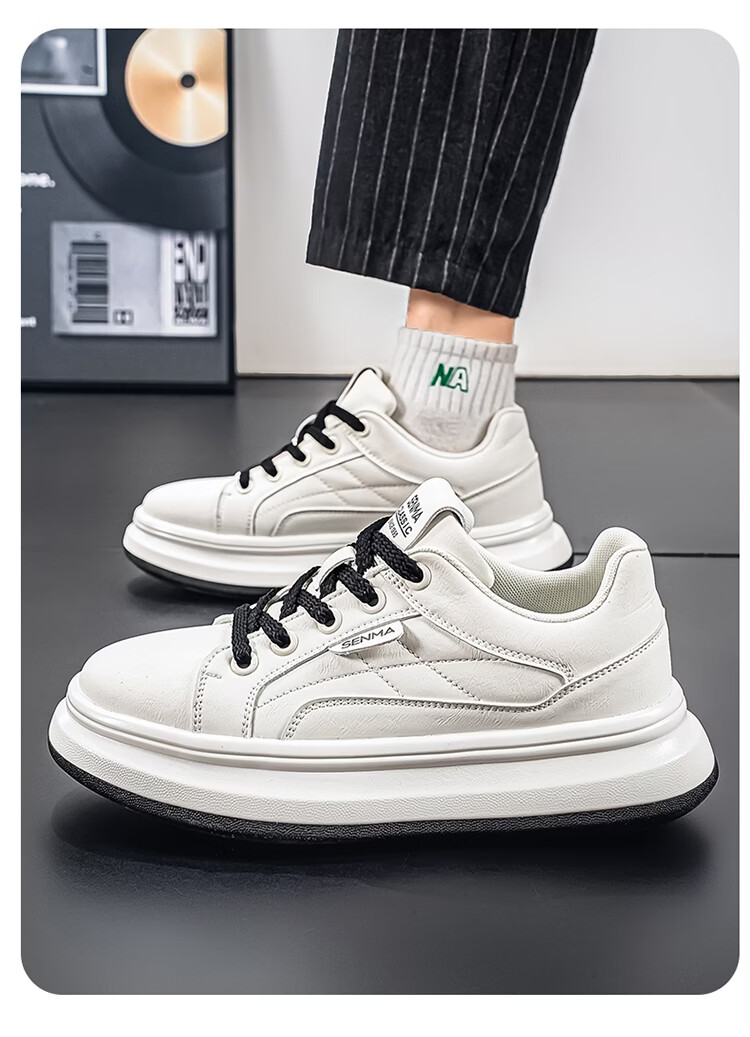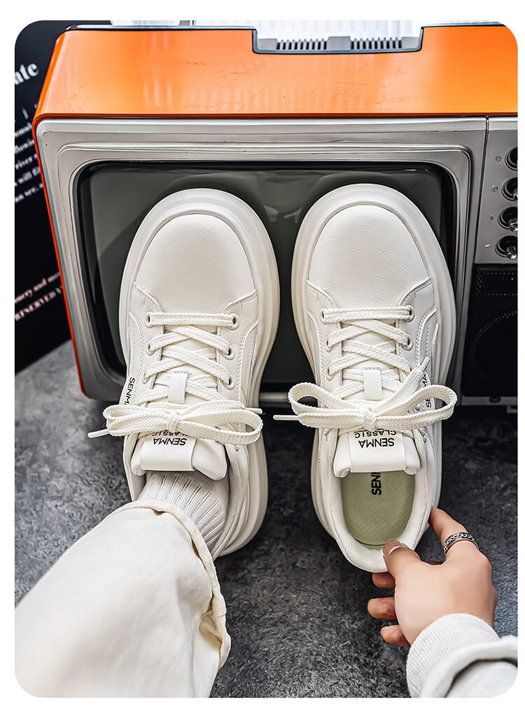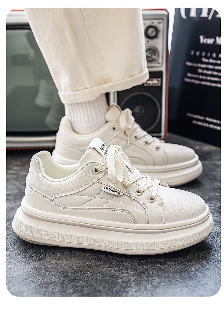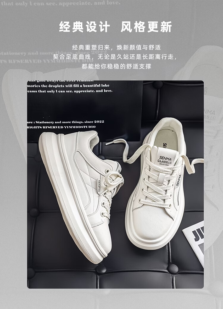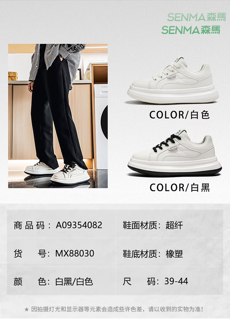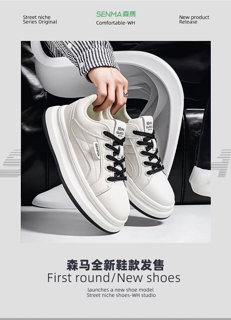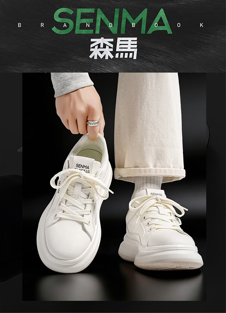 森馬男鞋2026新款夏季潮流百搭低帮板鞋男士运动休闲皮面厚底小白潮鞋 白色【基础款】 39 标准码数/现货秒发