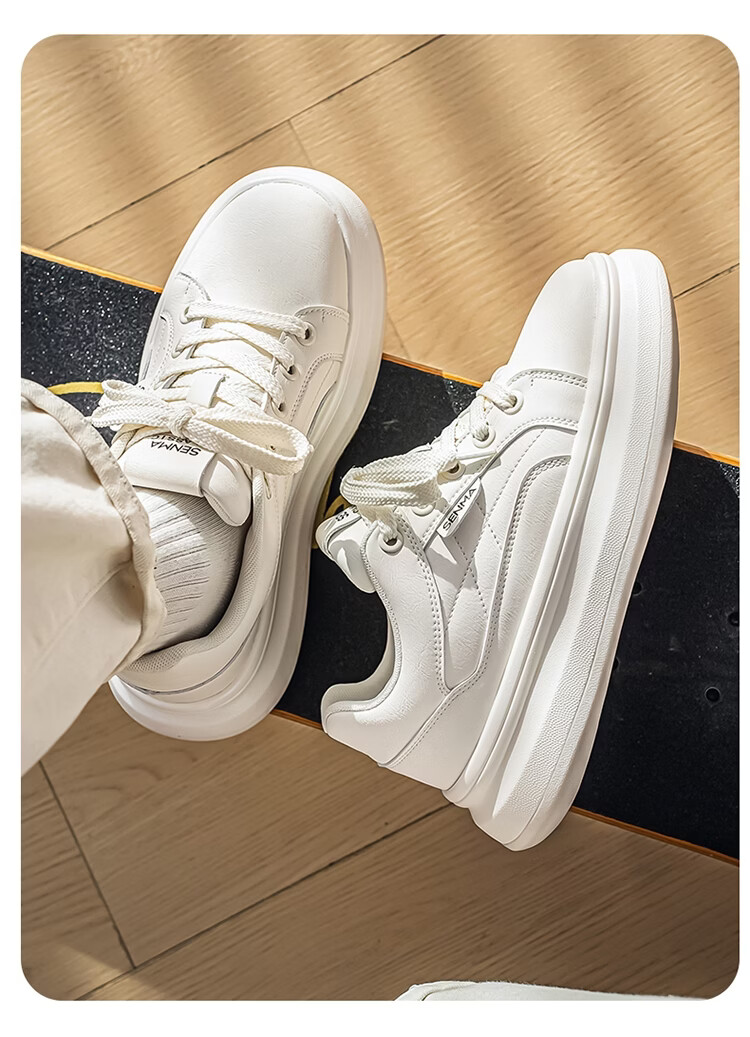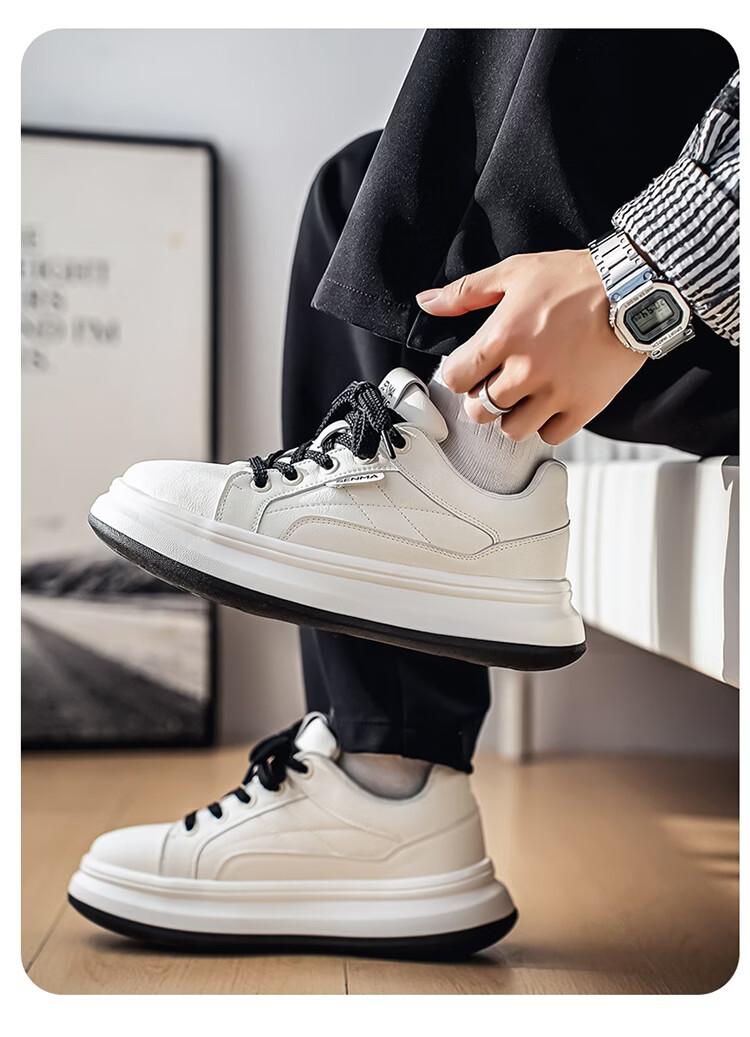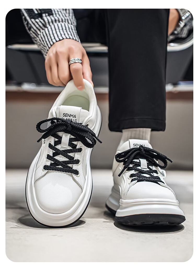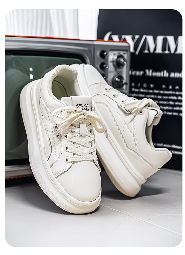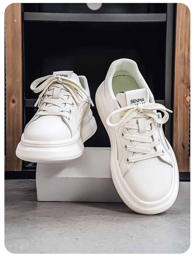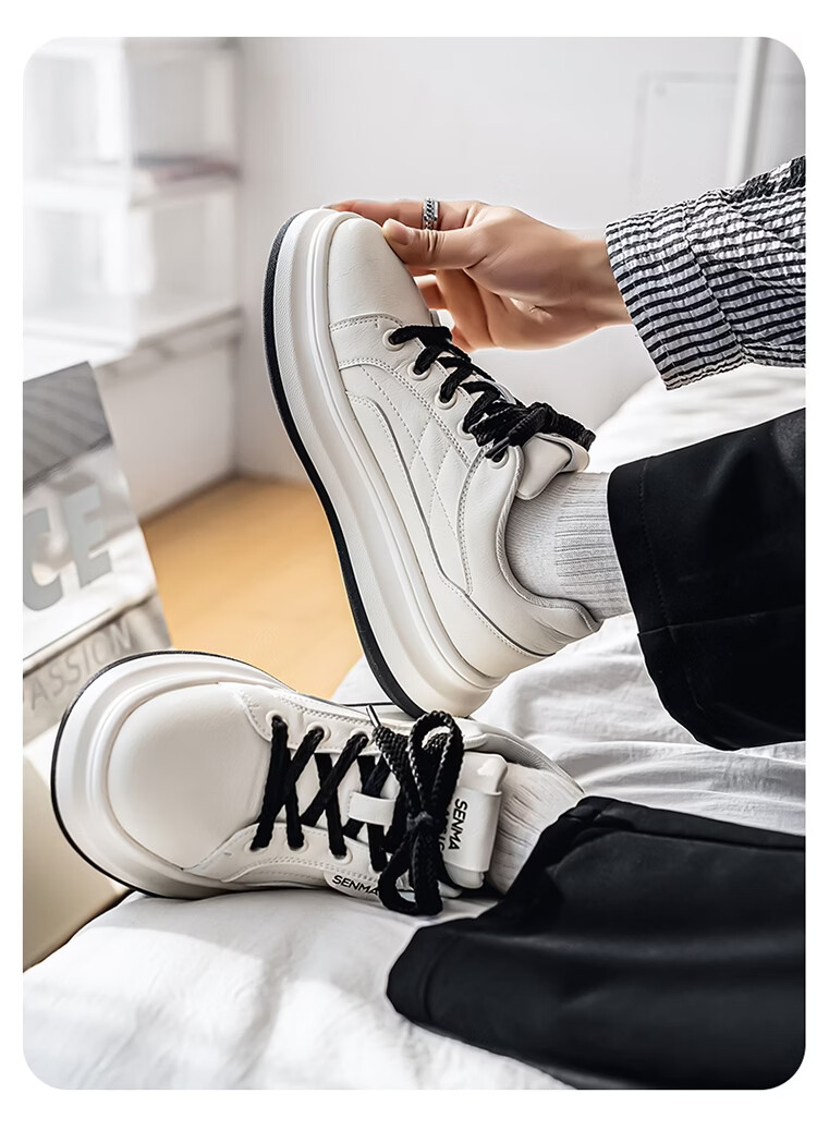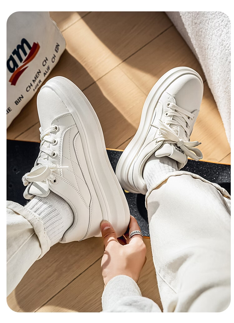森馬男鞋2026新款夏季潮流百搭低帮板鞋男士运动休闲皮面厚底小白潮鞋 白色【基础款】 39 标准码数/现货秒发