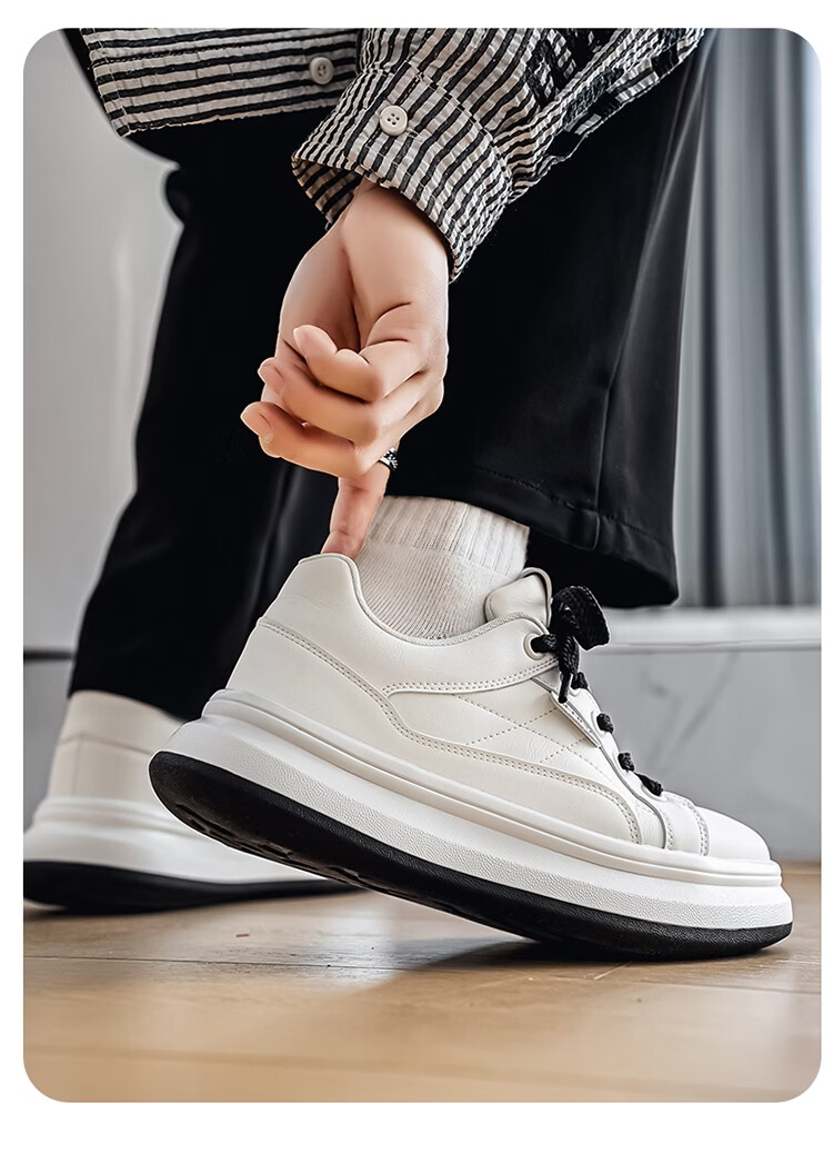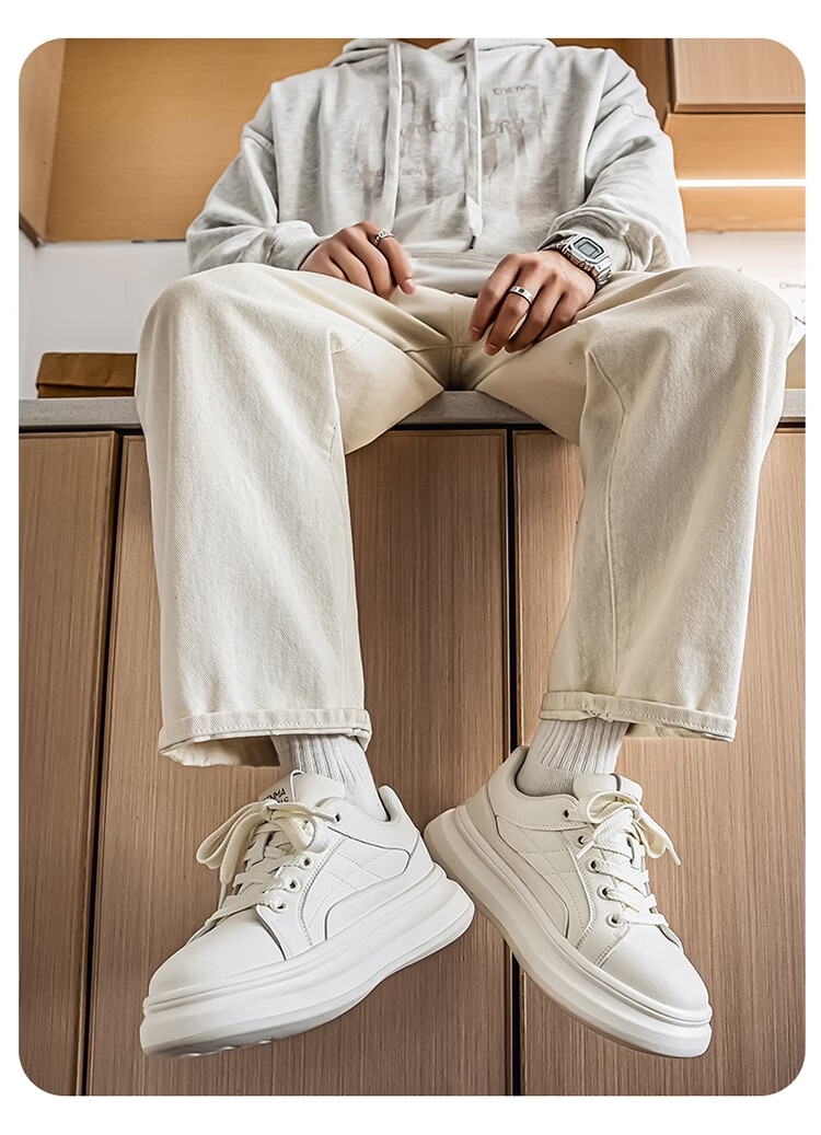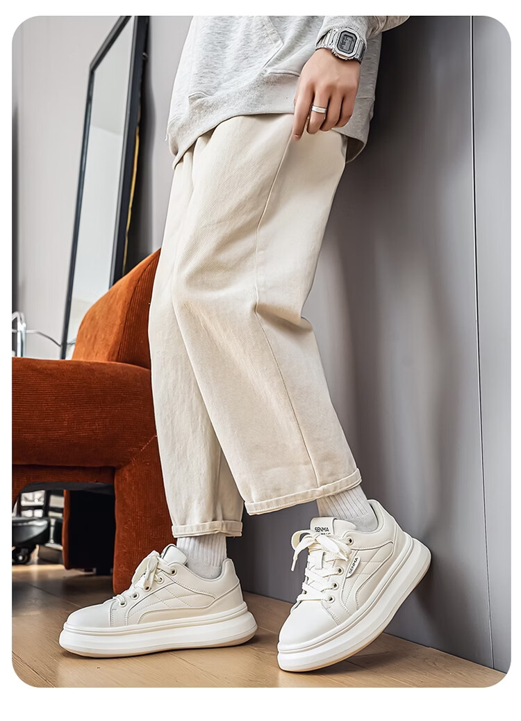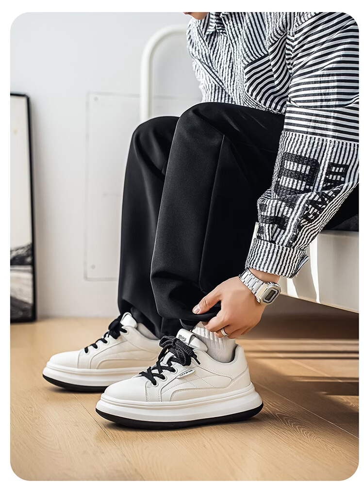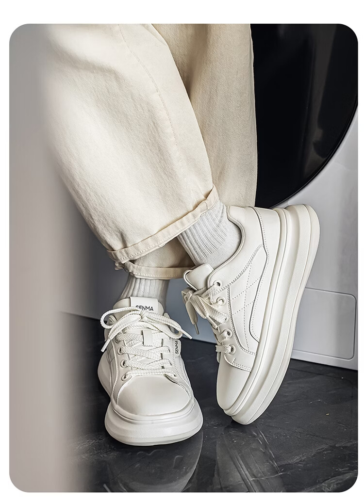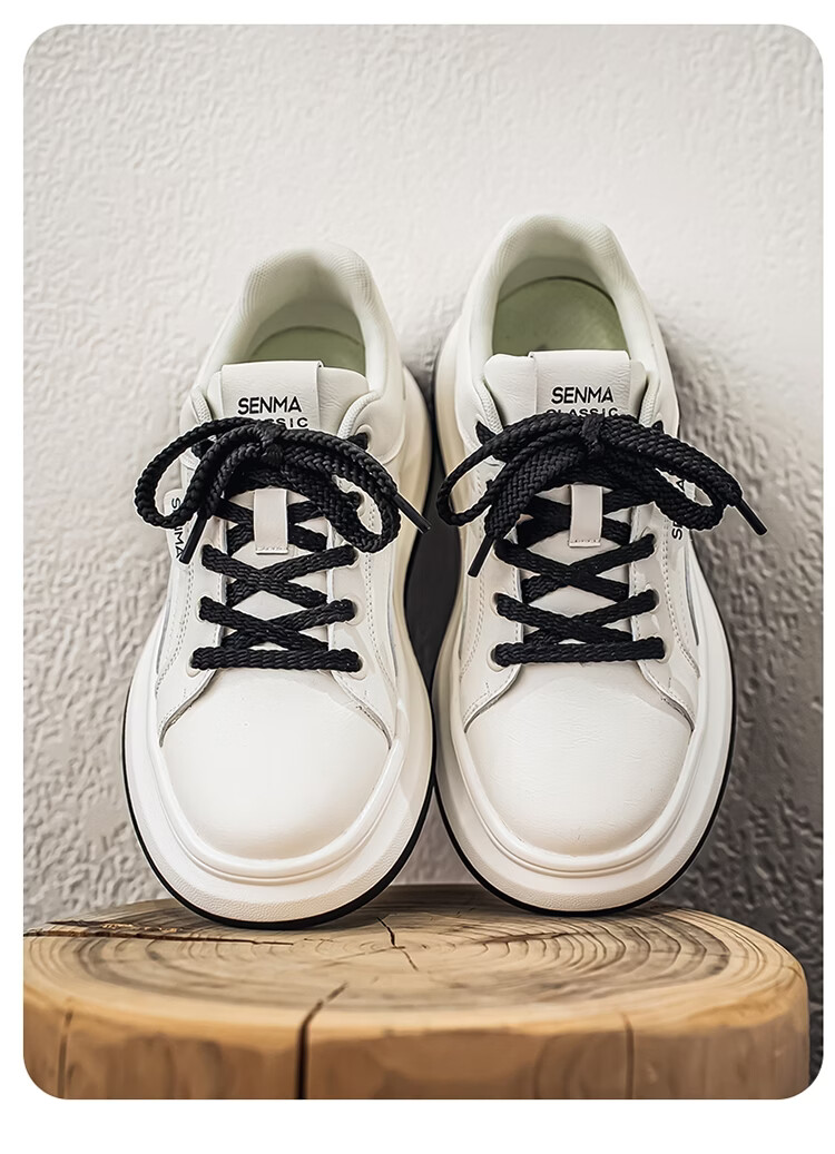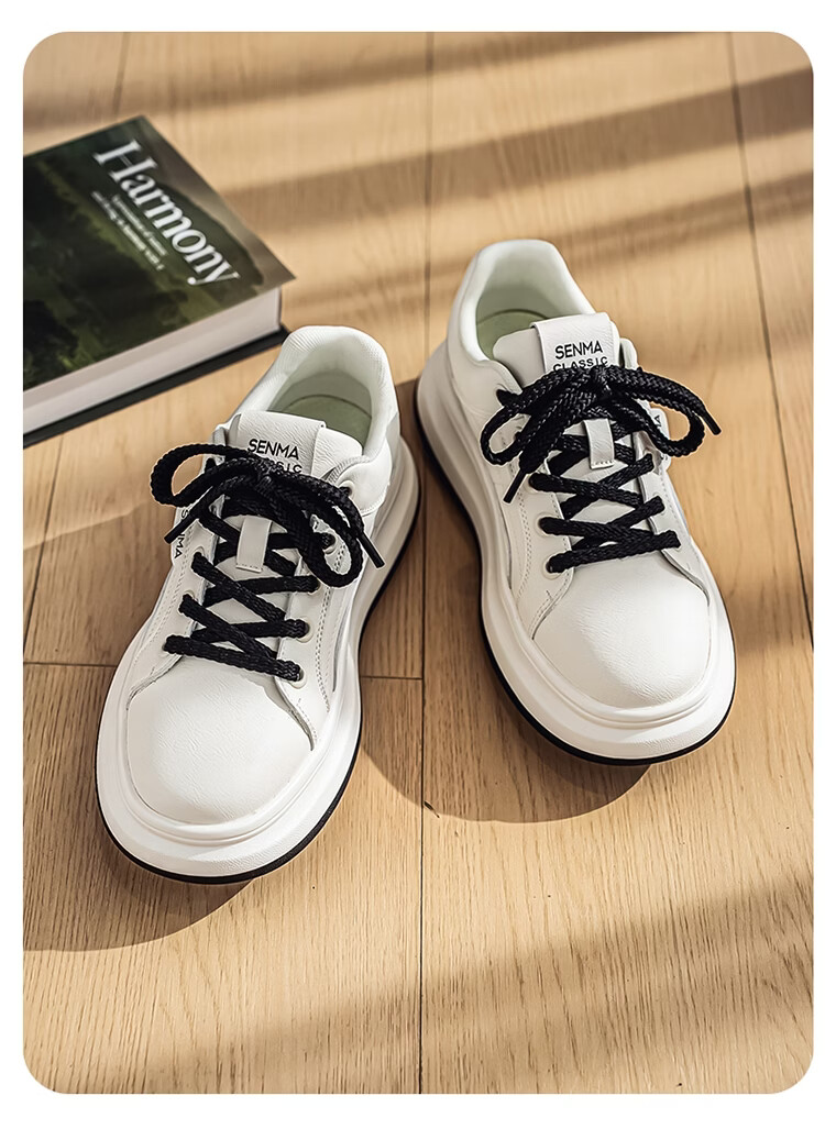 森馬男鞋2026新款夏季潮流百搭低帮板鞋男士运动休闲皮面厚底小白潮鞋 白色【基础款】 39 标准码数/现货秒发