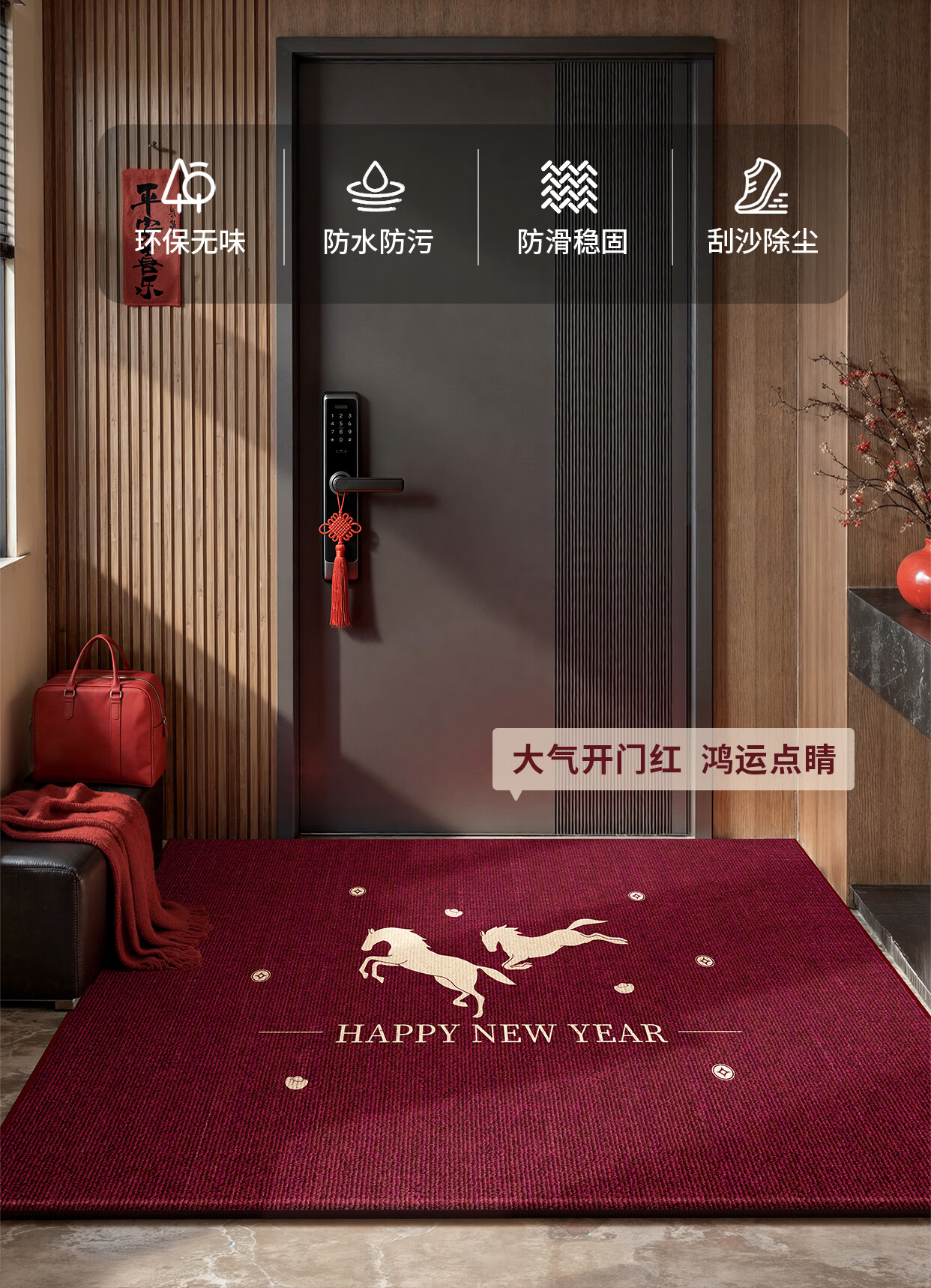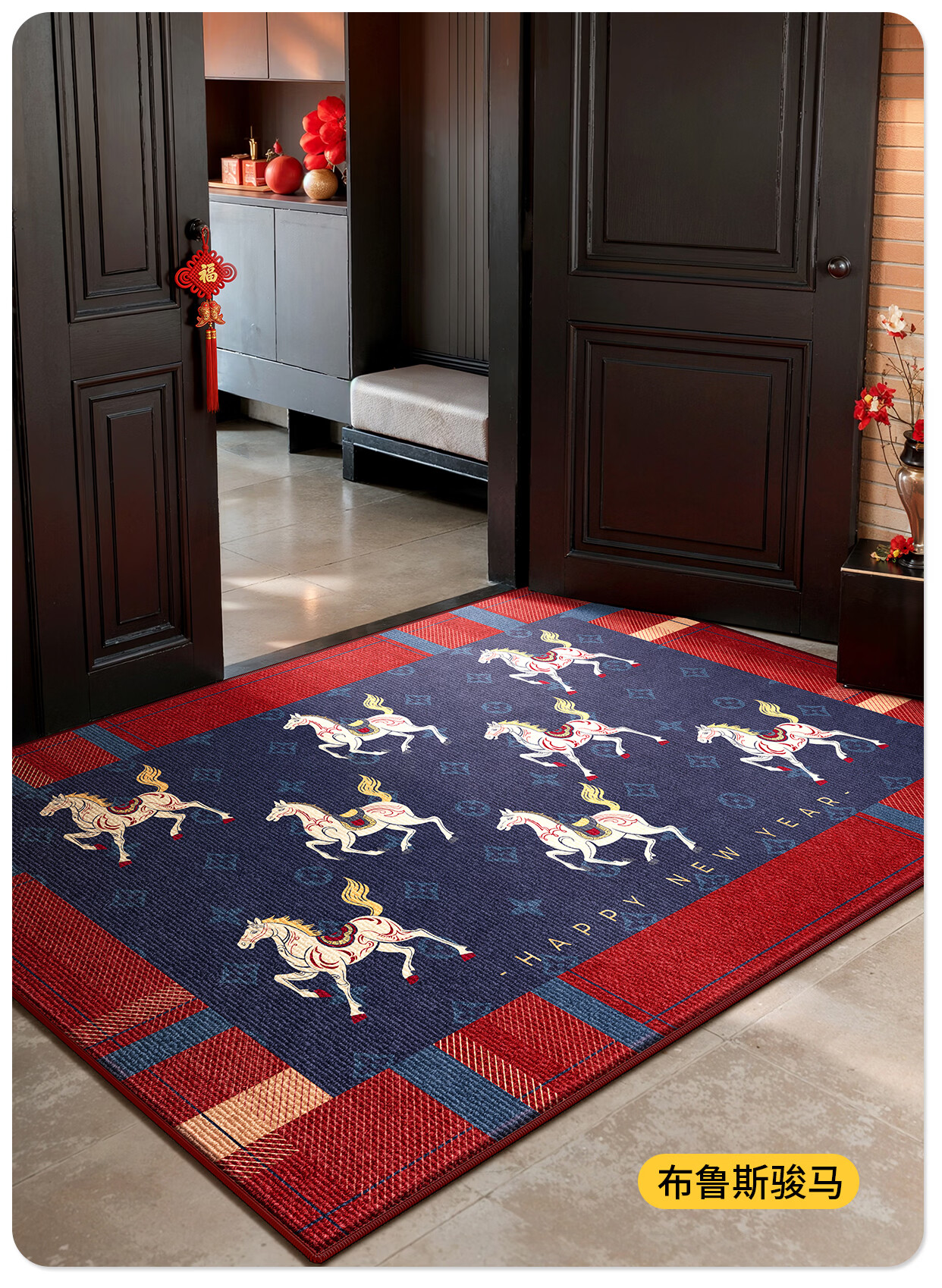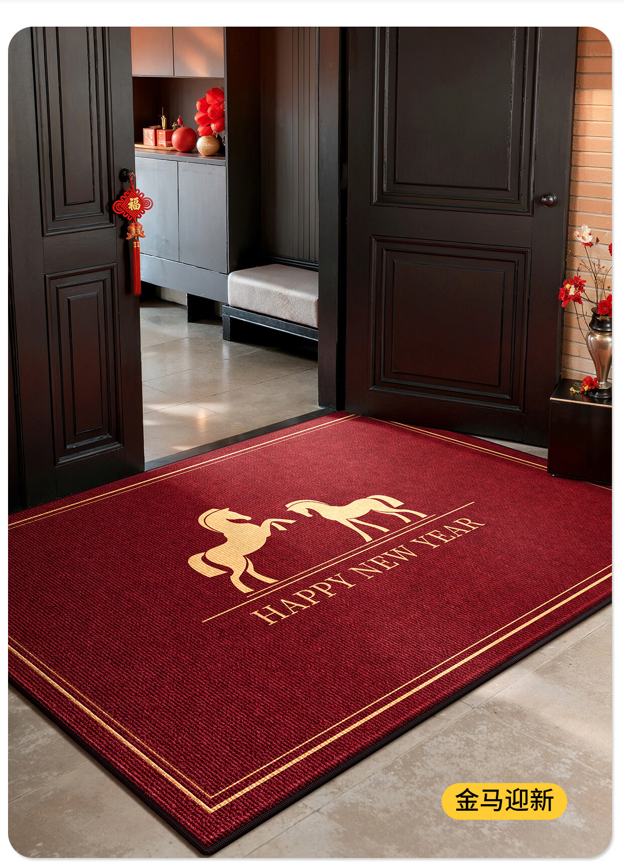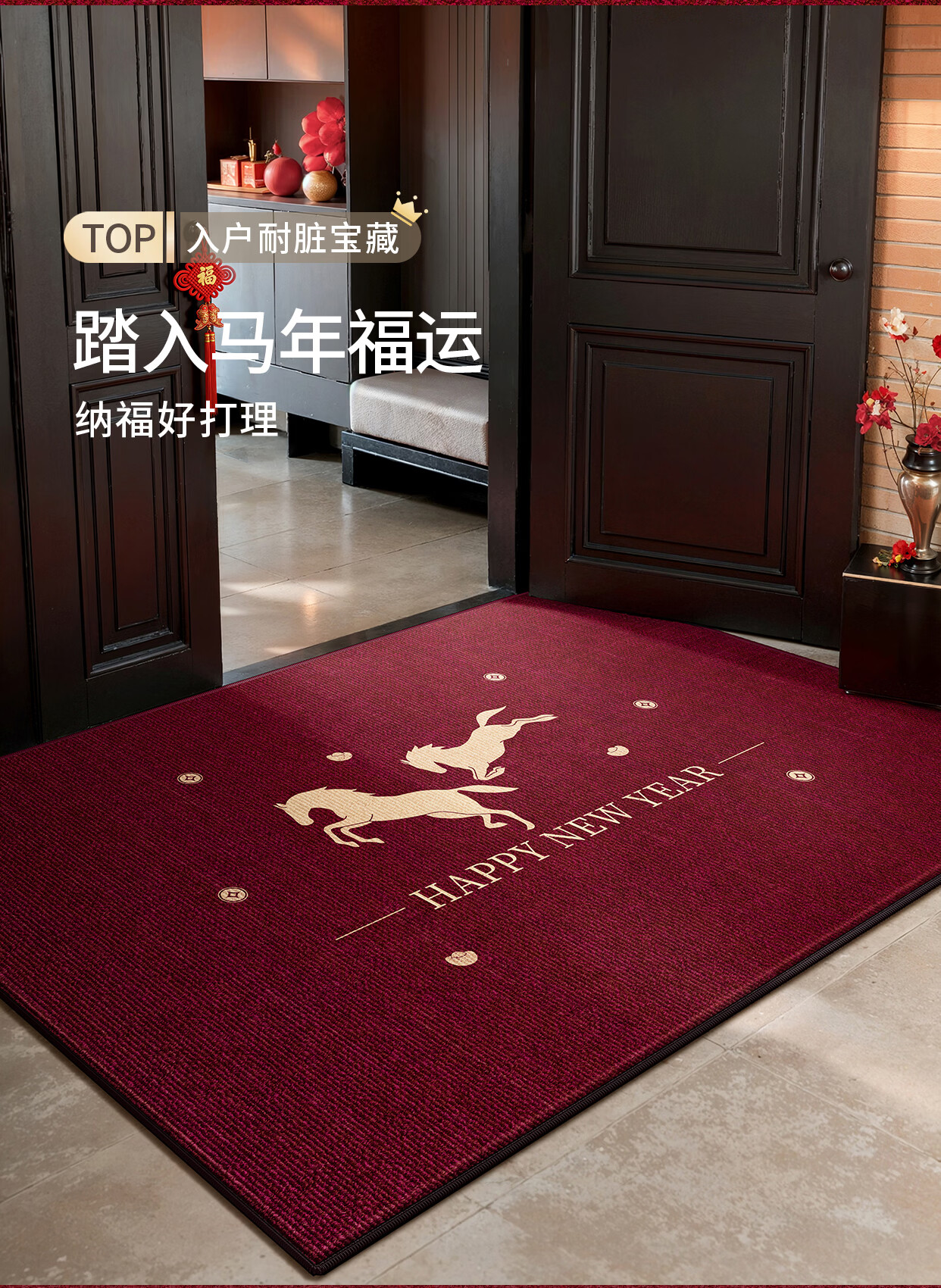 Y U-LIVE入户门地垫2026年新款马年防滑进门门口新年喜庆红色玄关耐脏 圈绒棉布-金马运财 定制请联系客服【享优惠】