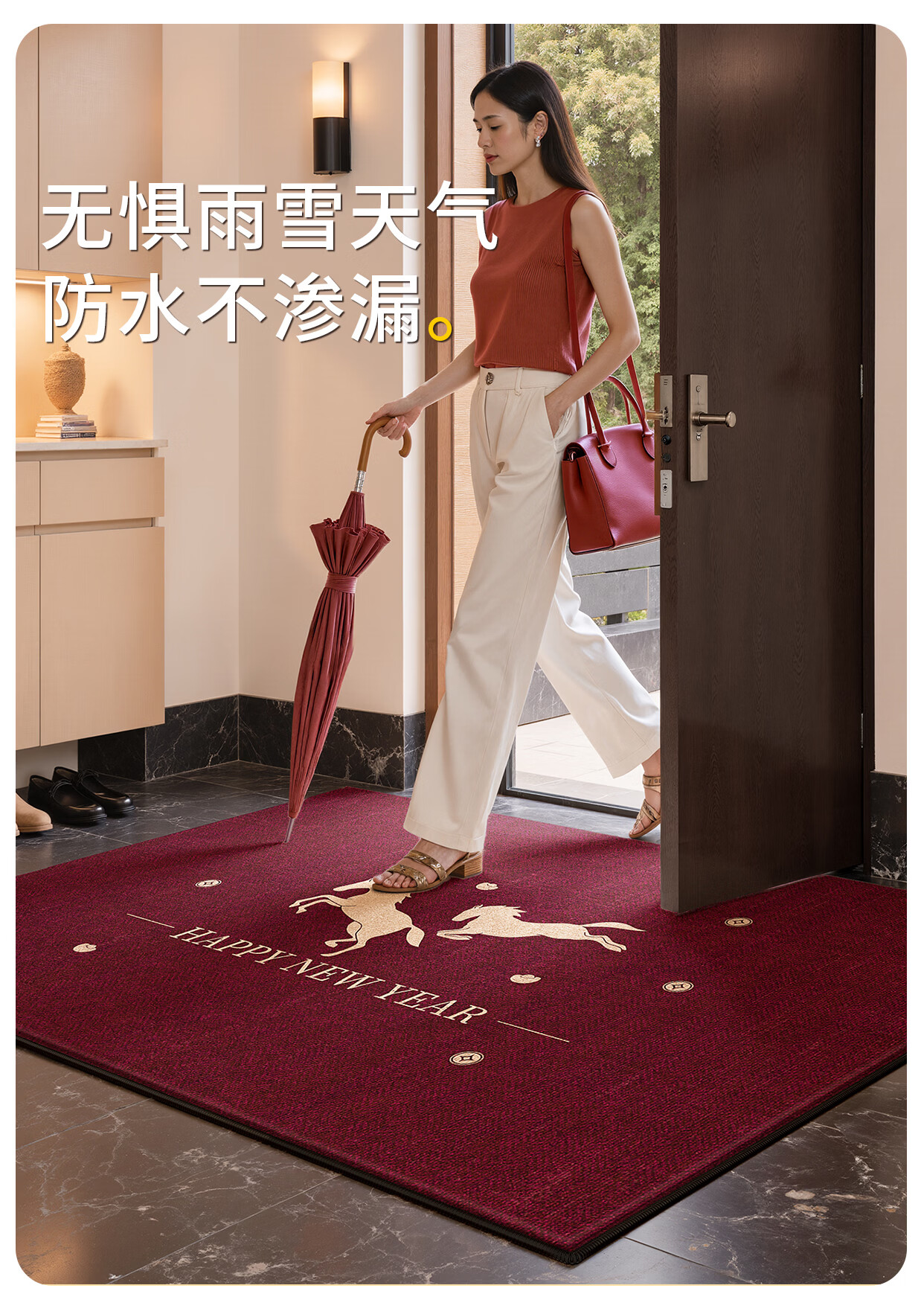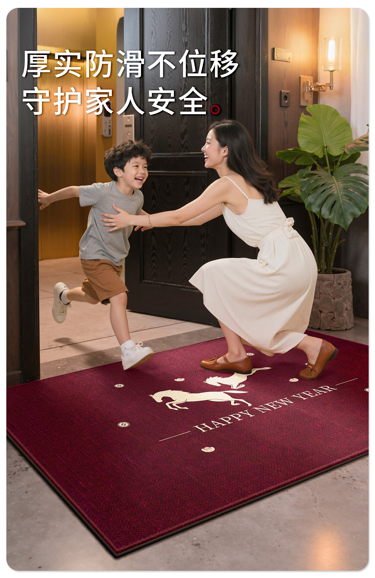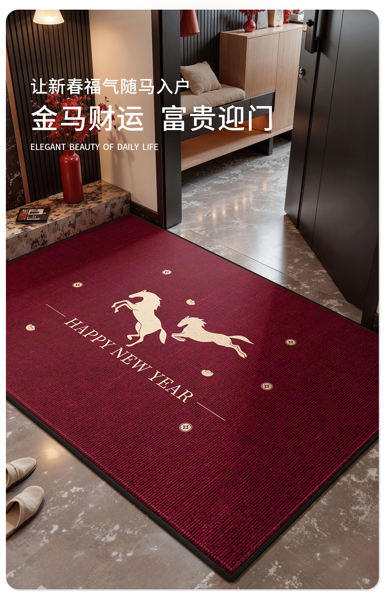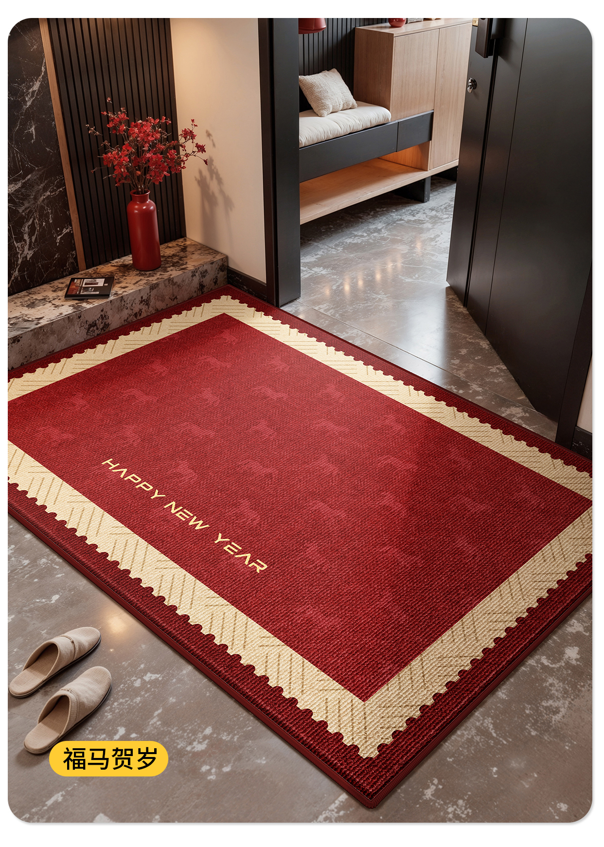 Y U-LIVE入户门地垫2026年新款马年防滑进门门口新年喜庆红色玄关耐脏 圈绒棉布-金马运财 定制请联系客服【享优惠】