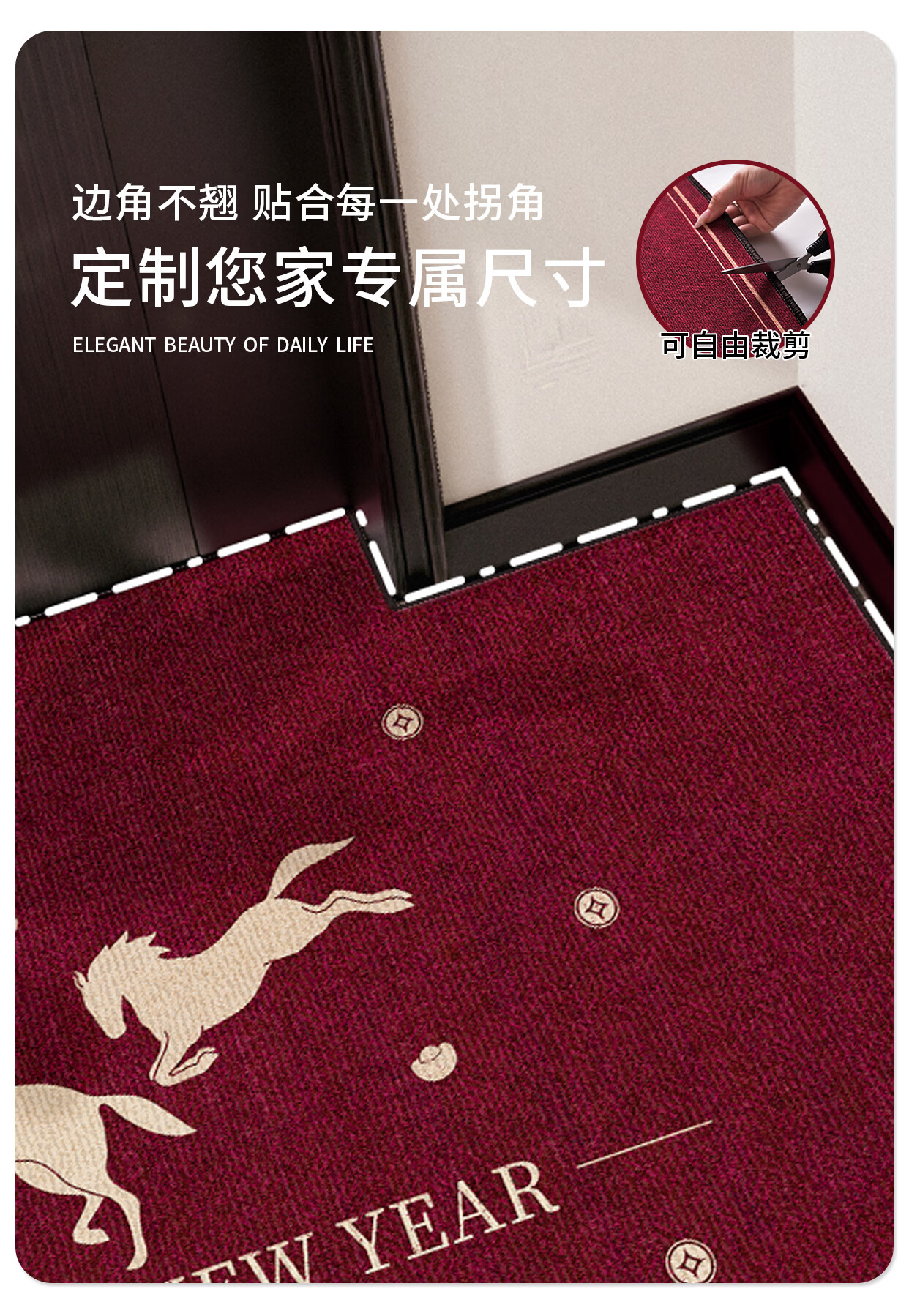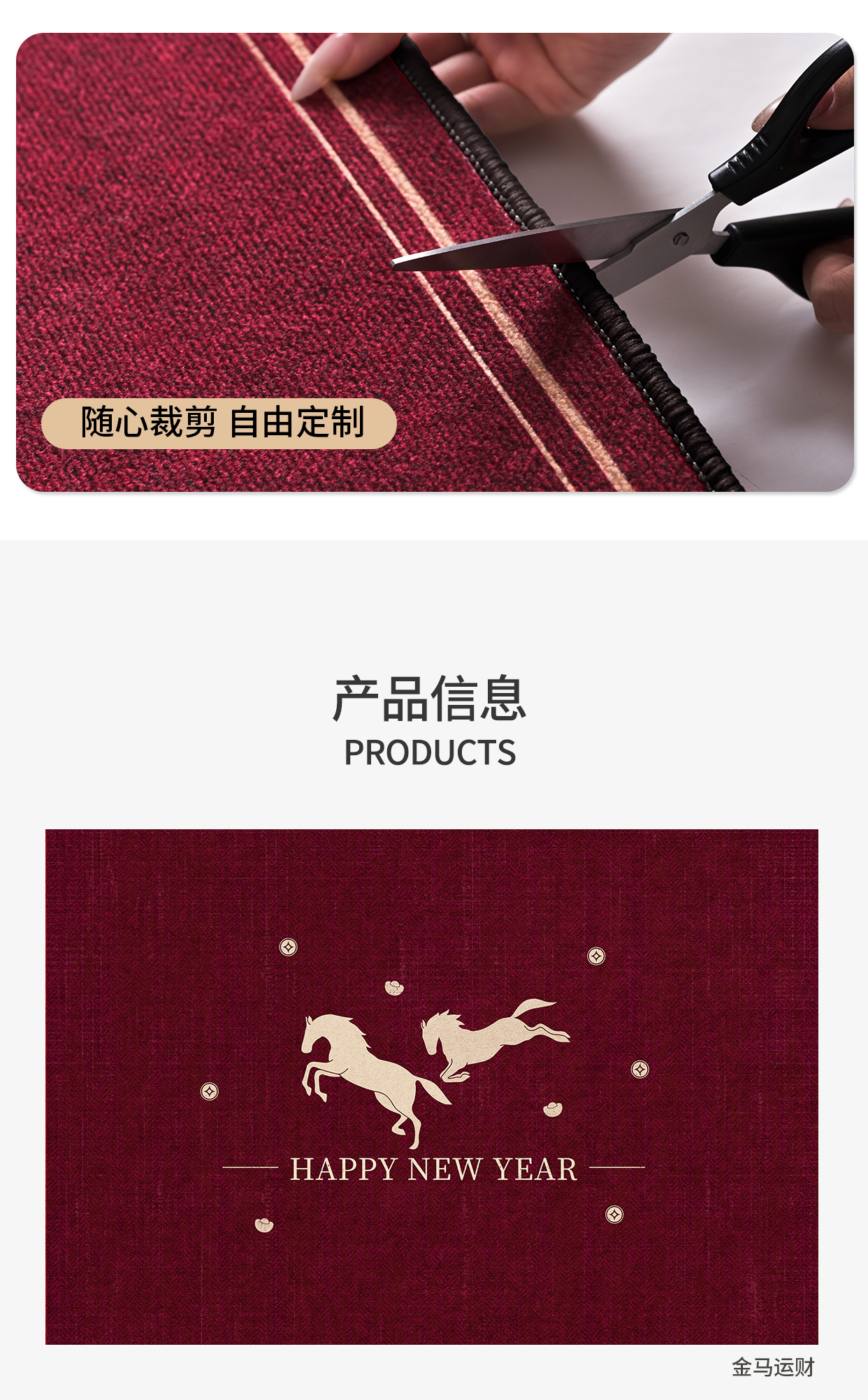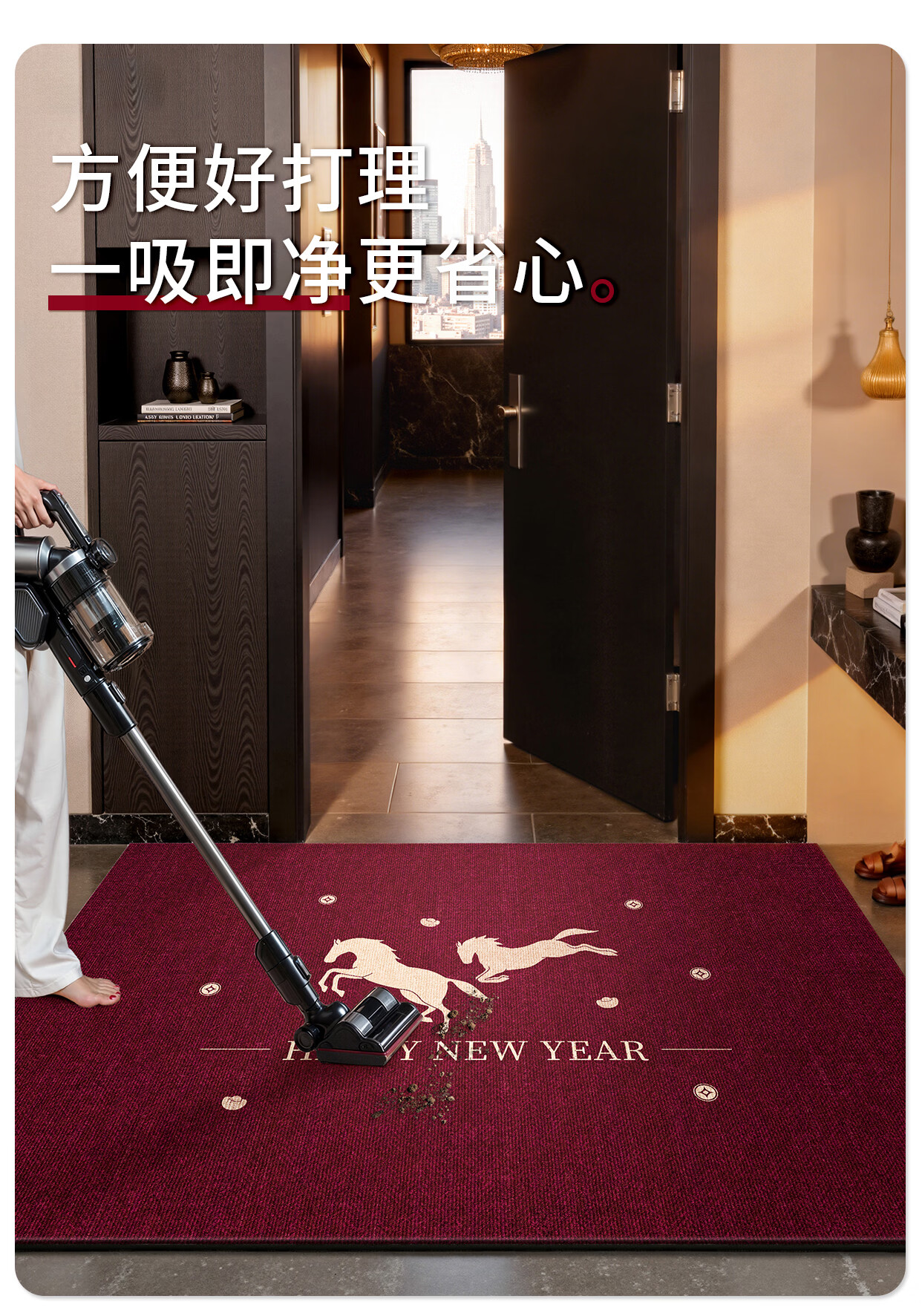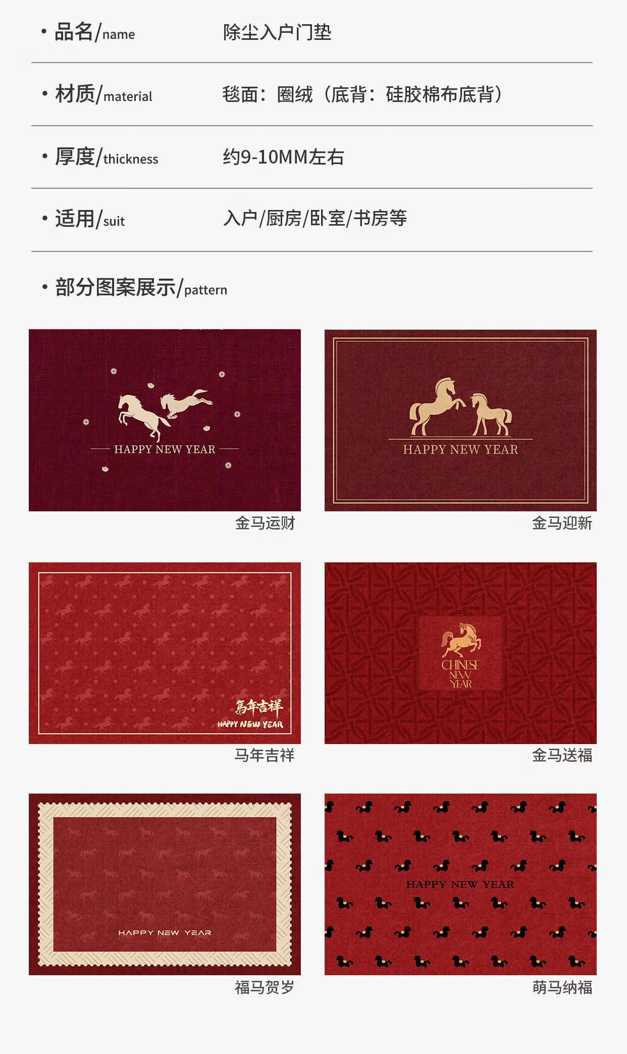 Y U-LIVE入户门地垫2026年新款马年防滑进门门口新年喜庆红色玄关耐脏 圈绒棉布-金马运财 定制请联系客服【享优惠】