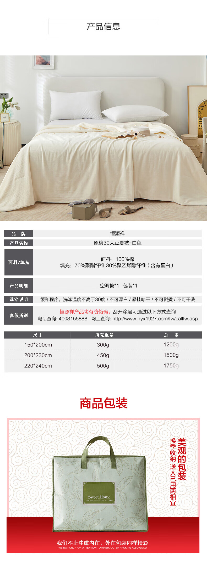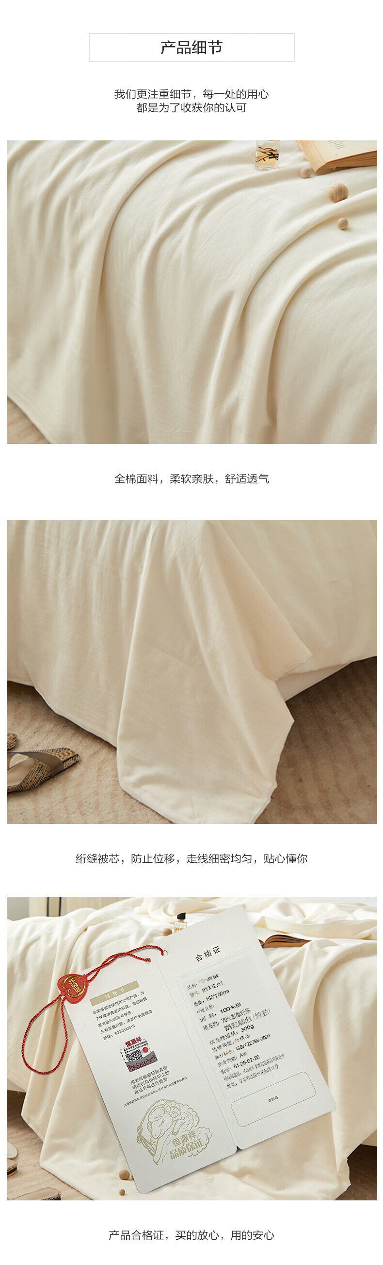 恒源祥被子大豆空调被A类柔软透气简约纯色学生宿舍居家单双人春夏被 白色 150cm*200cm