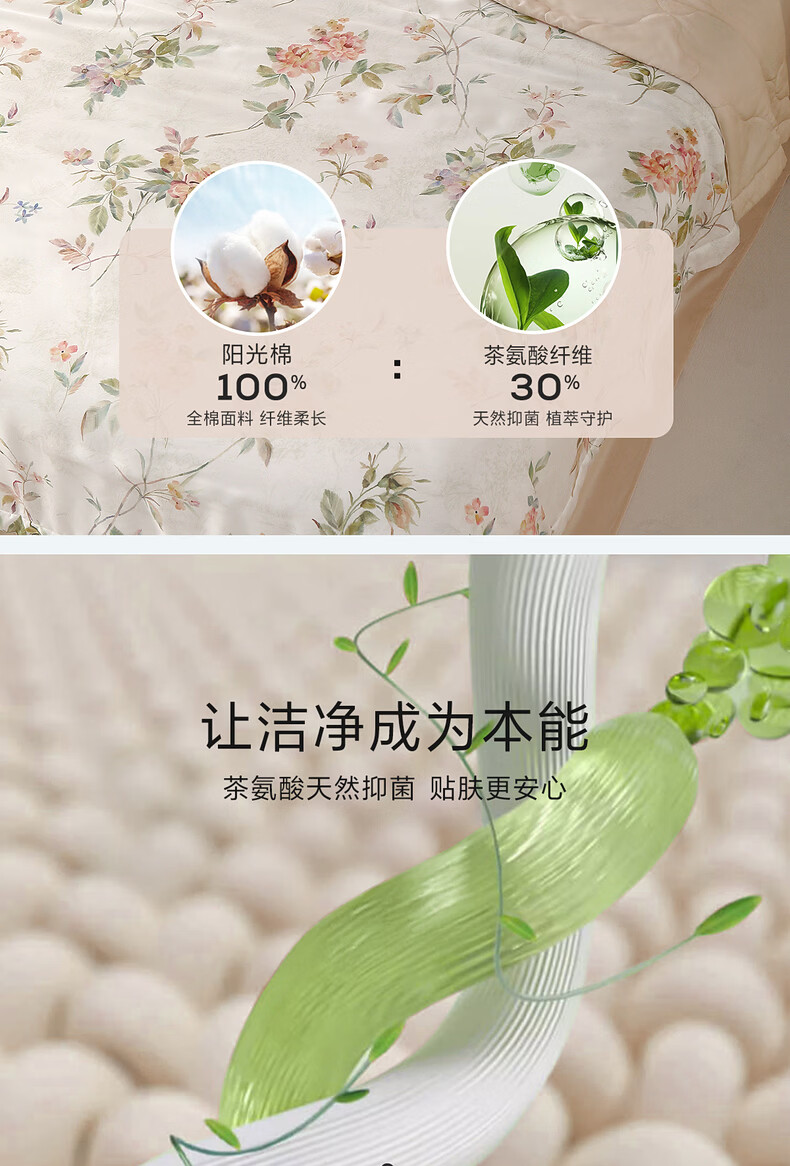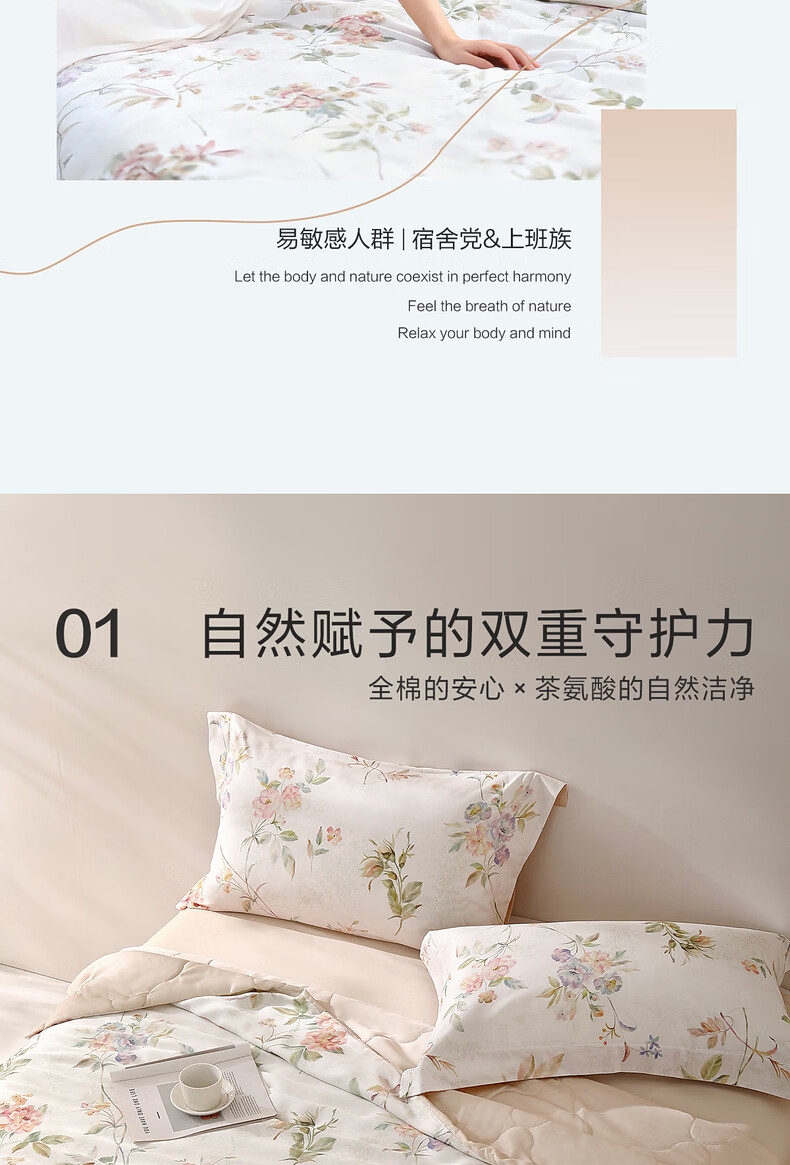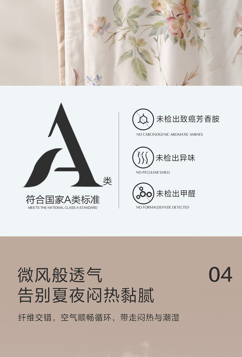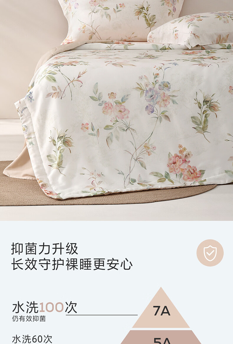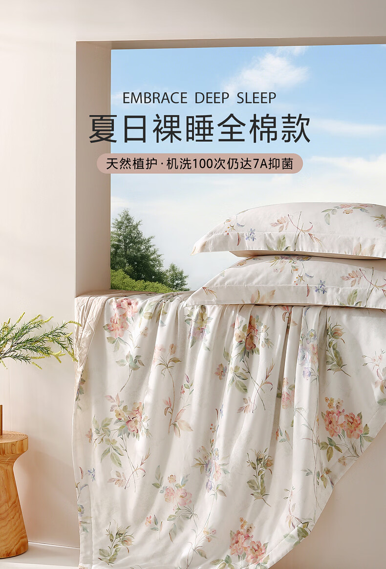 水星家纺夏被空调被A类茶氨酸抗菌居家宿舍空调被26新款 繁花·一梦全棉夏被 150cm*200cm
