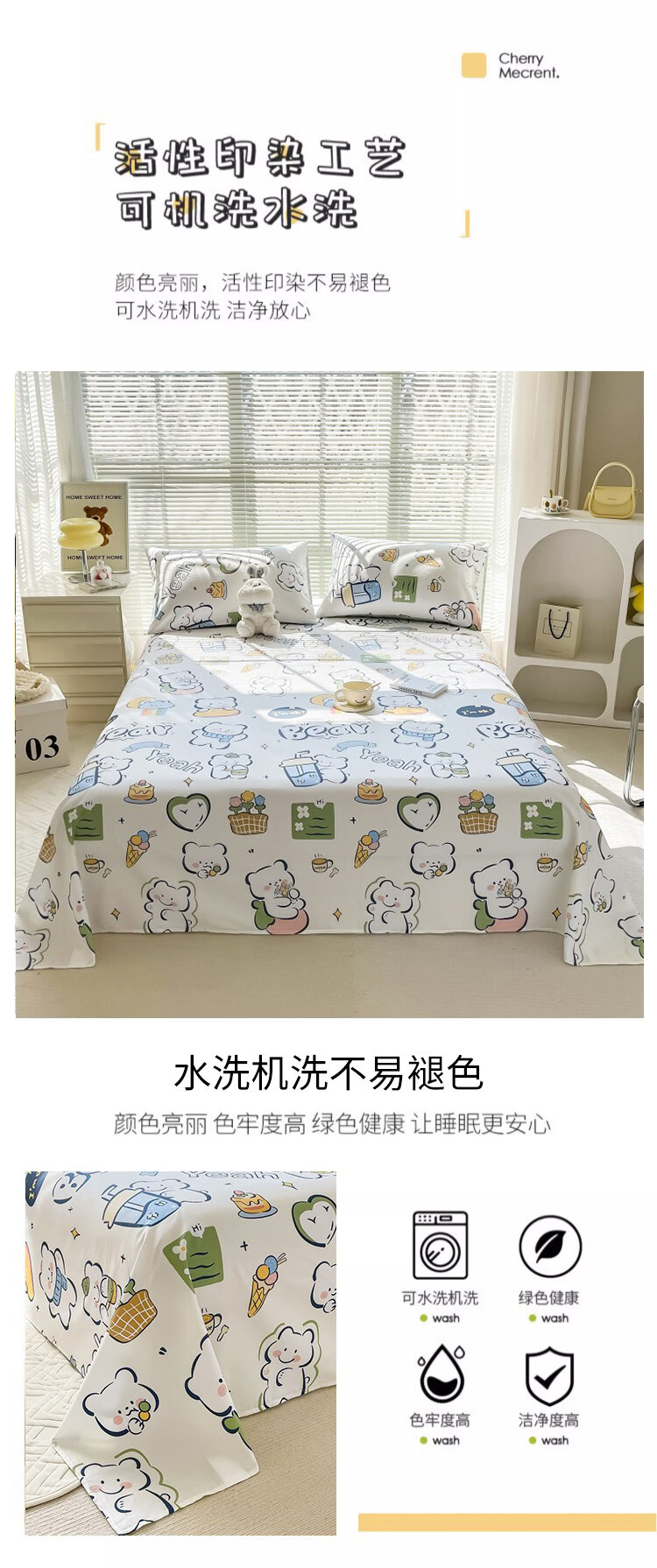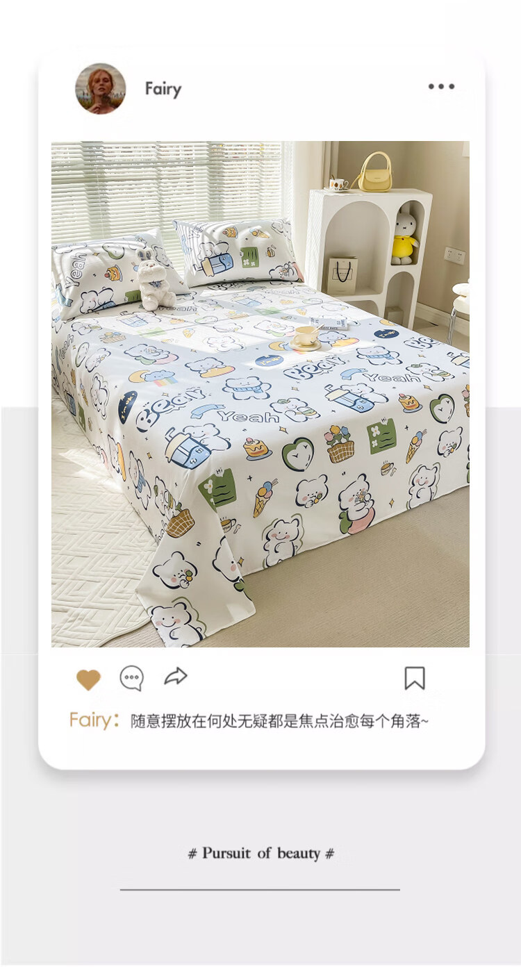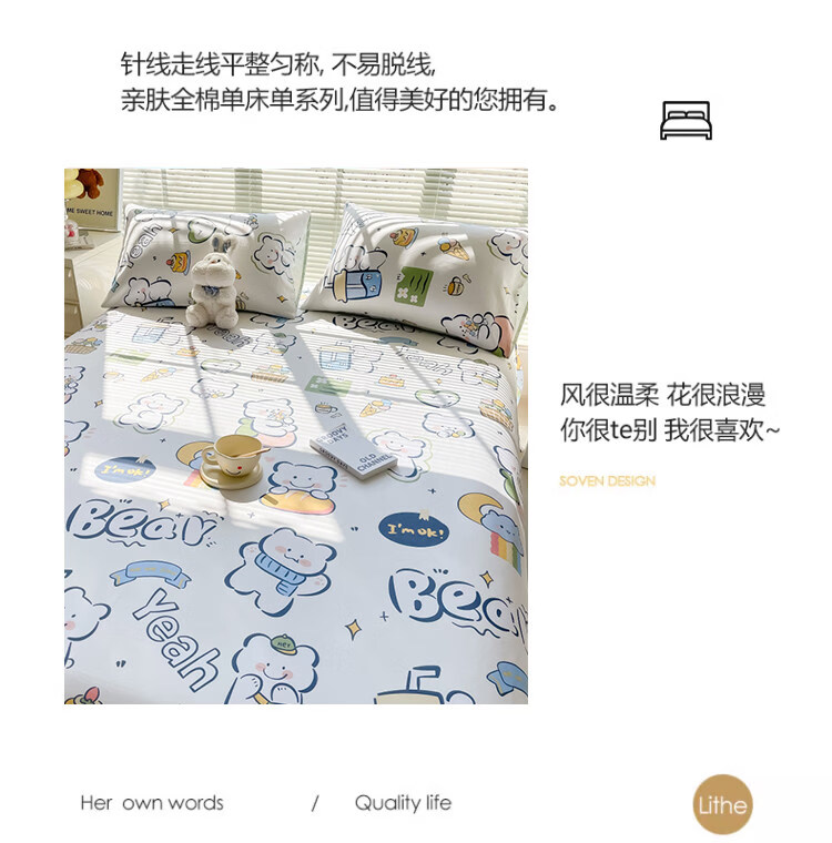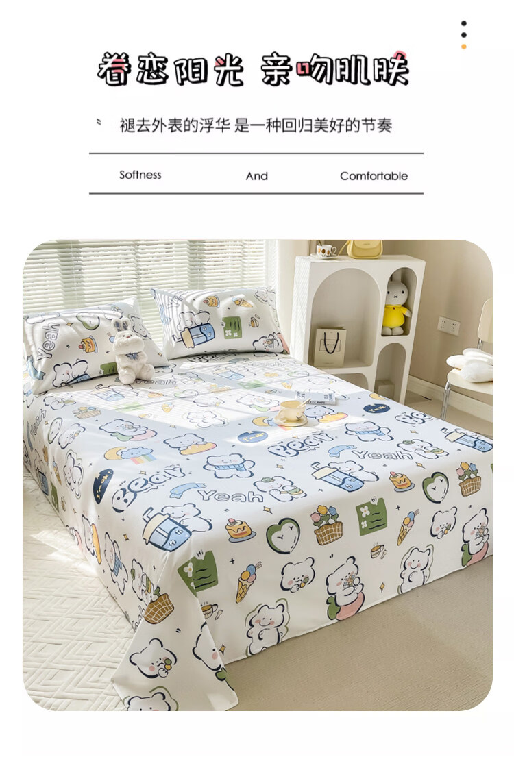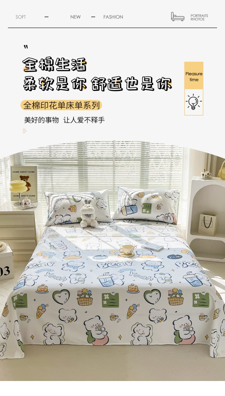 阿尔皮纳袋鼠纯棉床单单件100全棉秋冬季加厚床被单双人学生宿舍三件套四季 萌萌熊【100%全棉适合裸睡】 单床单:120x230cm【适0.9m学生床】