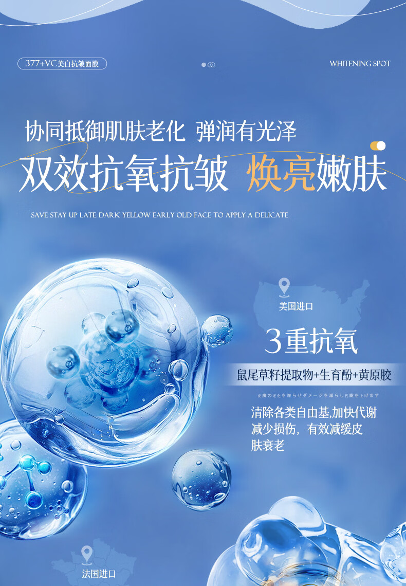 维特丝面膜美白淡斑补水保湿男女士熬夜舒缓抗皱紧致去黄气暗沉提亮肤色