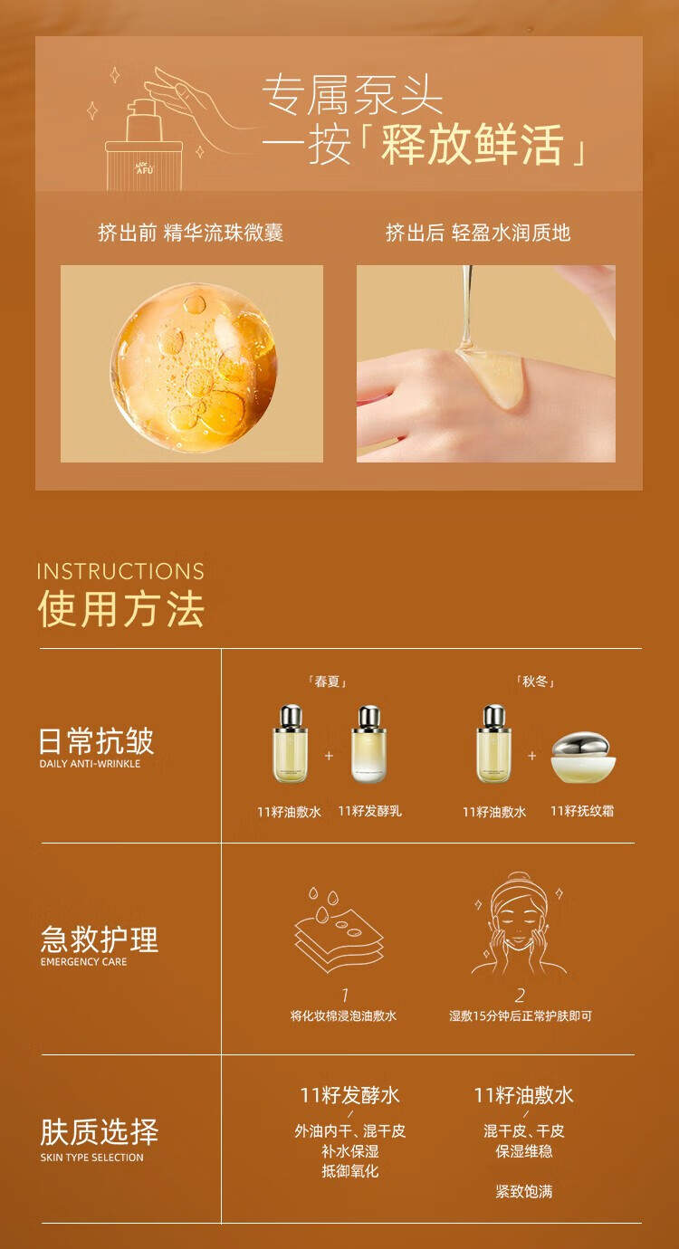 阿芙(AFU)十一11籽微凝珠油敷精华水300ml 保湿抗氧紧致