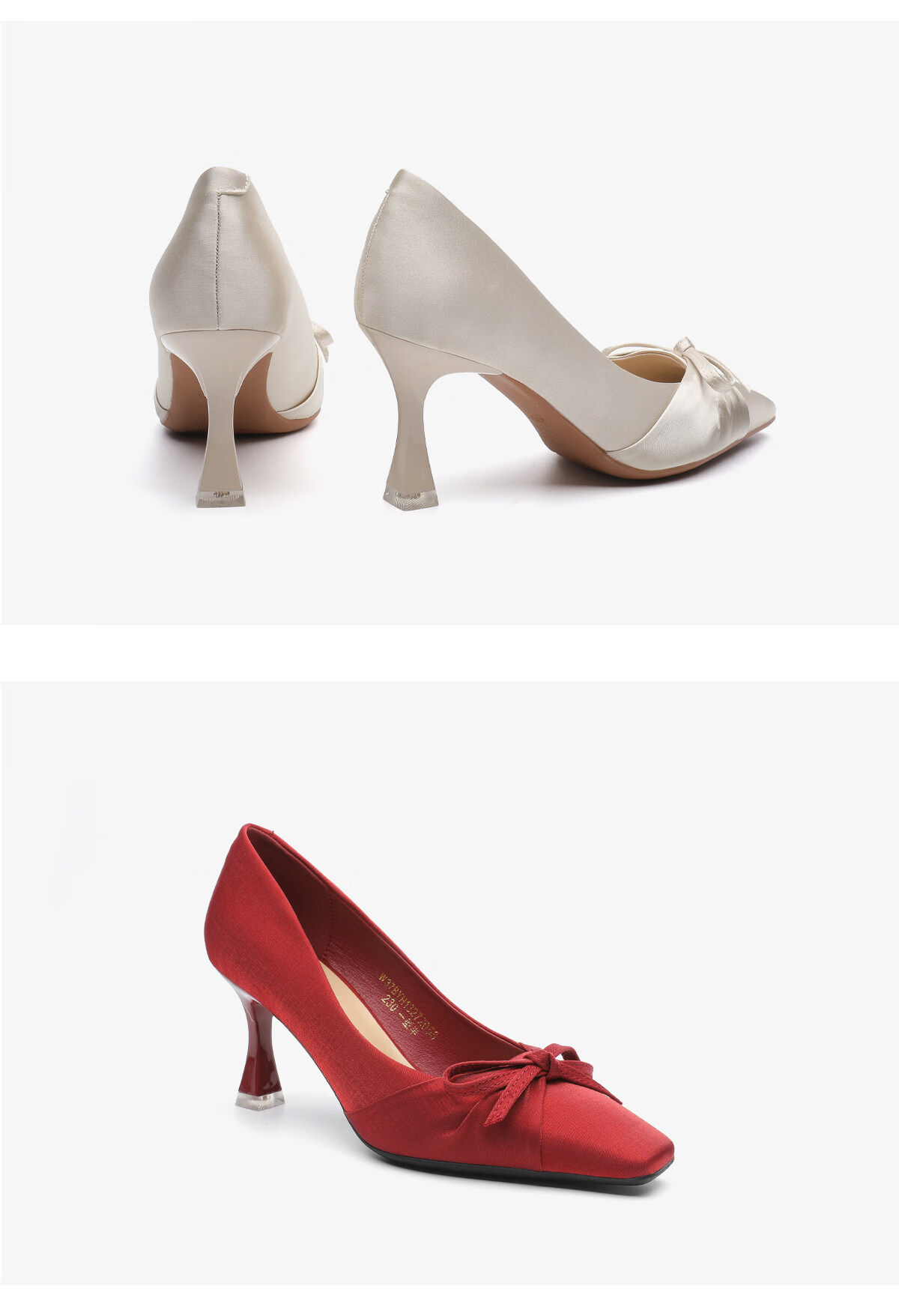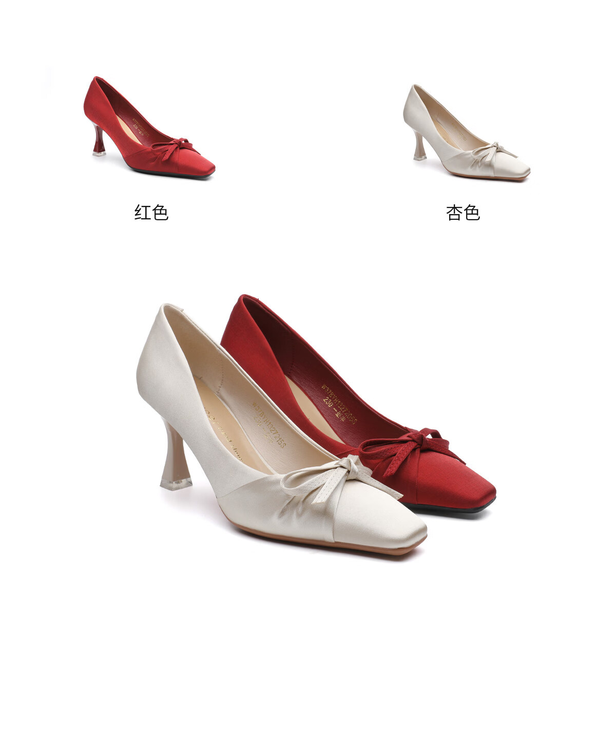 月芽儿甜美风蝴蝶结方头浅口单鞋女气质百搭高跟鞋 红色05S 34