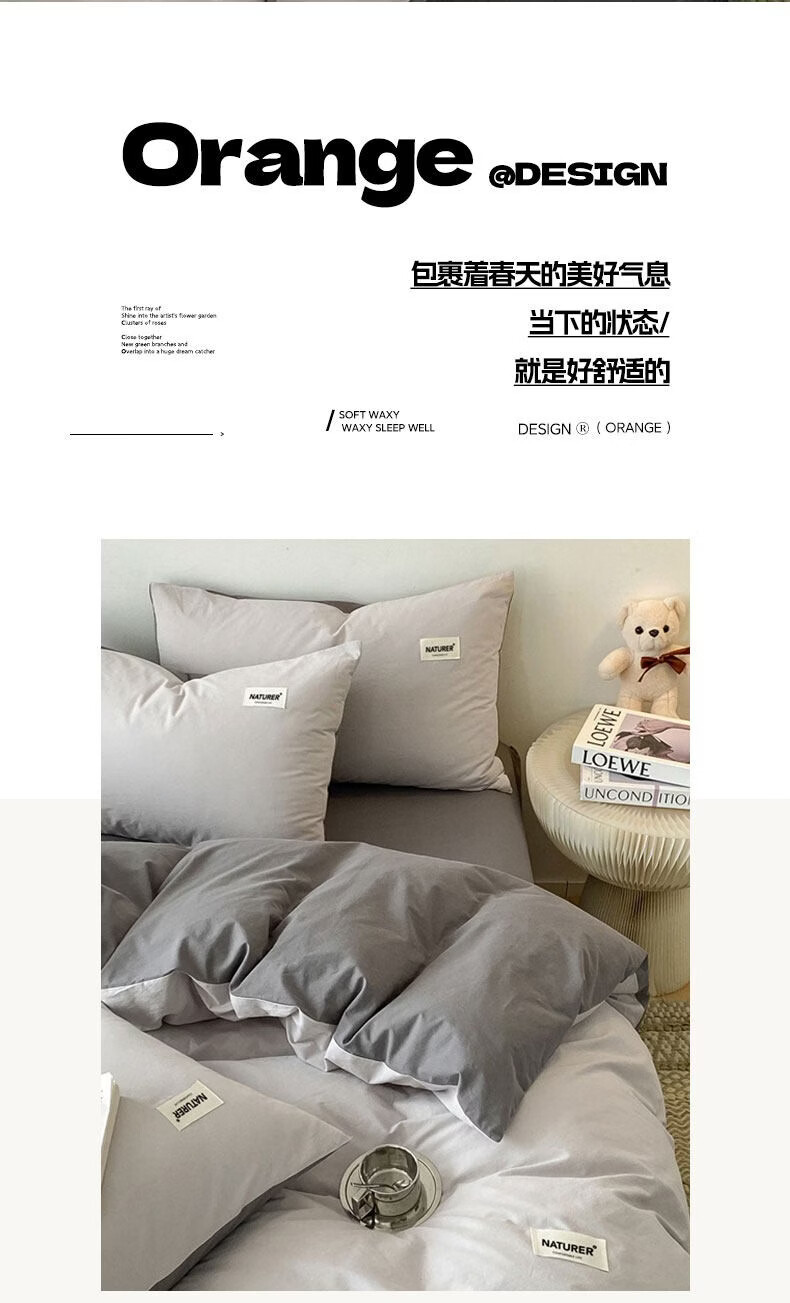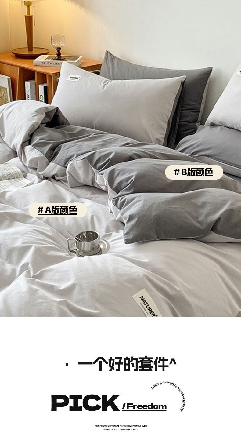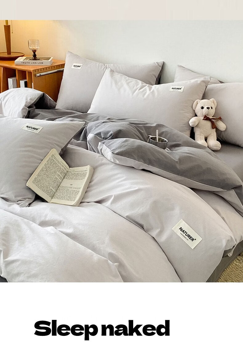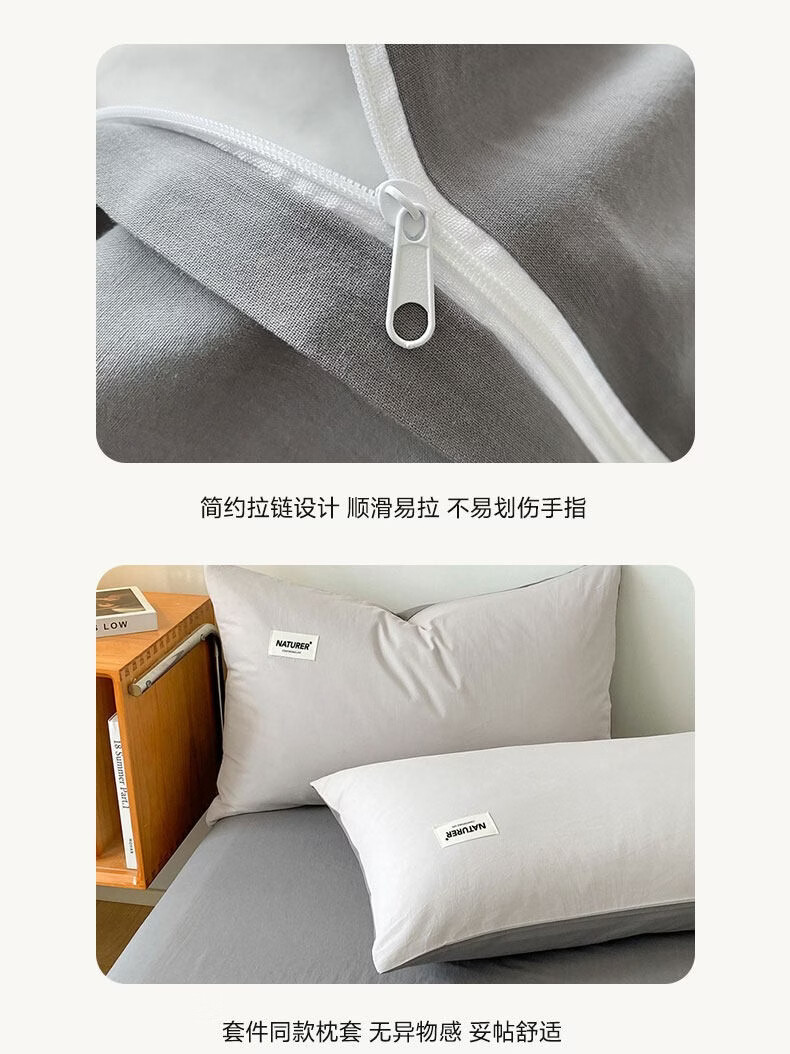红蜻蜓(RED DRAGONFLY)100%纯棉床上四件套全棉被套200x230cm家用床单被罩床上三件套 贴标-山灰+中灰【亲肤透气 母婴可用】 1.8m 床单款 四件套【被套200x230cm】