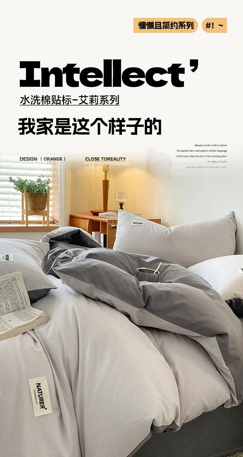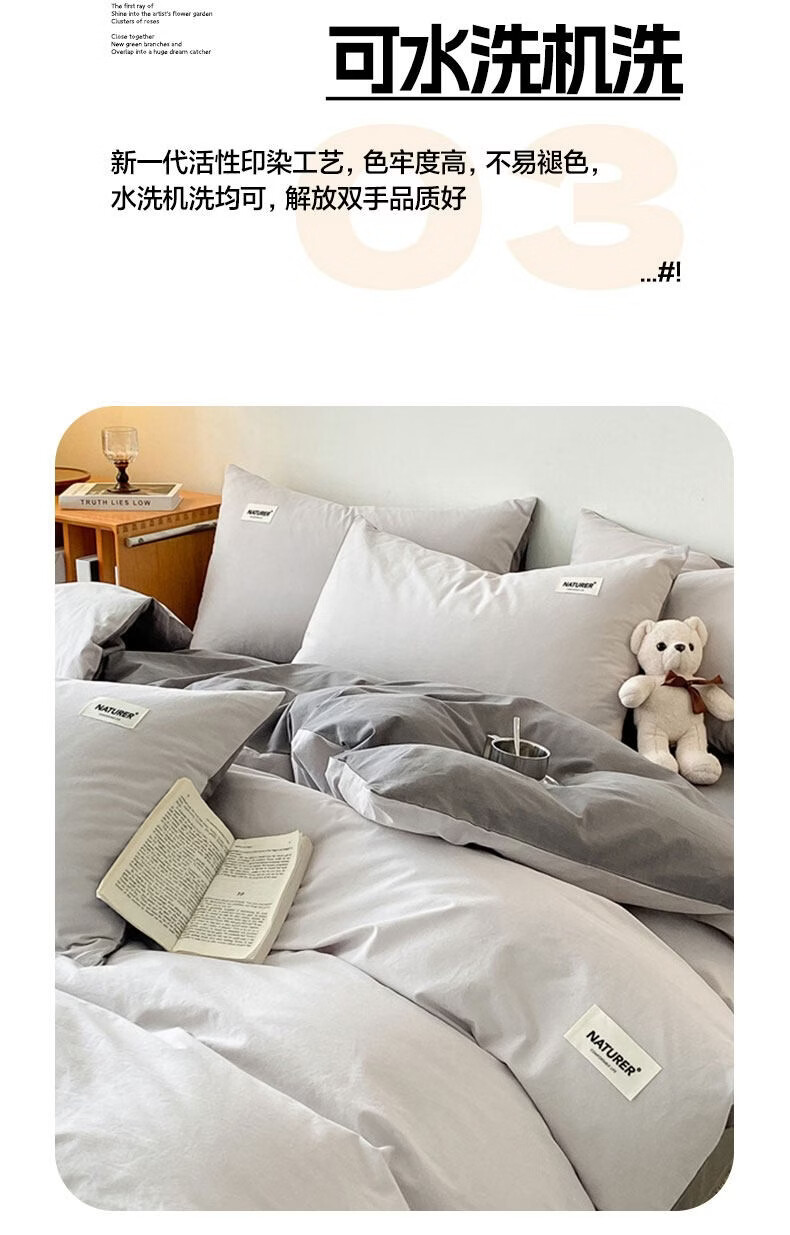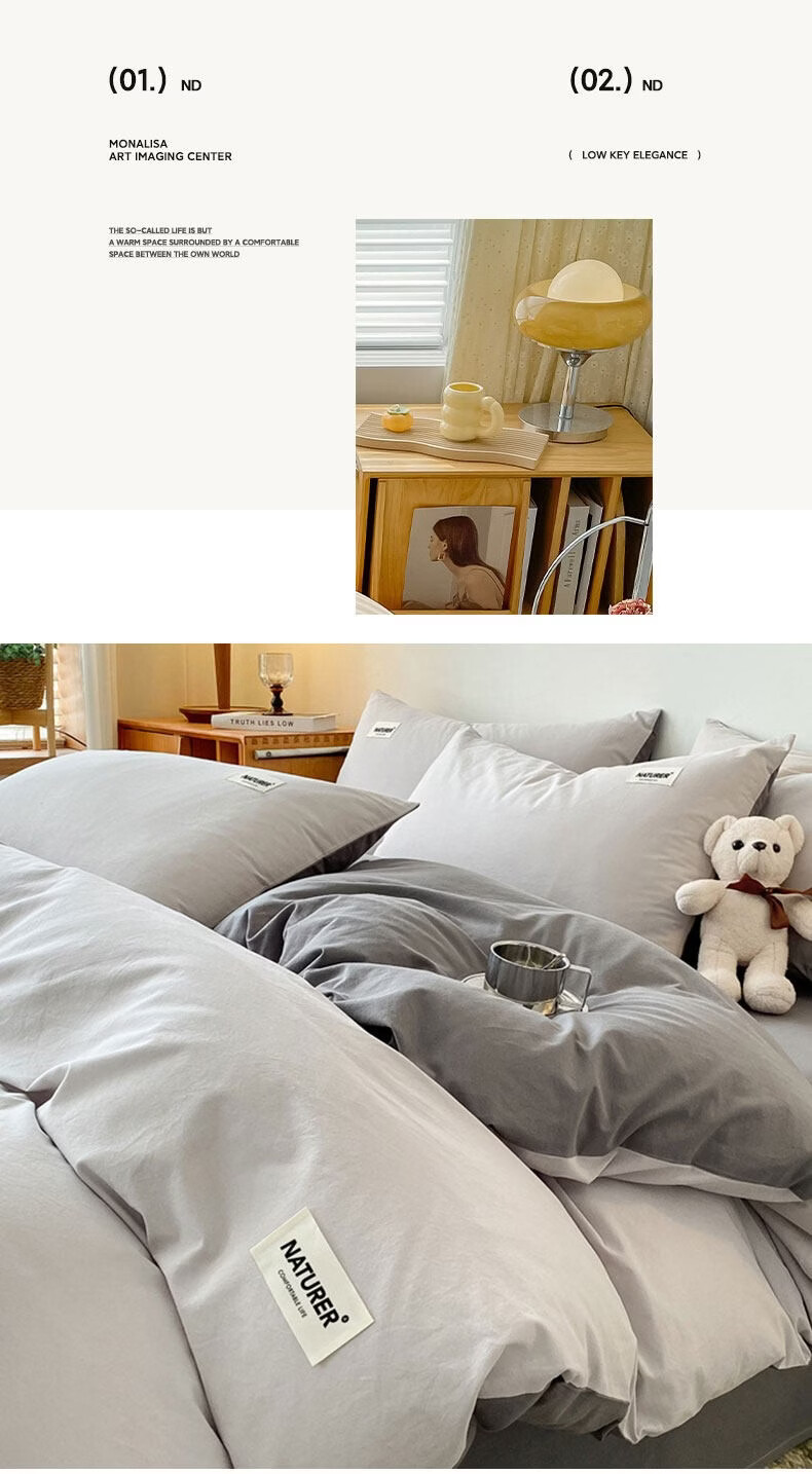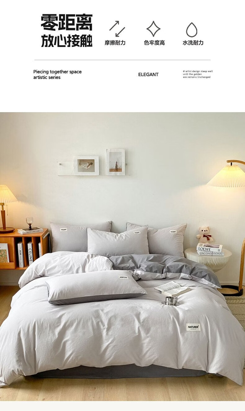 红蜻蜓(RED DRAGONFLY)100%纯棉床上四件套全棉被套200x230cm家用床单被罩床上三件套 贴标-山灰+中灰【亲肤透气 母婴可用】 1.8m 床单款 四件套【被套200x230cm】