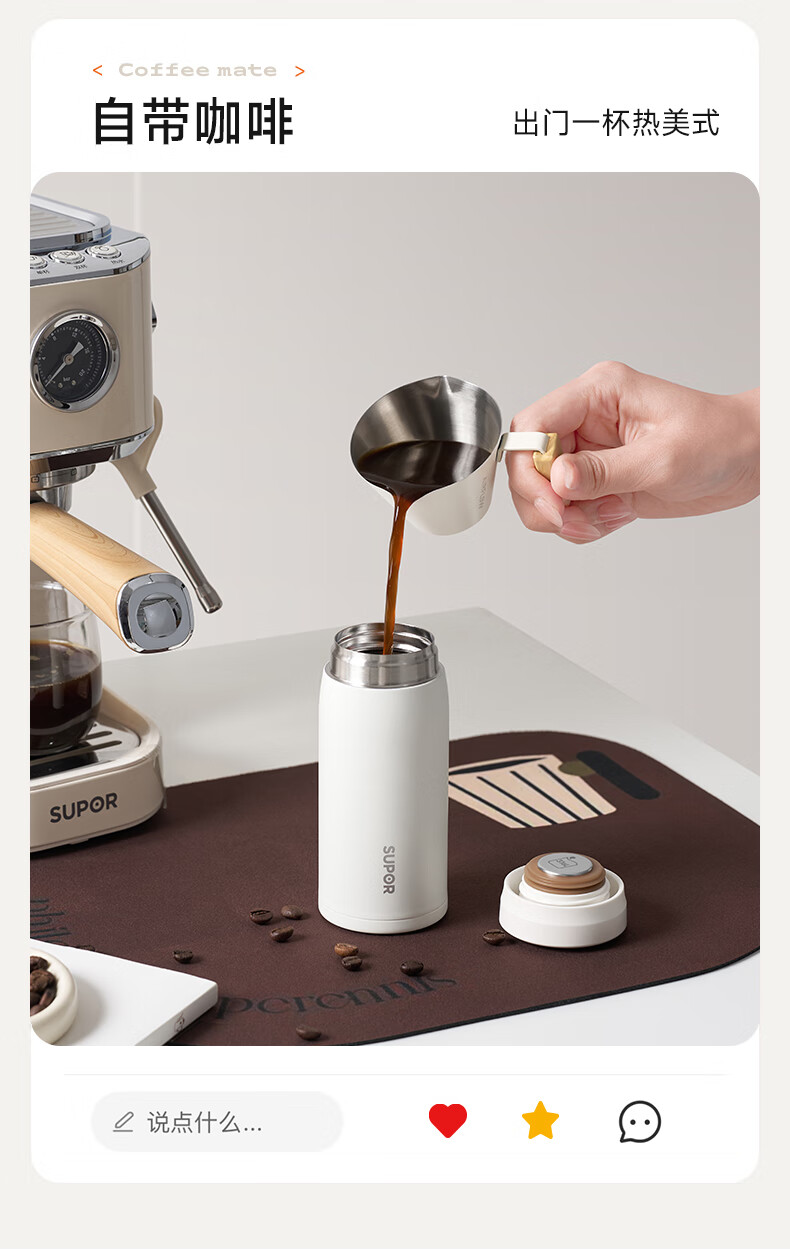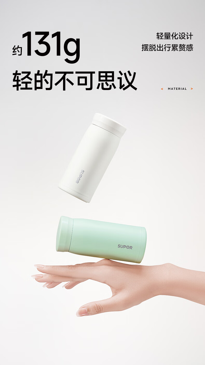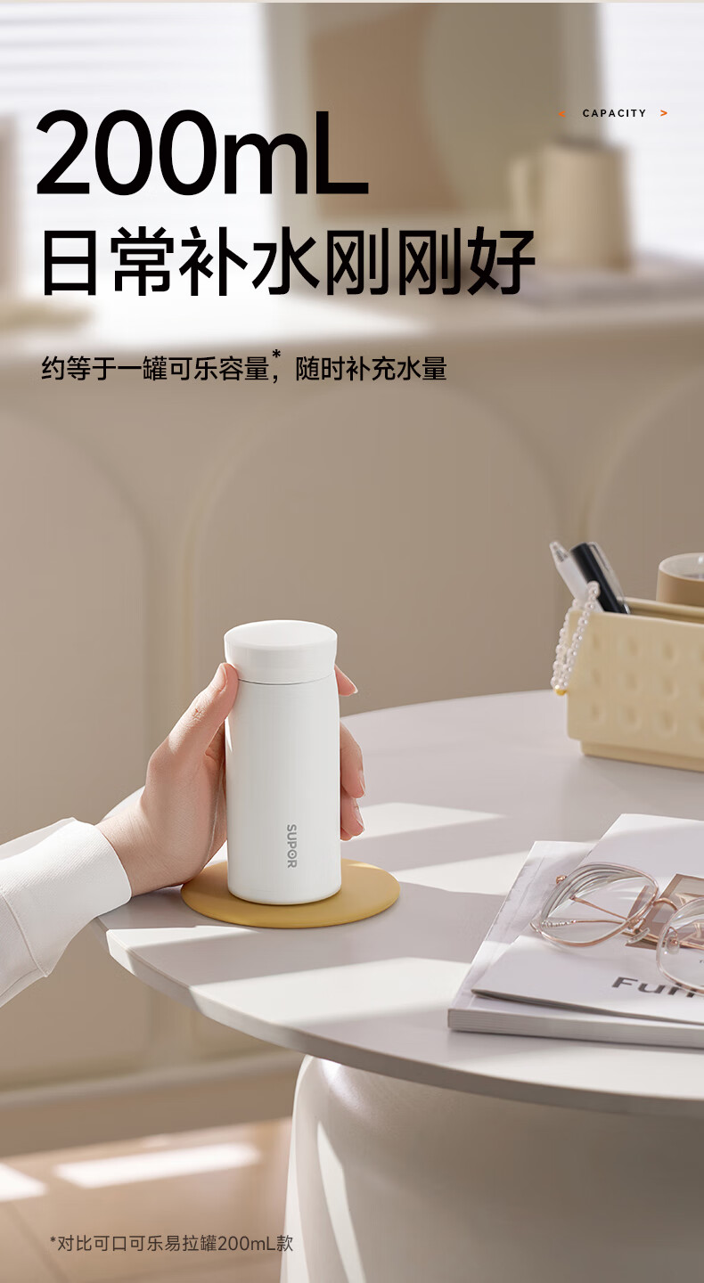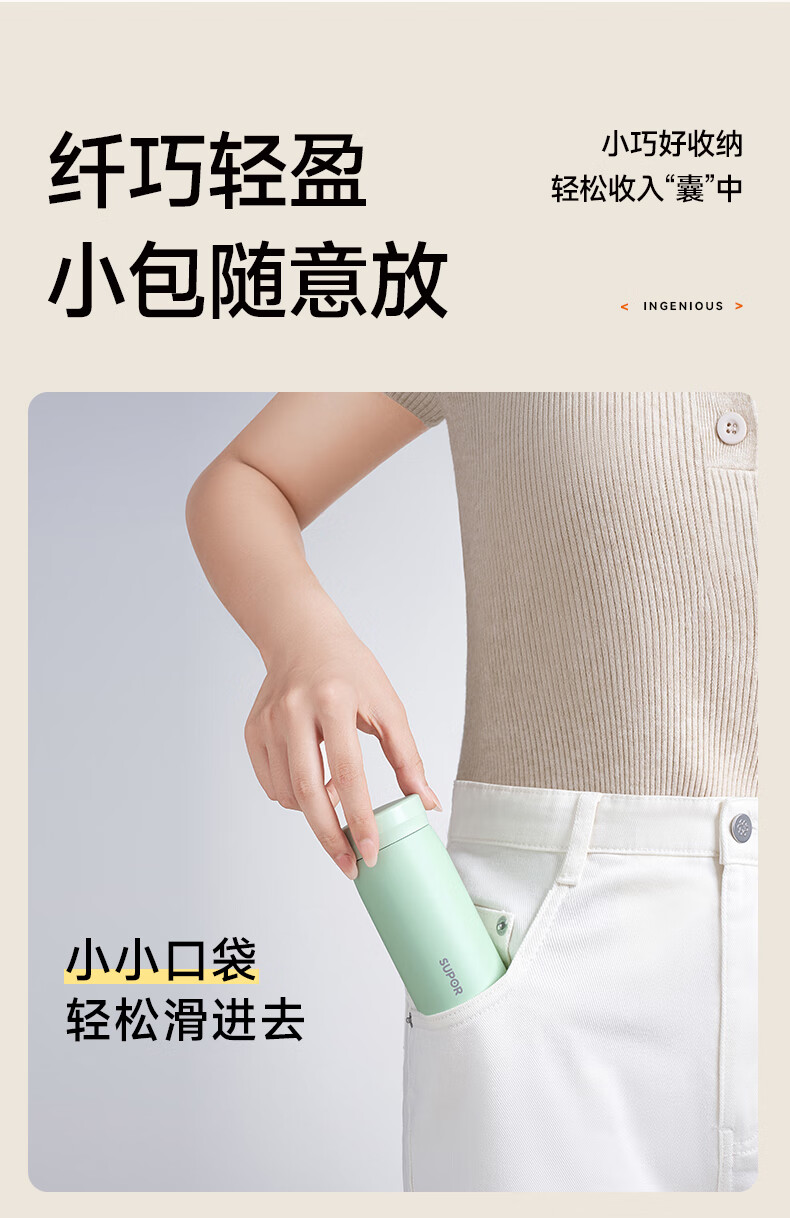 苏泊尔(SUPOR)保温杯316L不锈钢口袋杯中小学生男女士随身便携车载水杯生日礼物