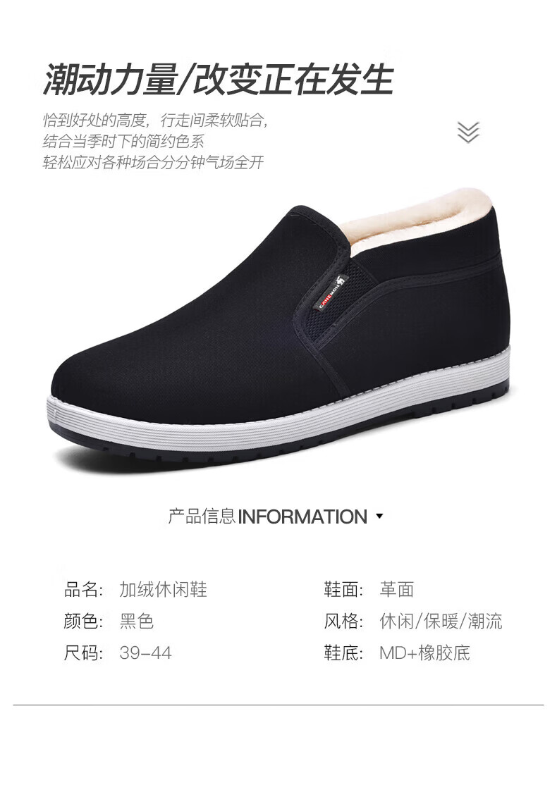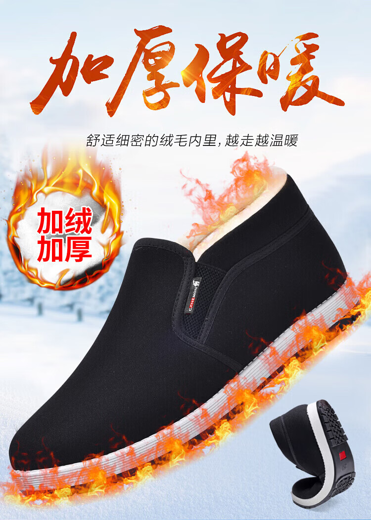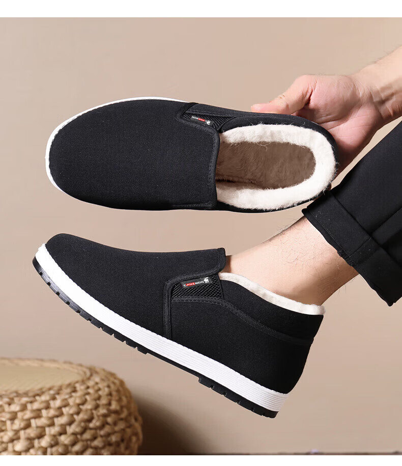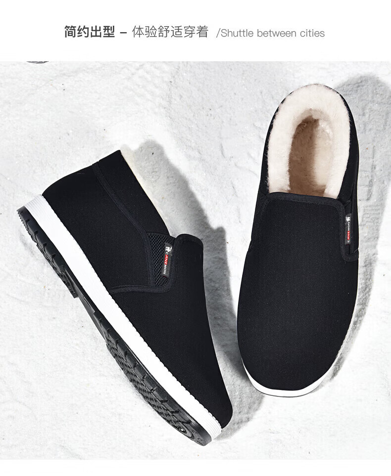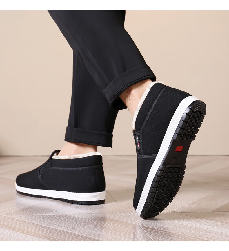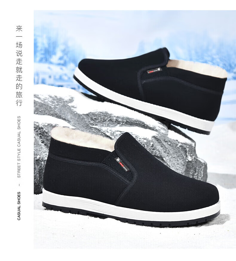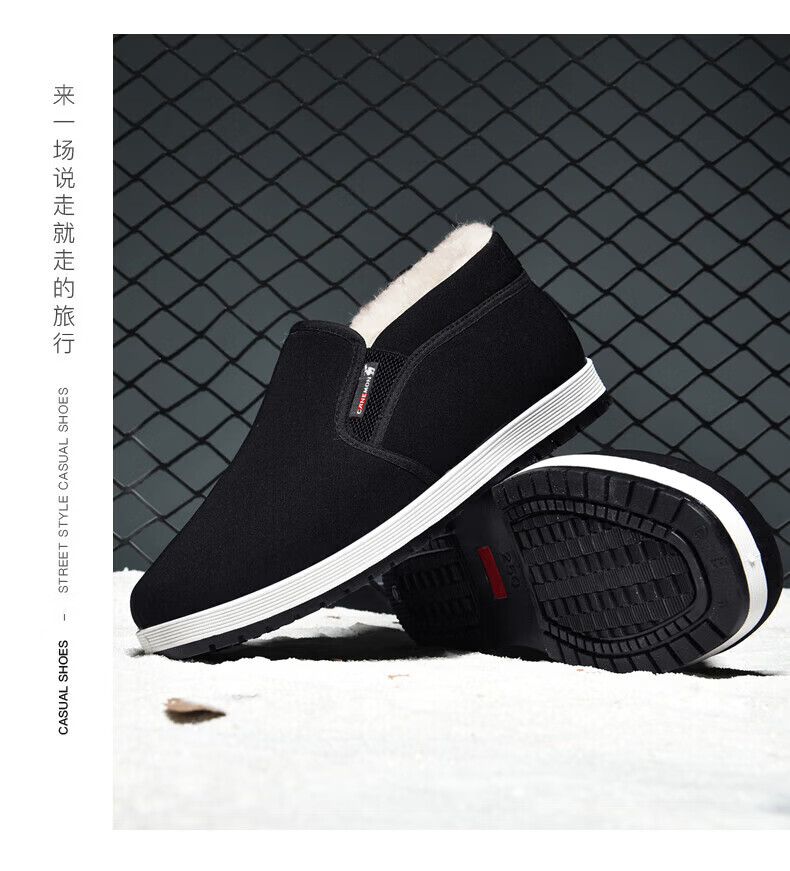 保罗骆驼棉鞋男 2026冬季新款加厚加绒羊毛保暖鞋 一脚蹬爸爸老北京 【黑色】LY2527 38 【标准运动鞋码】
